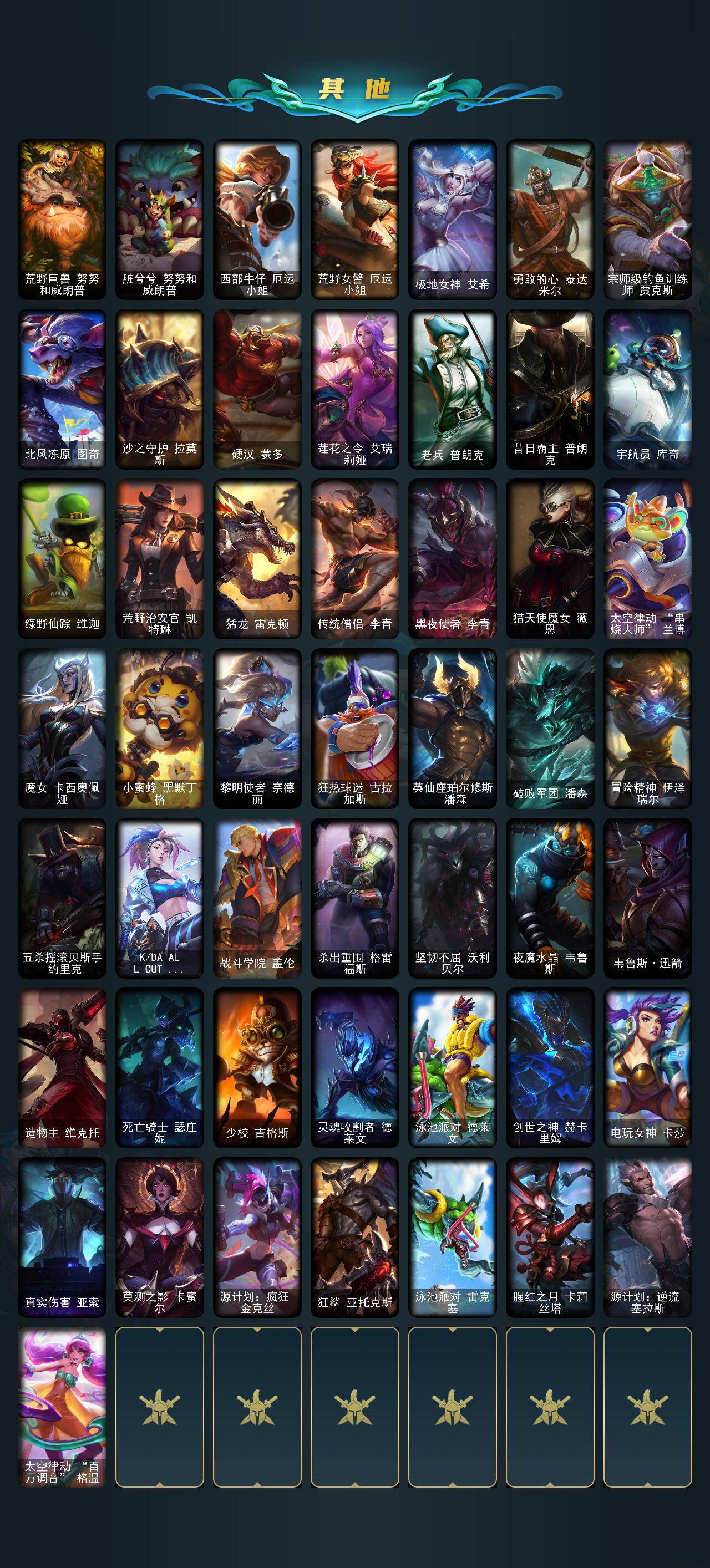 【LOLYH1308】172英雄/113皮肤/1神话/17限定/1臻彩/82炫彩/8传说/27史诗/黄金/十周年纪念安妮/闭月之颜貂蝉炫金莲华/阿木木“主人不要我了”/胡桃夹子萨科/2022全球总决赛阿兹尔/SKTT1贾克斯/SKTT1阿利斯塔/iG菲奥娜/EDG格雷福斯/EDG佛耶戈/EDG厄斐琉斯/星之守护者伊泽瑞尔/胜利之树茂凯/胜利之王泰达米尔/胜利巨口克格莫/胜利女神娑娜/胜利剑圣易/胜利女神菲奥娜/防暴天使凯尔/约德尔国队长提莫/源计划联合艾希/银河魔装机神兰博/死亡骑士盖伦/黎明使