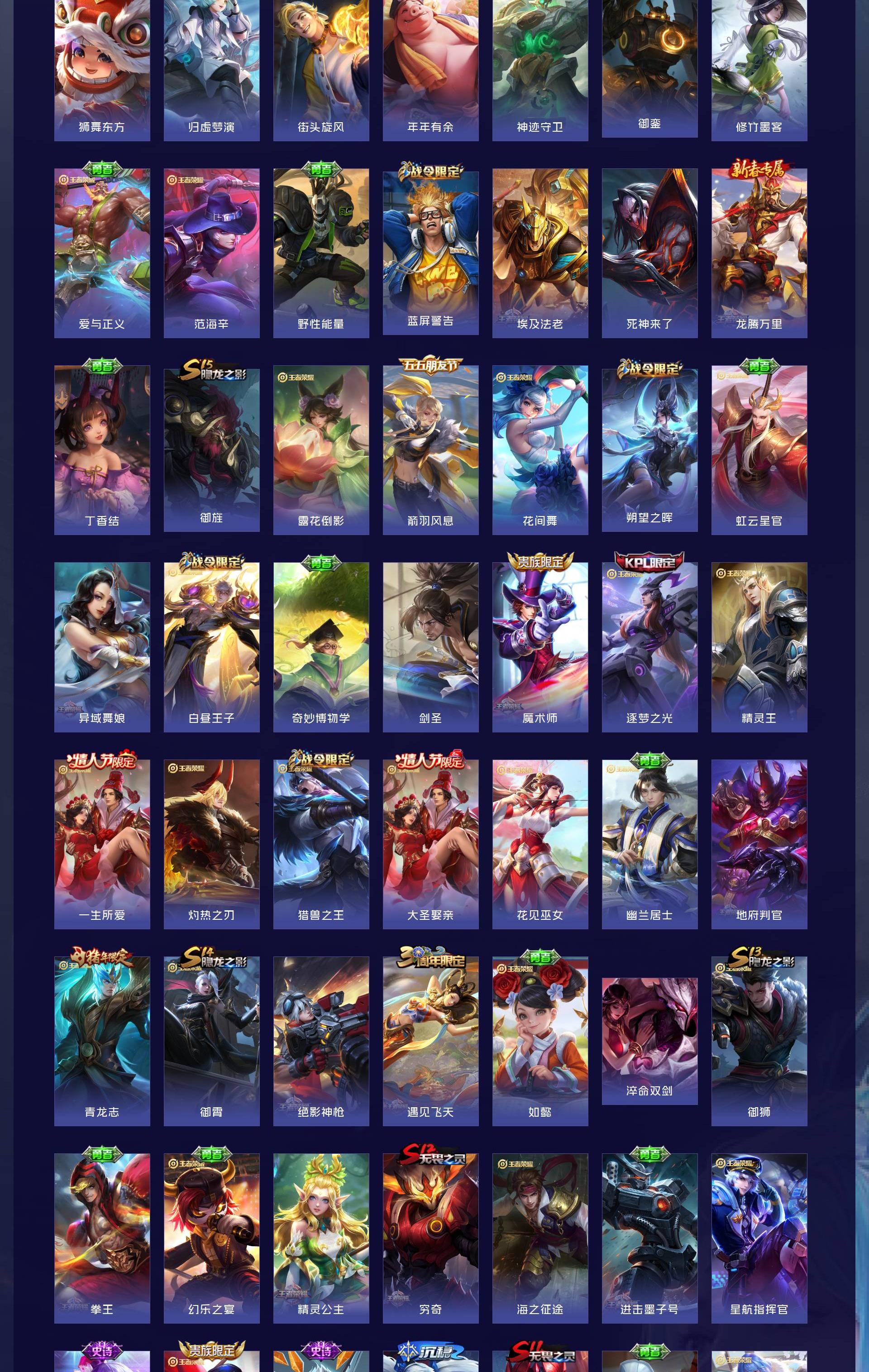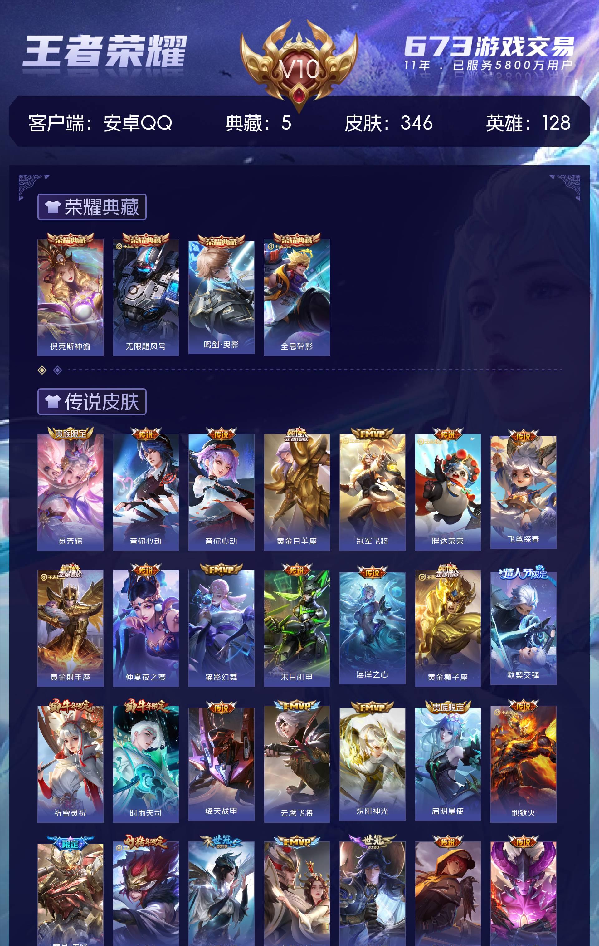 V10 皮肤346 英雄128 至尊星耀 荣耀典藏5 传说30 其他皮肤316