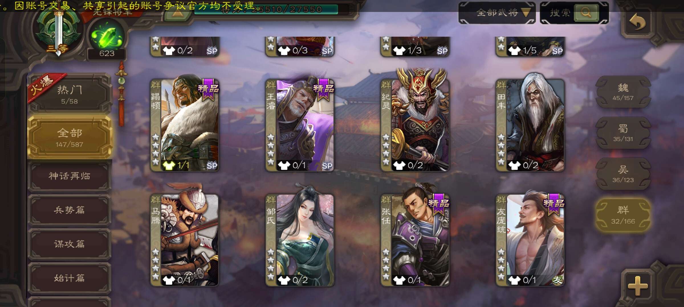 史诗武将数量: