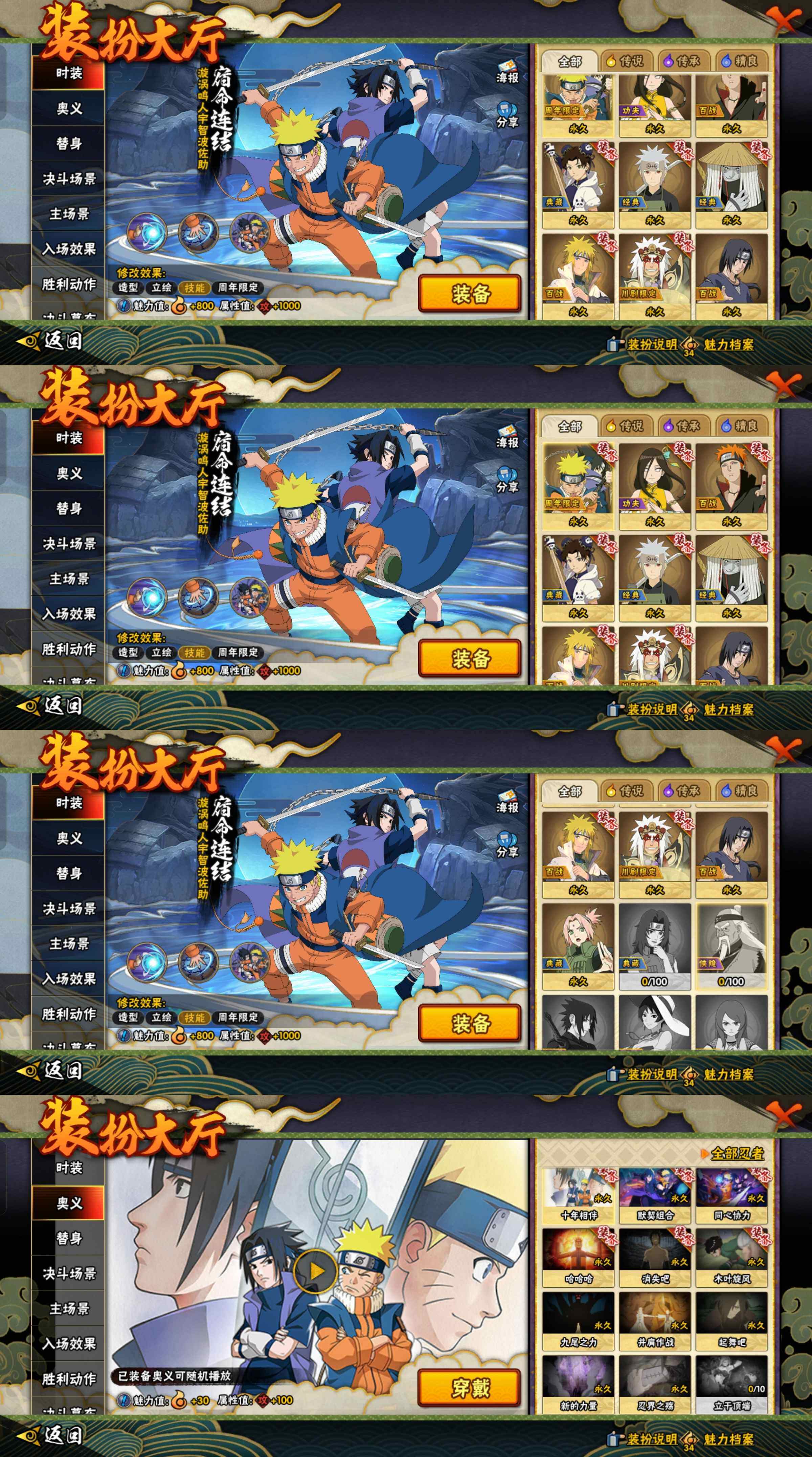 tc14,664万战,8s忍20a忍,忍战带土九喇嘛鸣人须佐能乎鼬秽土日斩十周年鸣佐天道佩恩舞杰自来也水门面麻宇智波泉奈秽土角都长十郎等