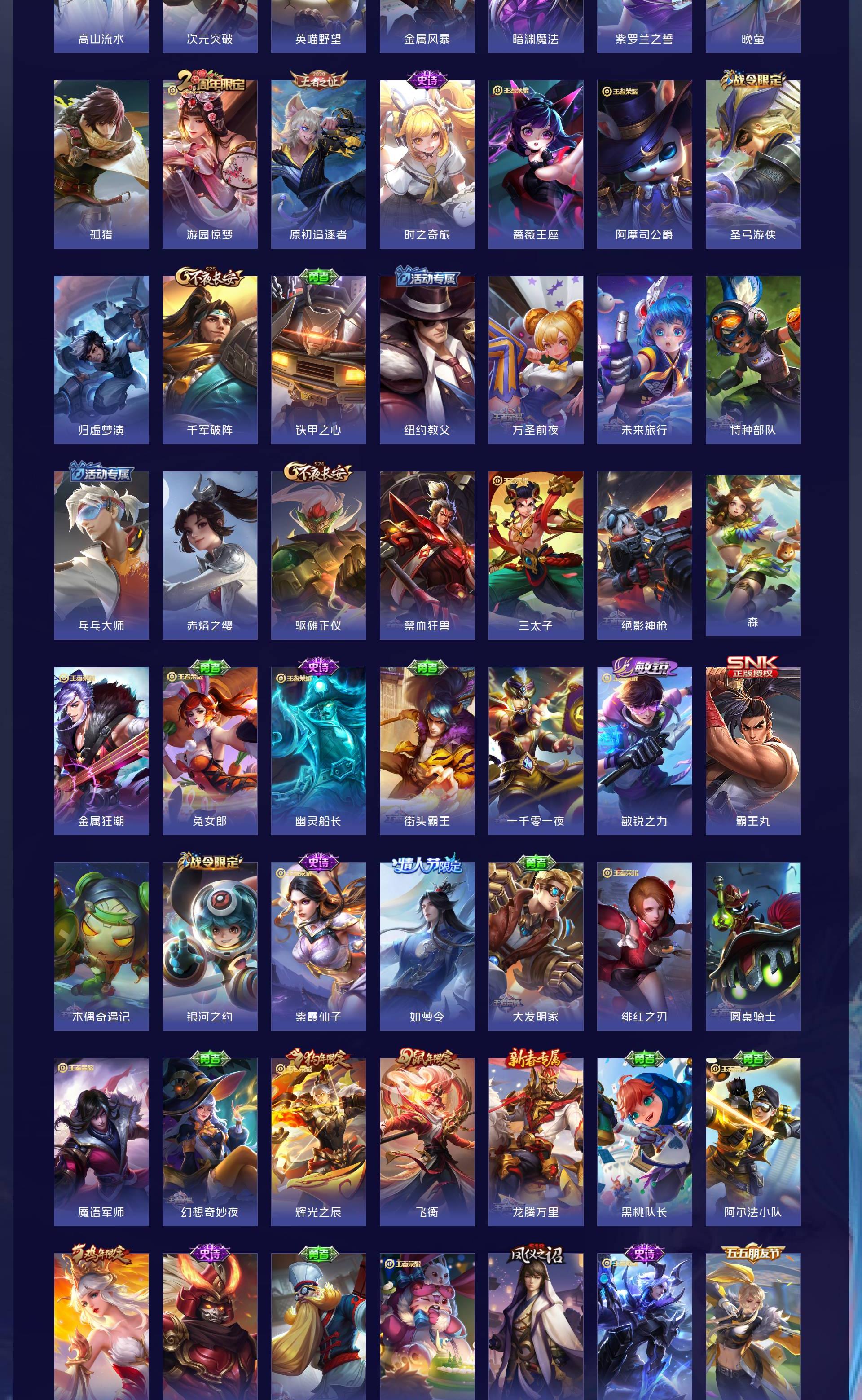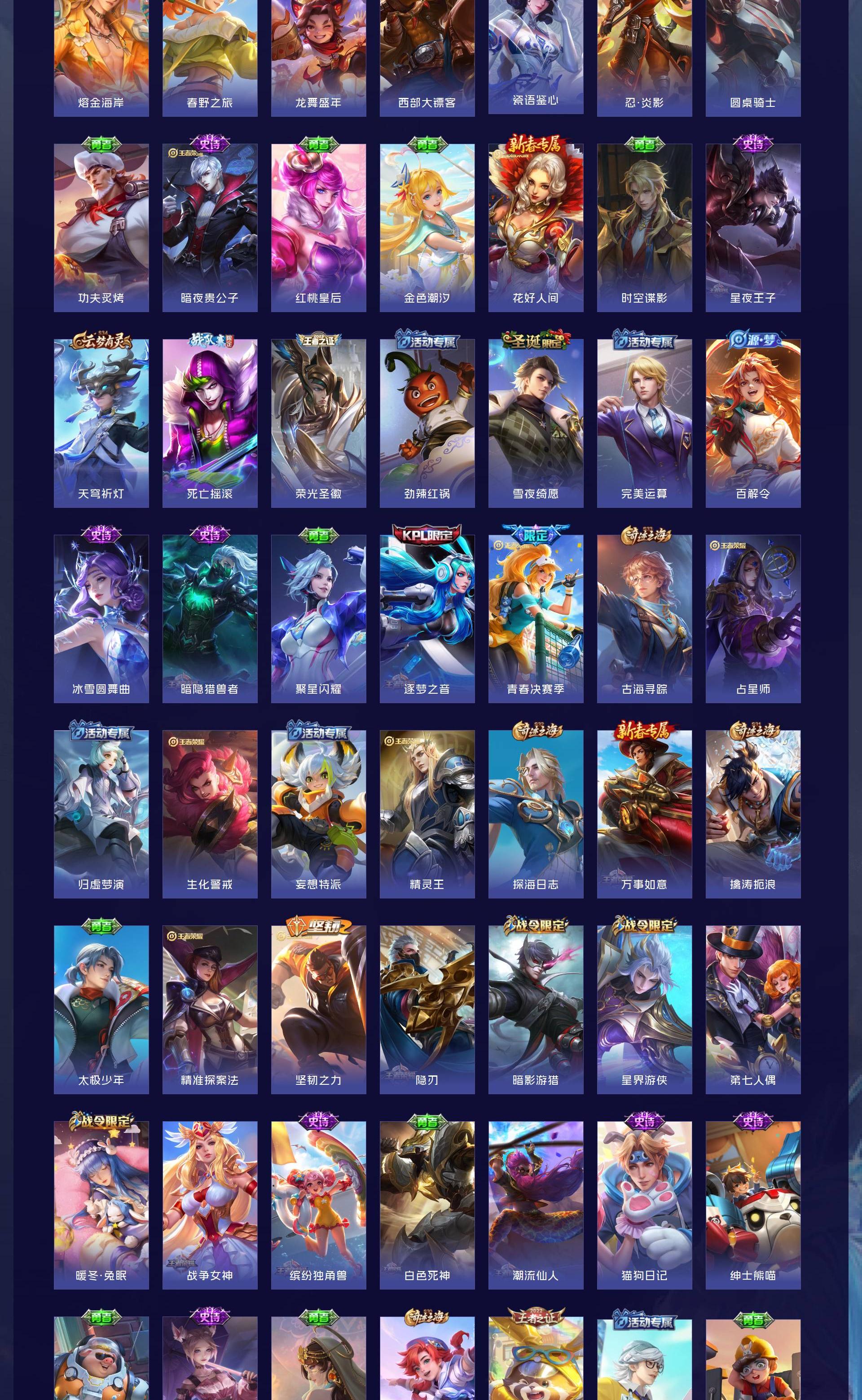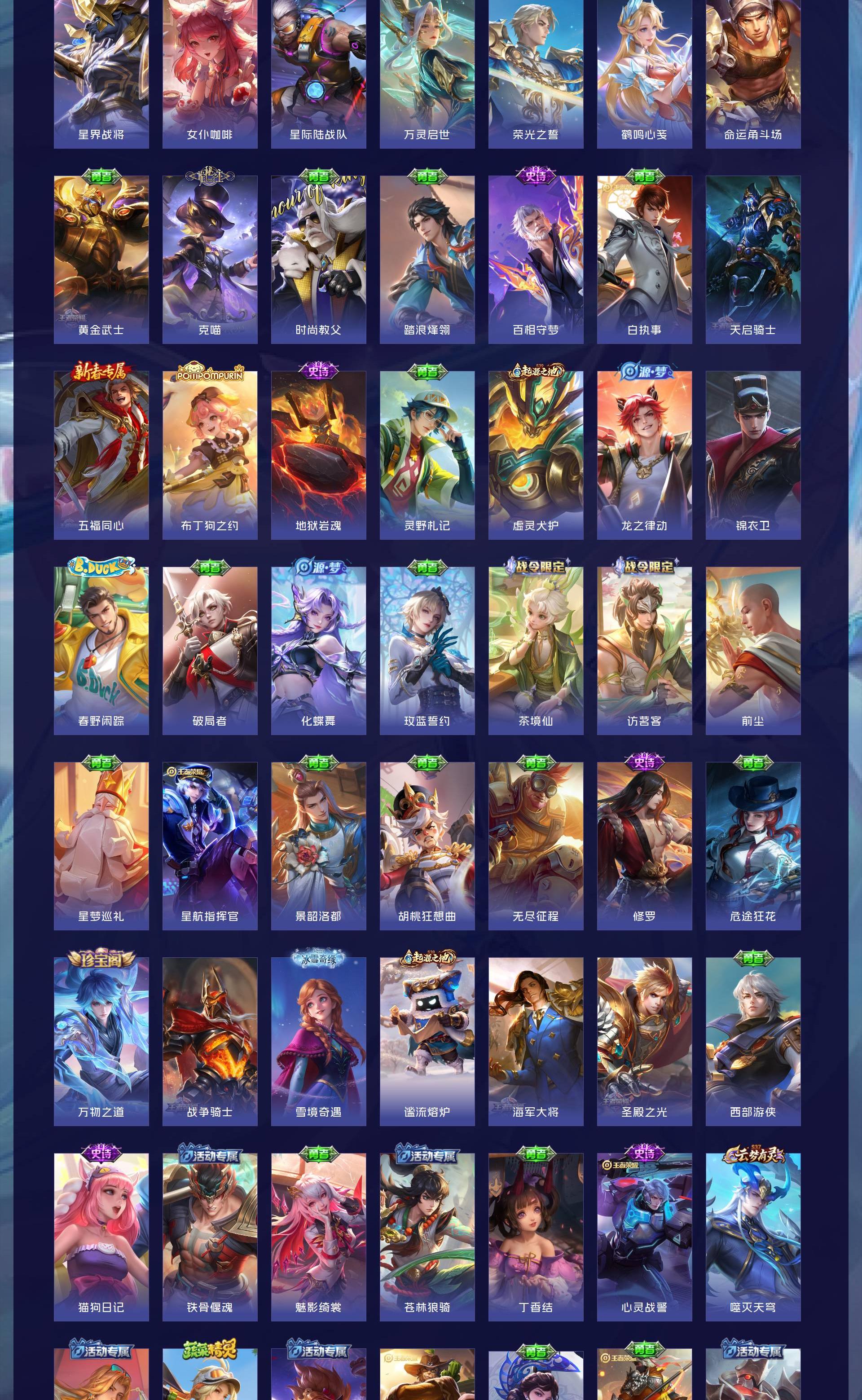 V8 皮肤300 英雄128 永恒钻石 荣耀典藏2 珍品传说1 传说9 其他皮肤294