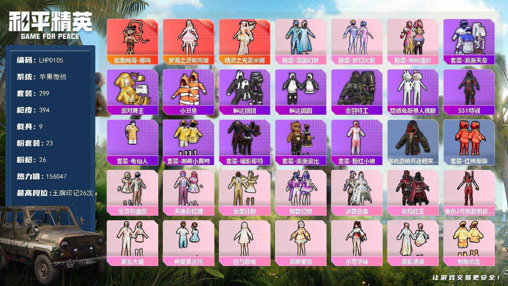 9级m4女娲 苹果 微信-3神装-23粉装-26特效枪-9载具-13粉色飞行器-156047热力值-26王牌印记-299套装-394枪皮【红色神装等级】:魔童闹海-哪吒(四级),精灵之光-露米娜(一级),梦海之灵-妮芮妲(一级)【红色角色神装】:魔童闹海-哪吒,精灵之光-露米娜,梦海之灵-妮芮妲【热门品类】:粉装-雪国幻梦,粉装-梦幻火箭,粉装-缤纷油彩,套装-浪漫天命,套装-派对舞王,套装-小