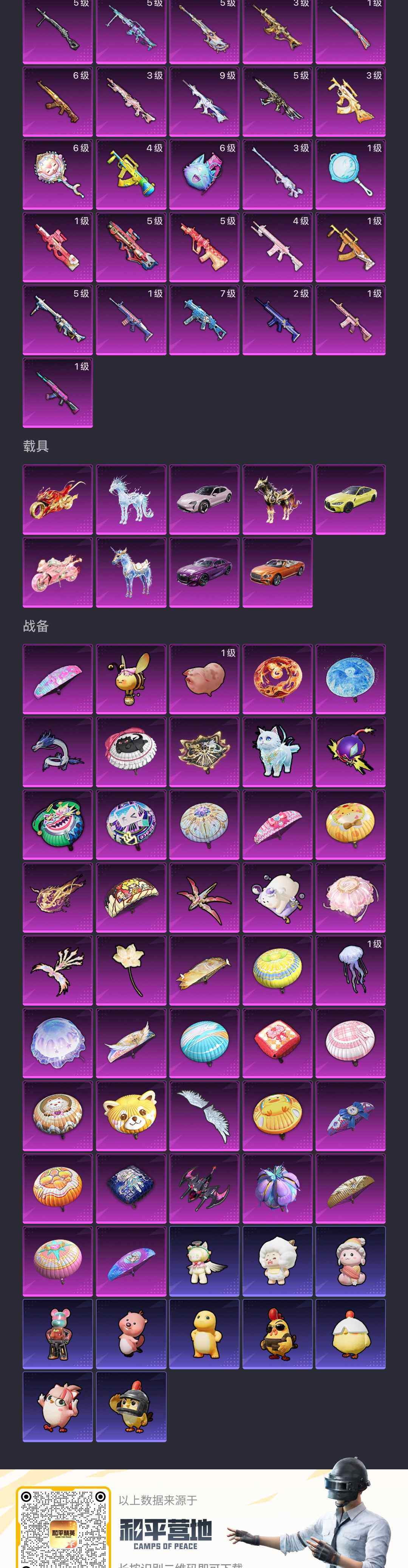 9级m4女娲 苹果 微信-3神装-23粉装-26特效枪-9载具-13粉色飞行器