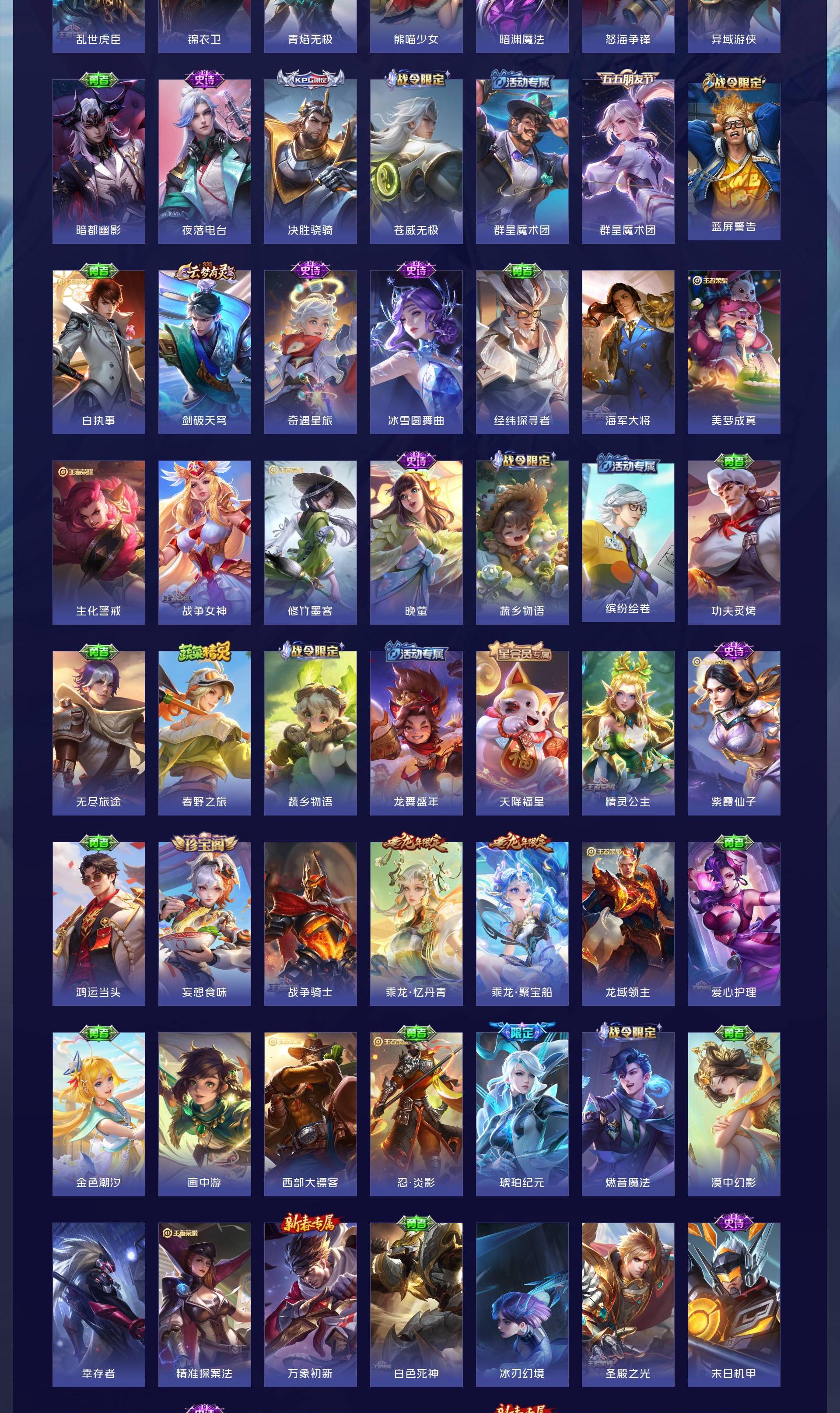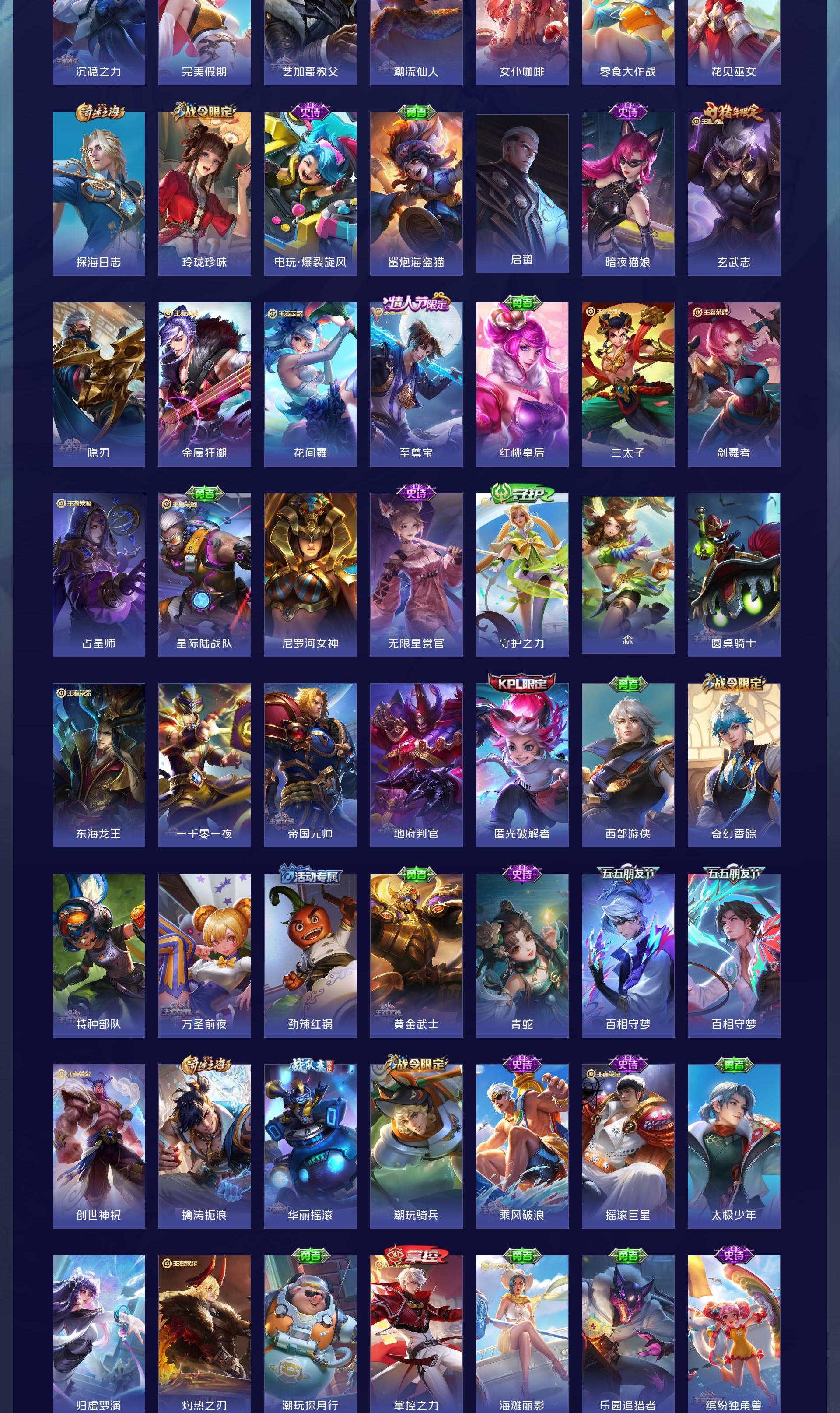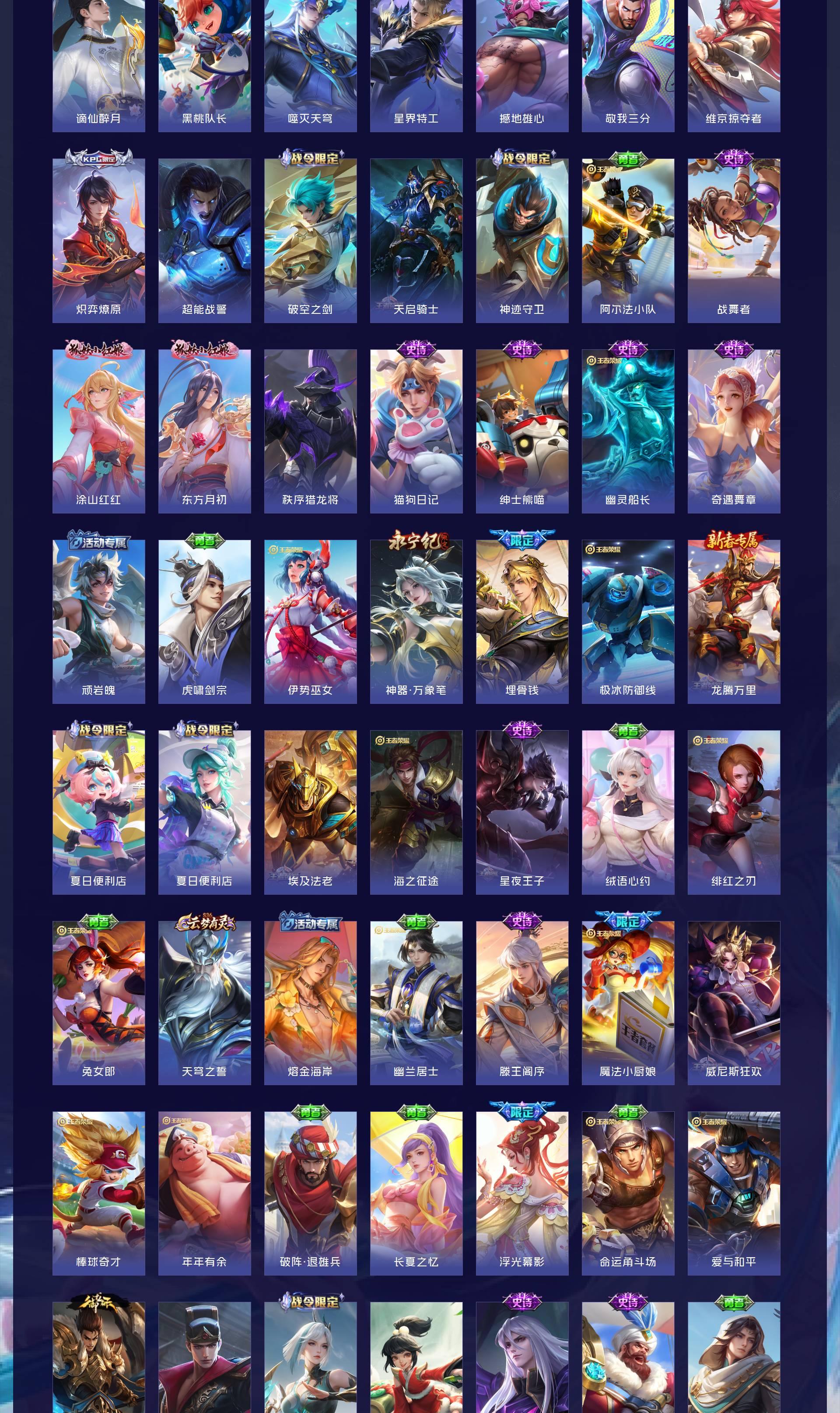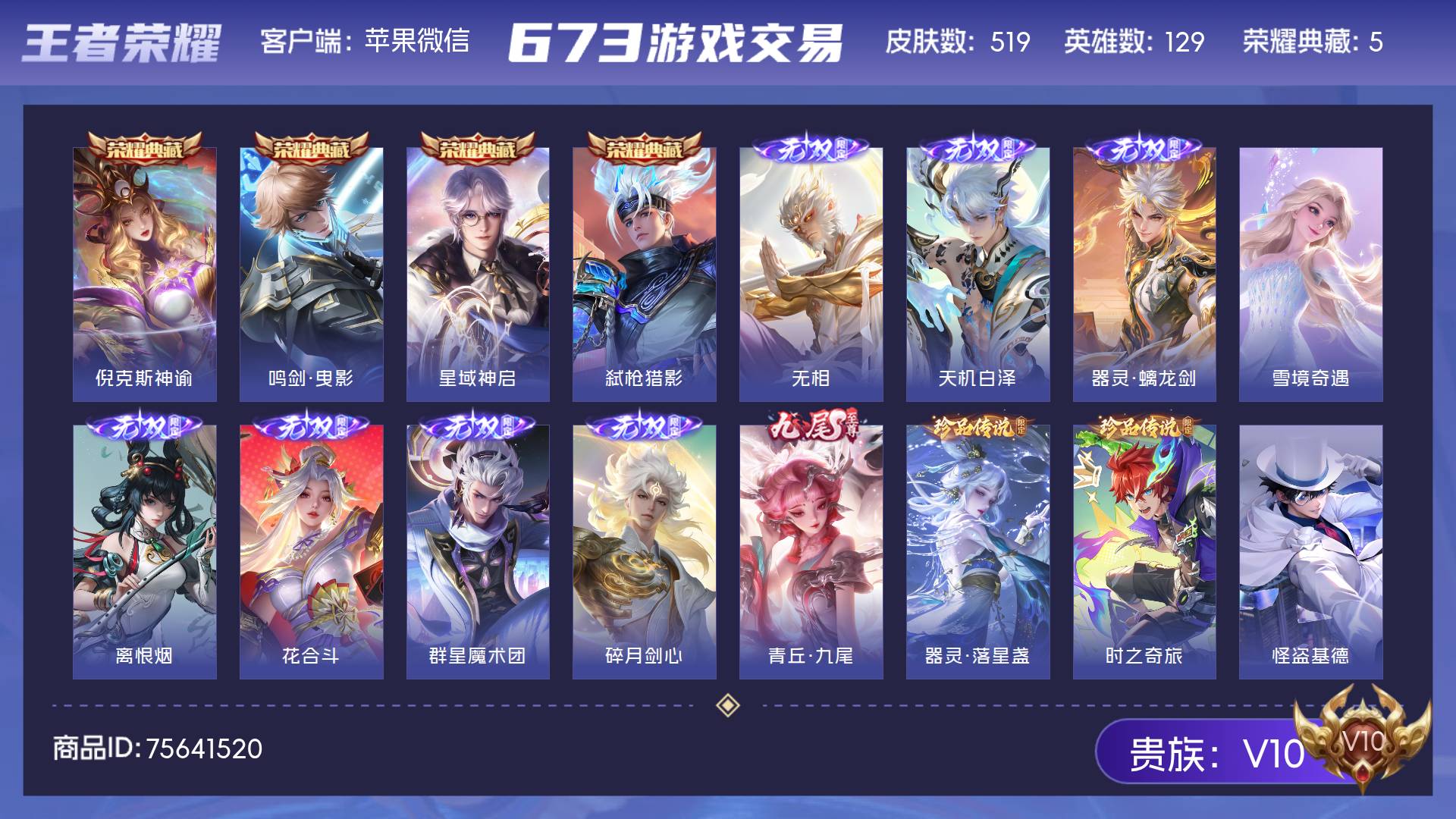 V10 皮肤519 英雄129 无双王者 荣耀典藏5 无双皮肤9 珍品传说5 传说58 其他皮肤443
