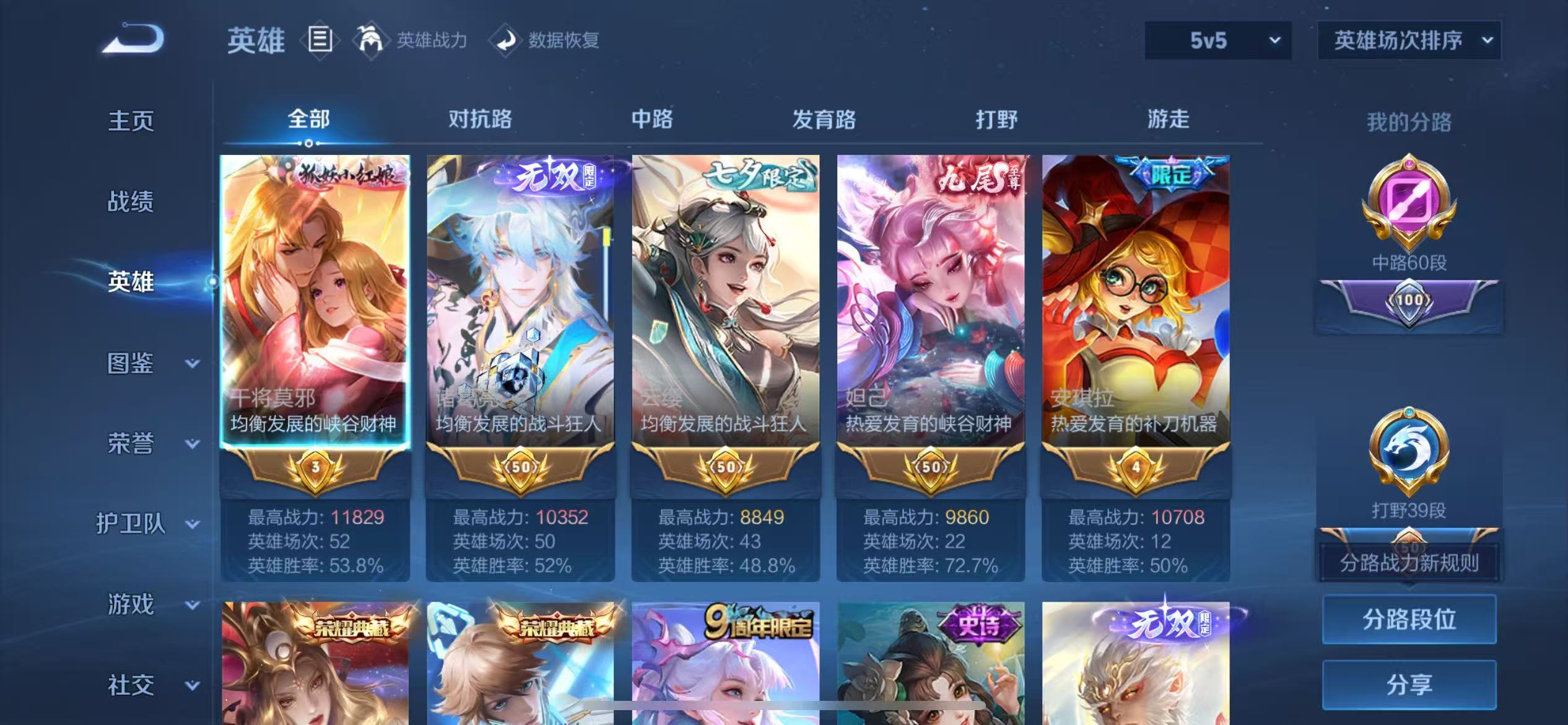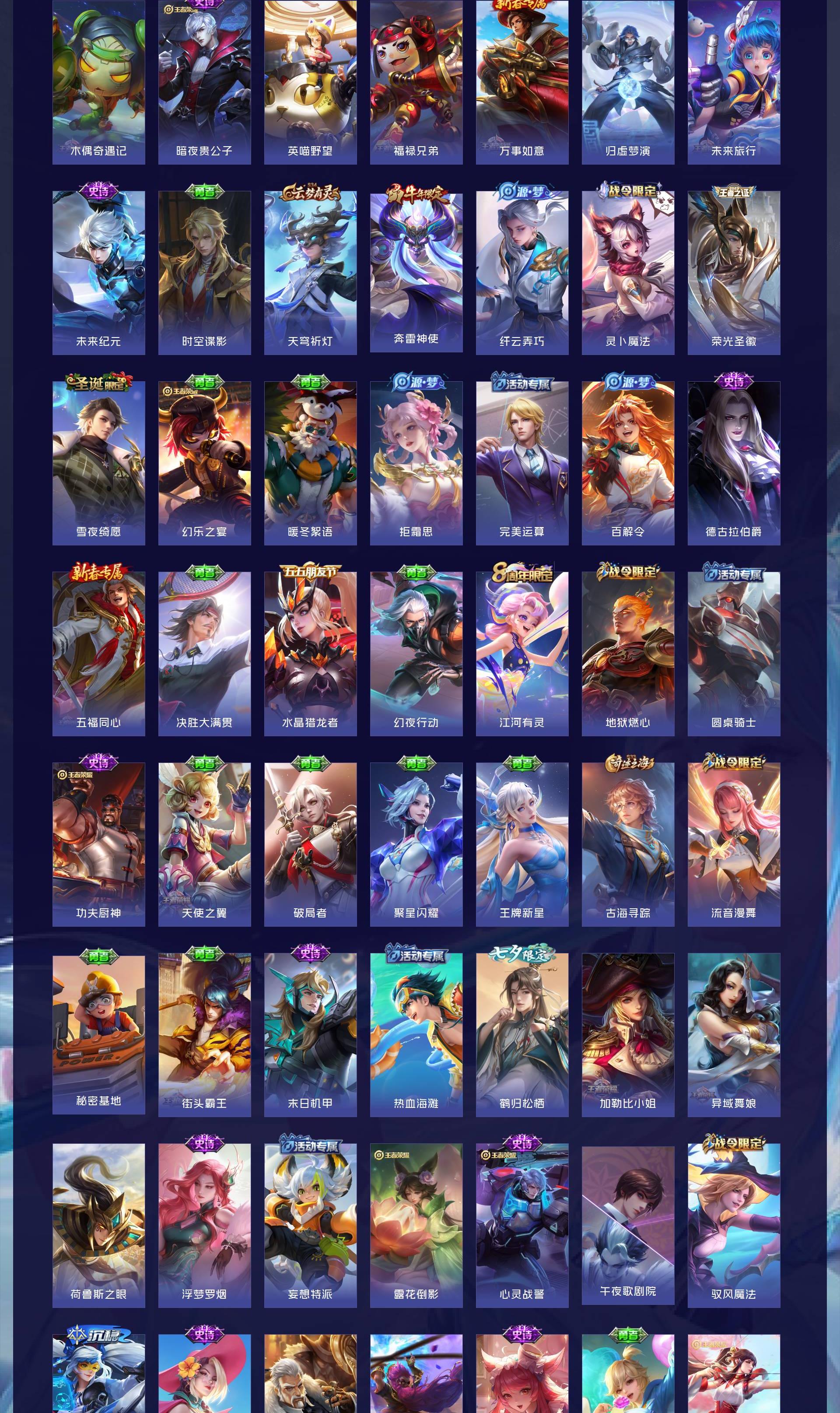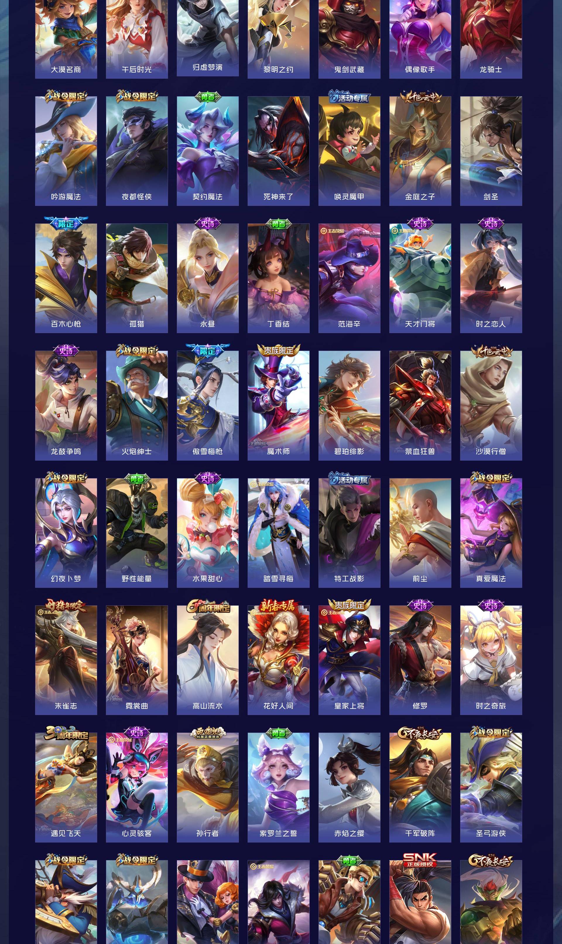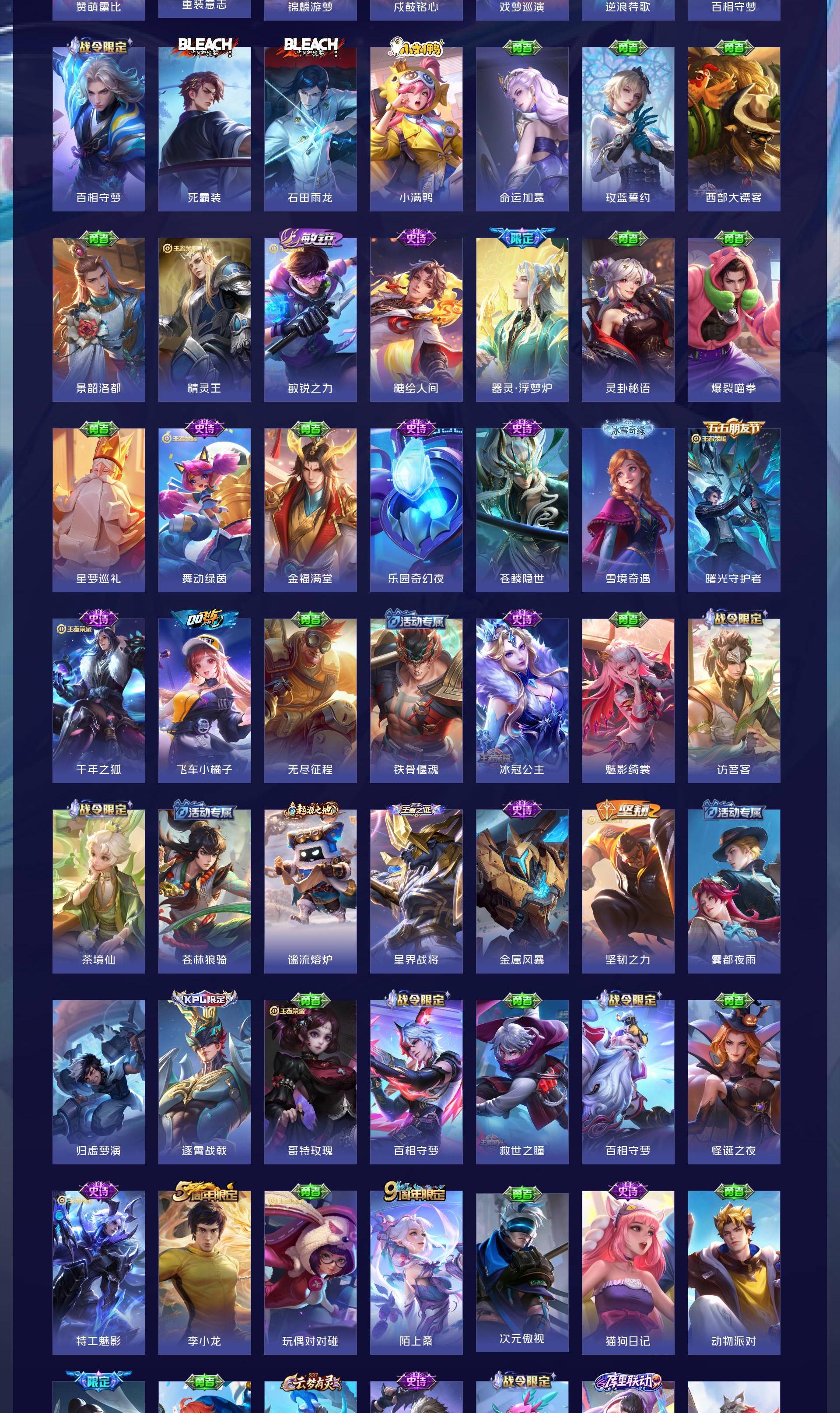 V10 皮肤519 英雄129 无双王者 荣耀典藏5 无双皮肤9 珍品传说5 传说58 其他皮肤443