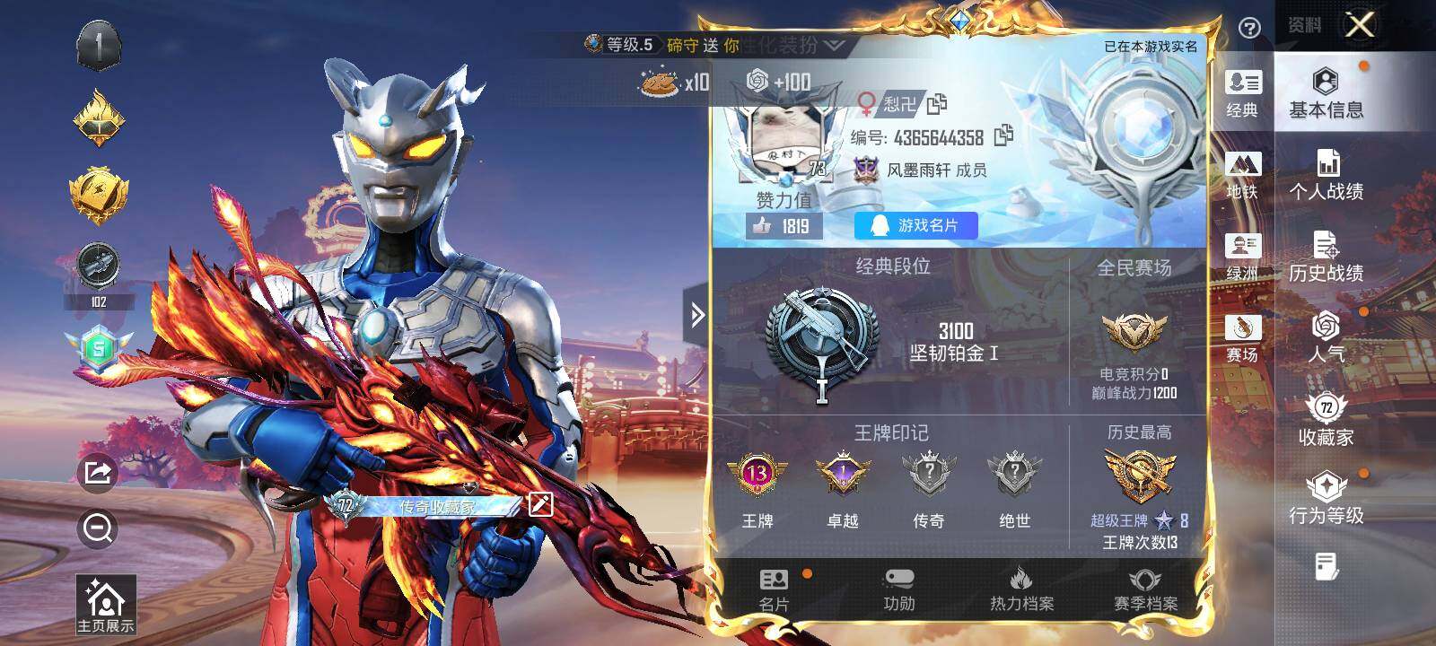 安卓 手Q-17粉装-6特效枪-0载具-7粉色飞行器-90786热力值-13王牌印记-225套装-257枪皮