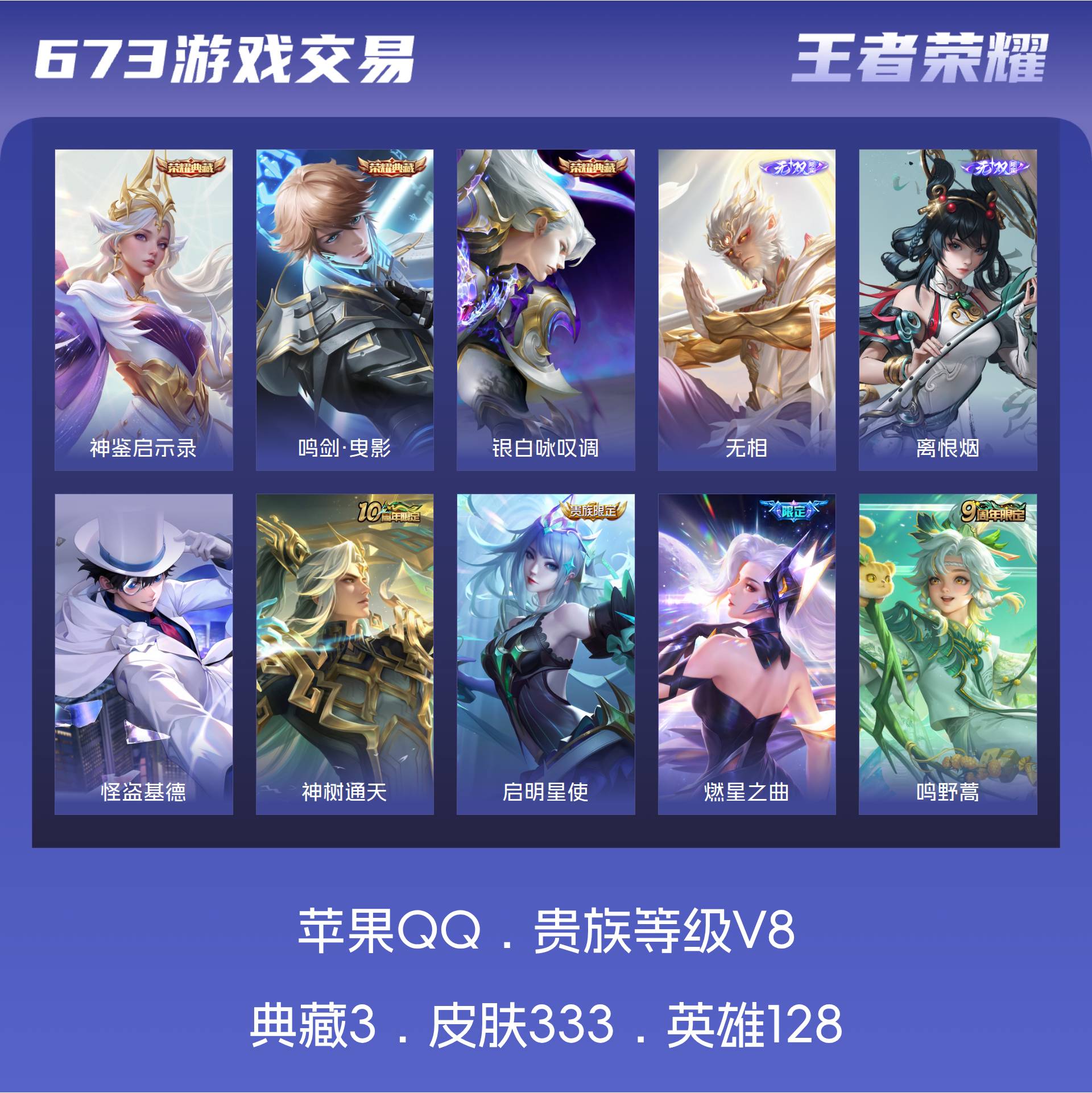 苹果QQ/至尊星耀/333皮肤/128英雄/3典藏/0珍品无双/2无双/1珍品传说/11传说/91史