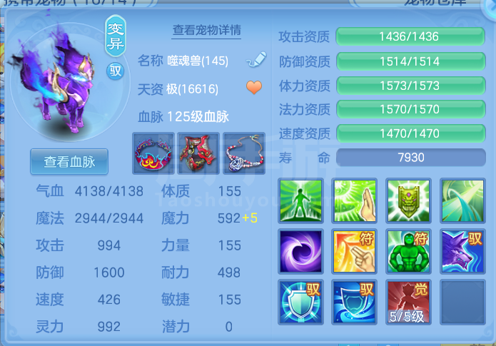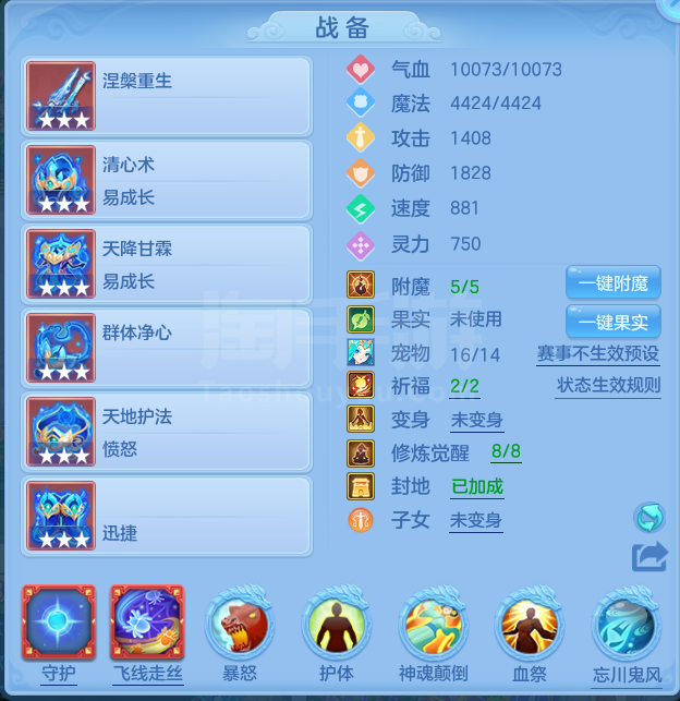今年勇140男盘丝,14.2段混,特技齐全,四海易成长衣服,涅槃躲避衣服,天地愤怒腰带,清心易成长帽子,1内丹强化青蛇