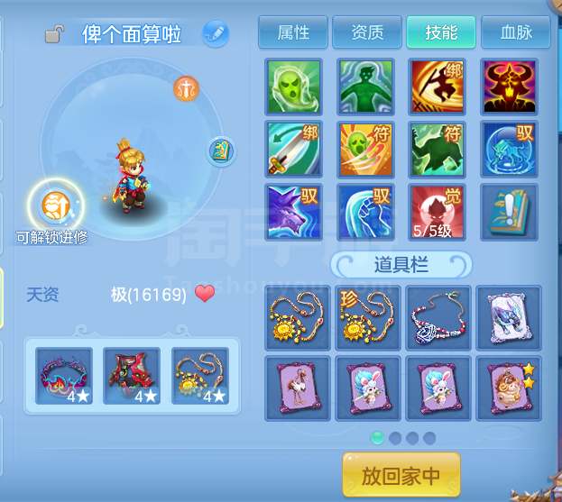 今年勇140男盘丝,14.2段混,特技齐全,四海易成长衣服,涅槃躲避衣服,天地愤怒腰带,清心易成长帽子,1内丹强化青蛇,红星极品公主,9.5个满兽魂宝宝,11个专属天赋,高级坐骑,双孩子(新PT孩子已出金色特质),2980邮箱,有双重。