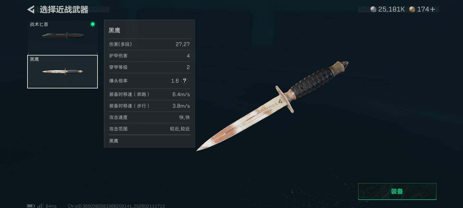 【近战皮肤】:近战-黑鹰