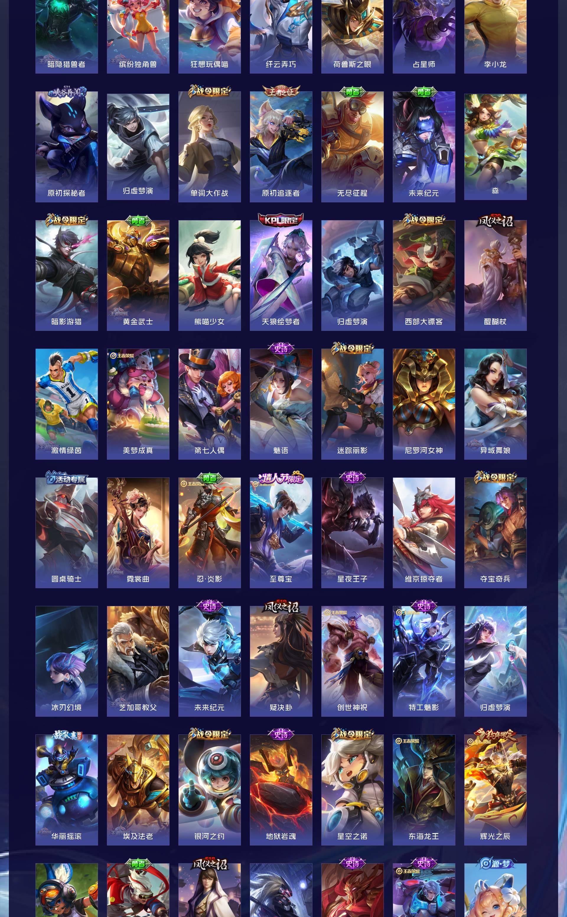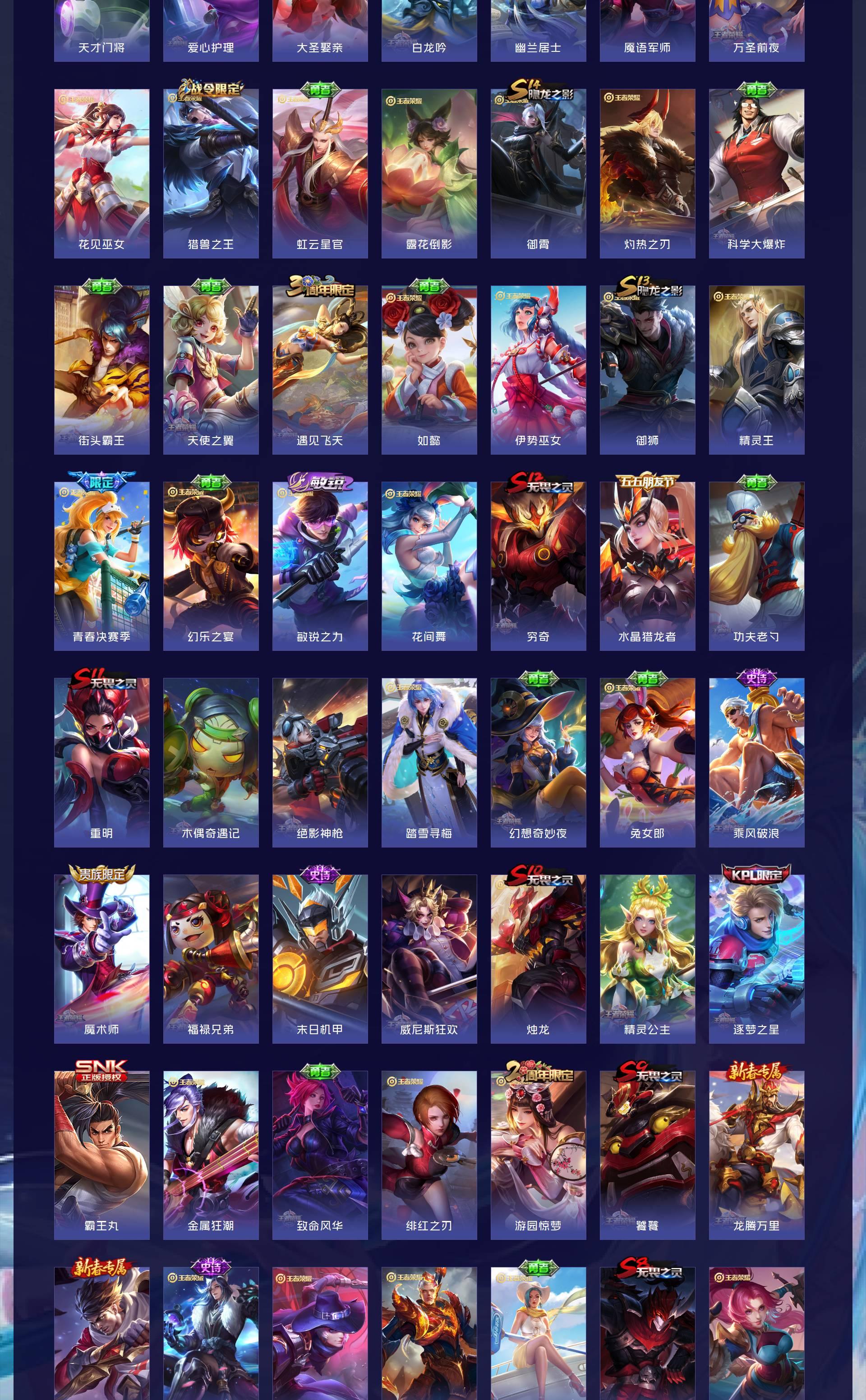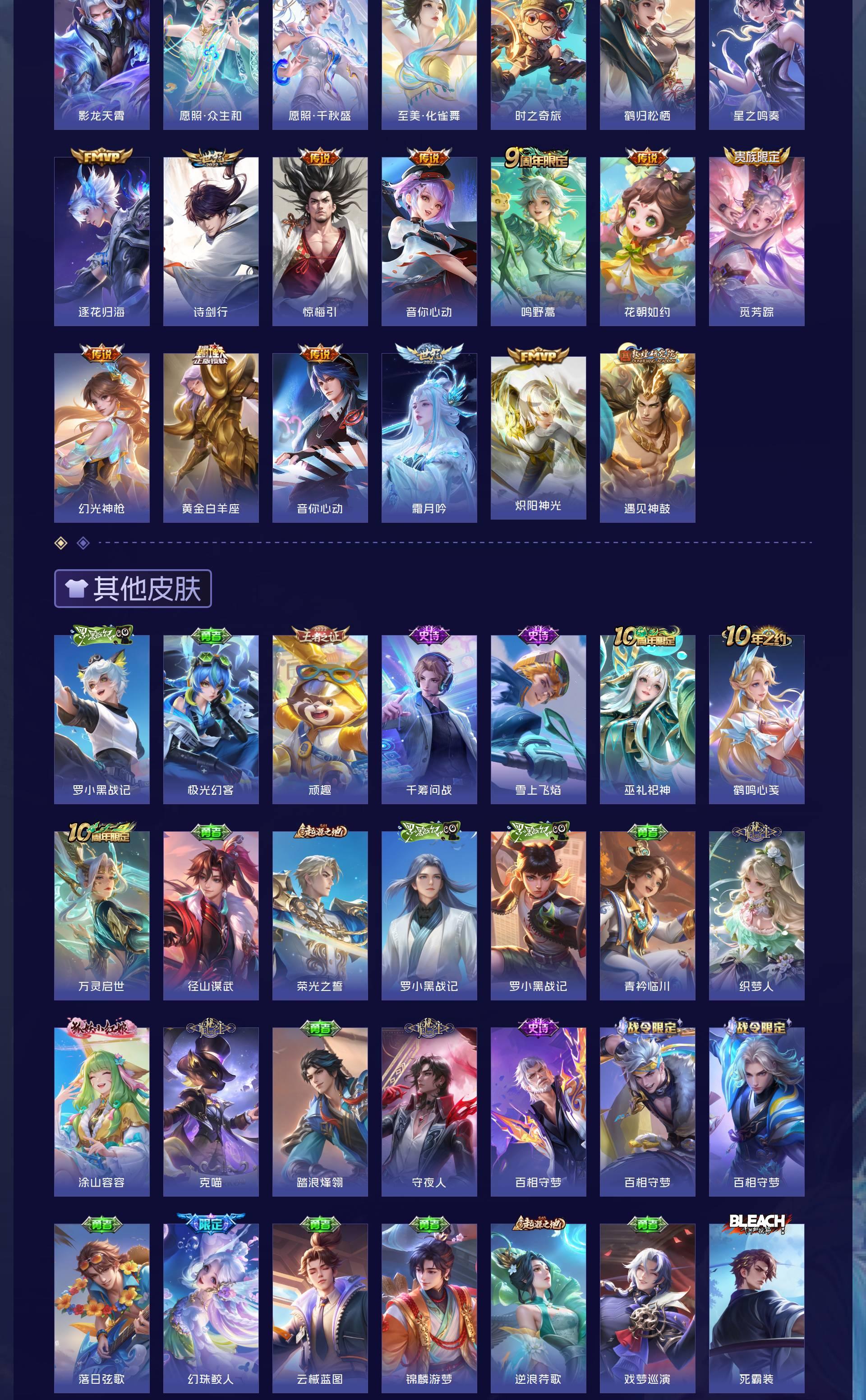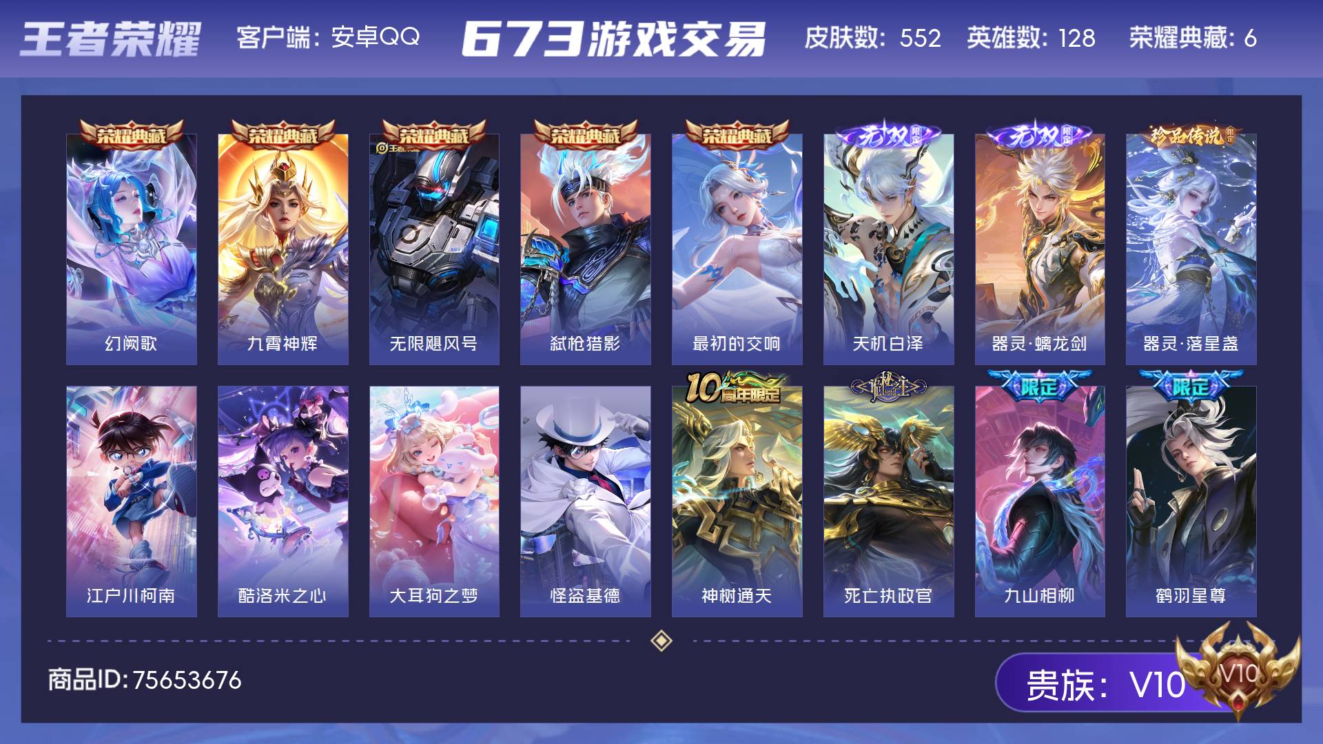 V10 皮肤552 英雄128 荣耀王者 荣耀典藏6 无双皮肤2 珍品传说5 传说77 其他皮肤467
