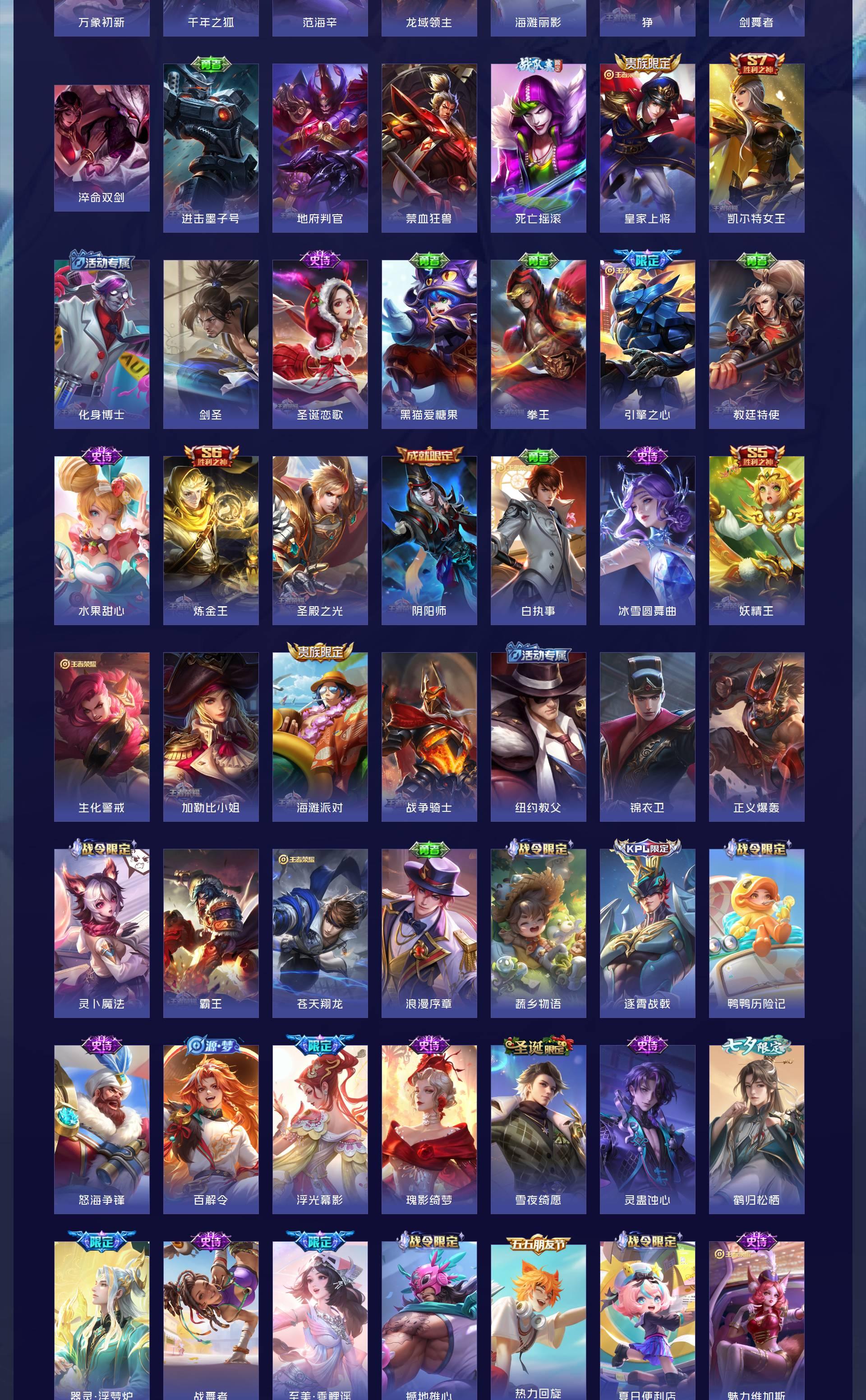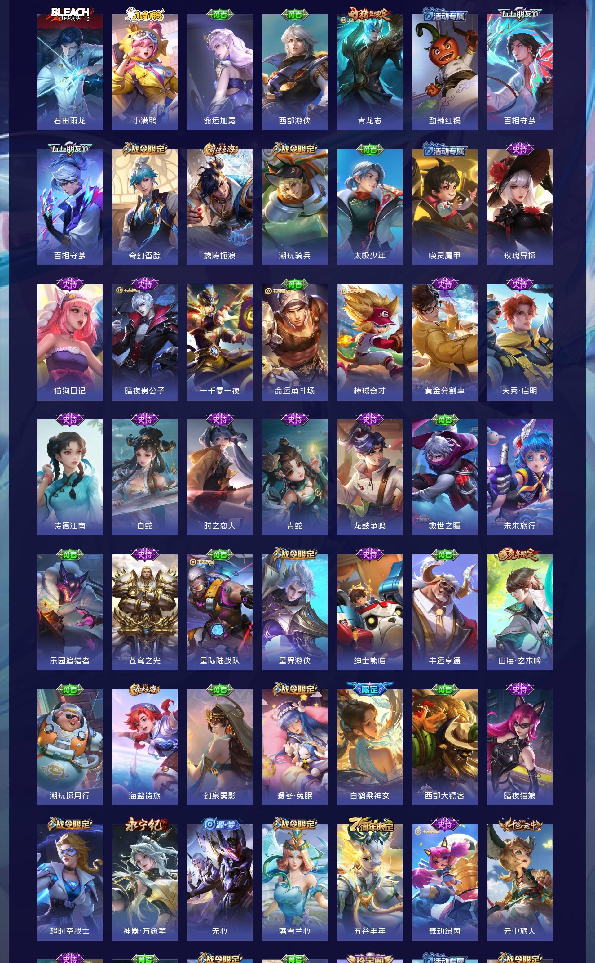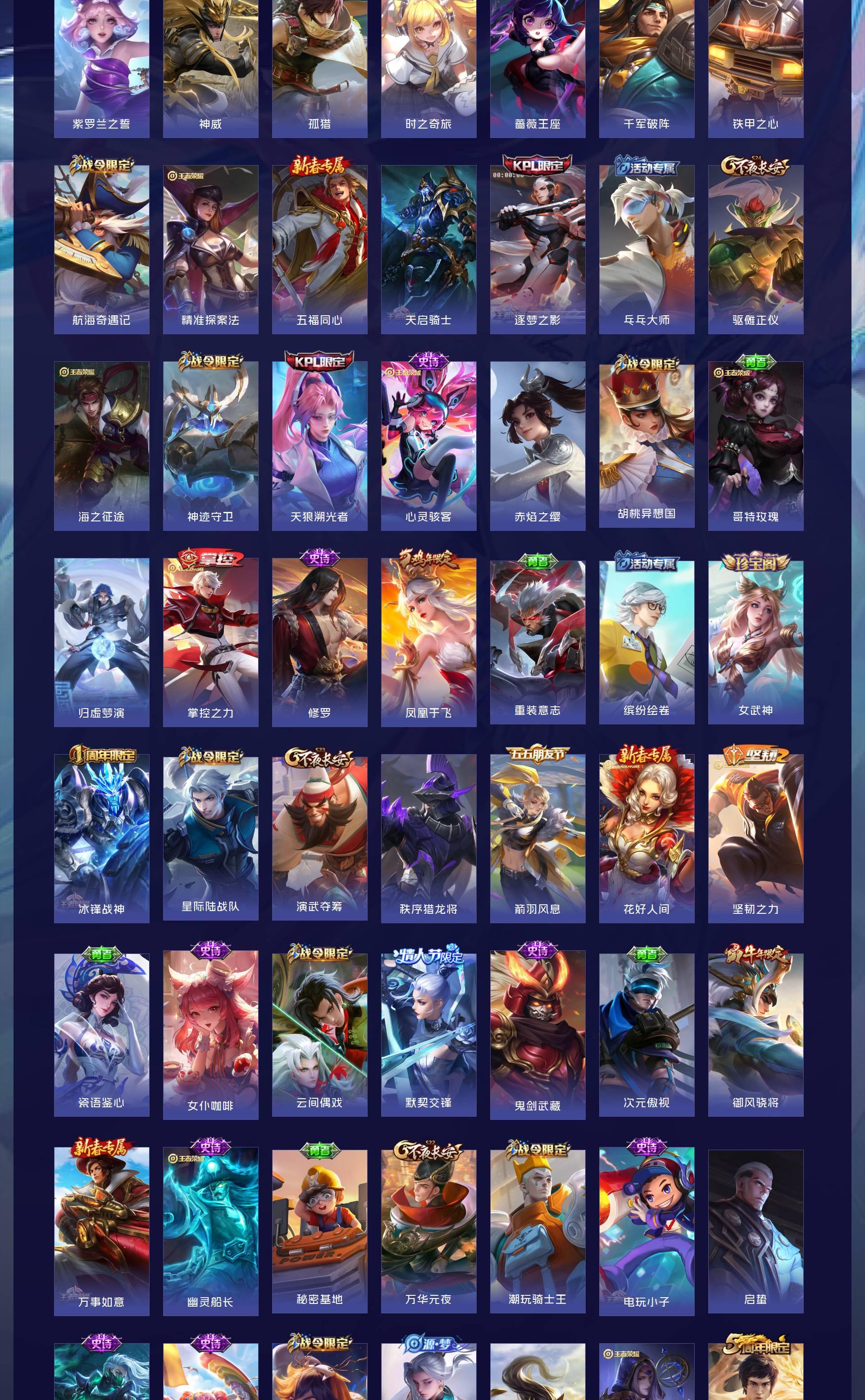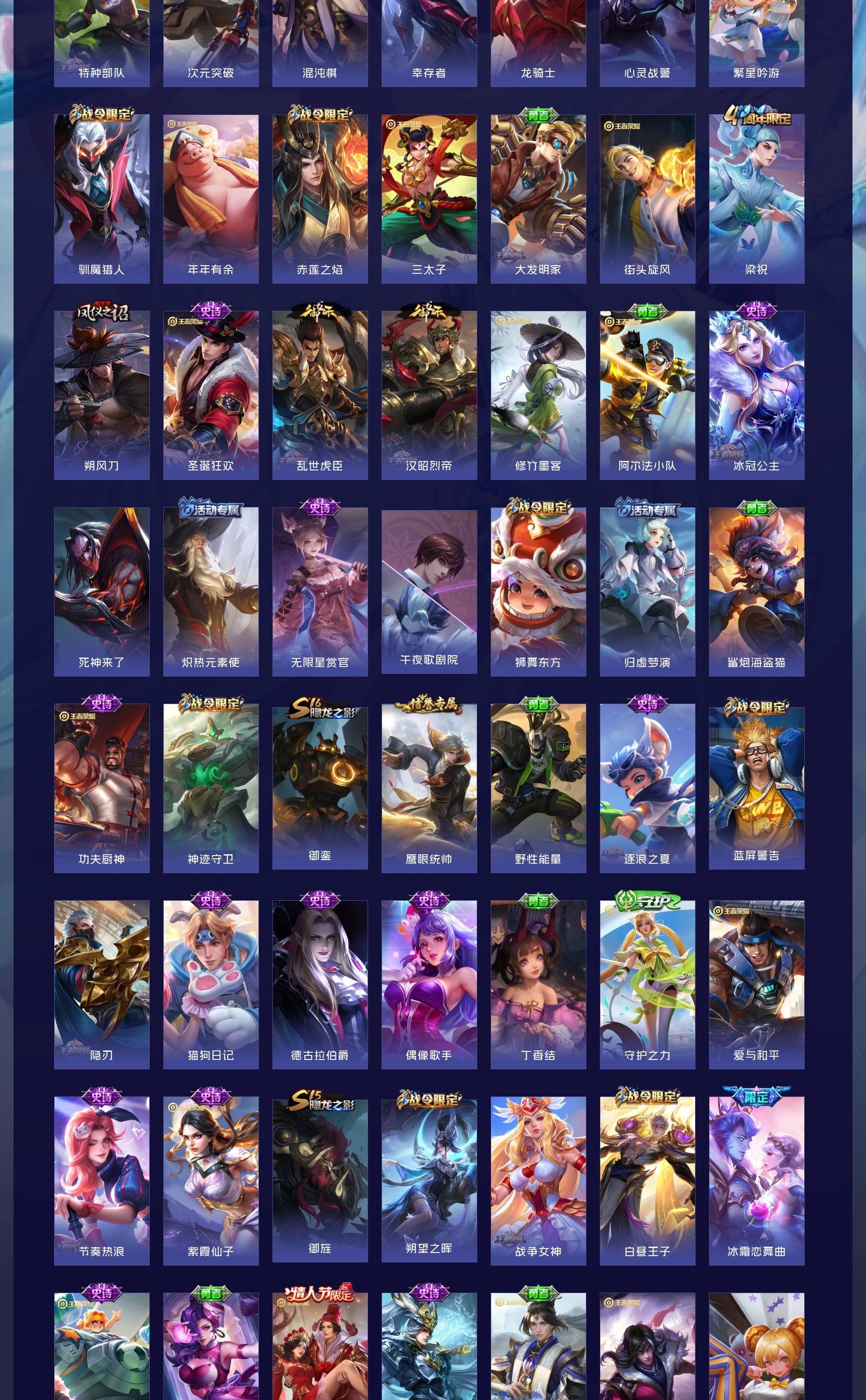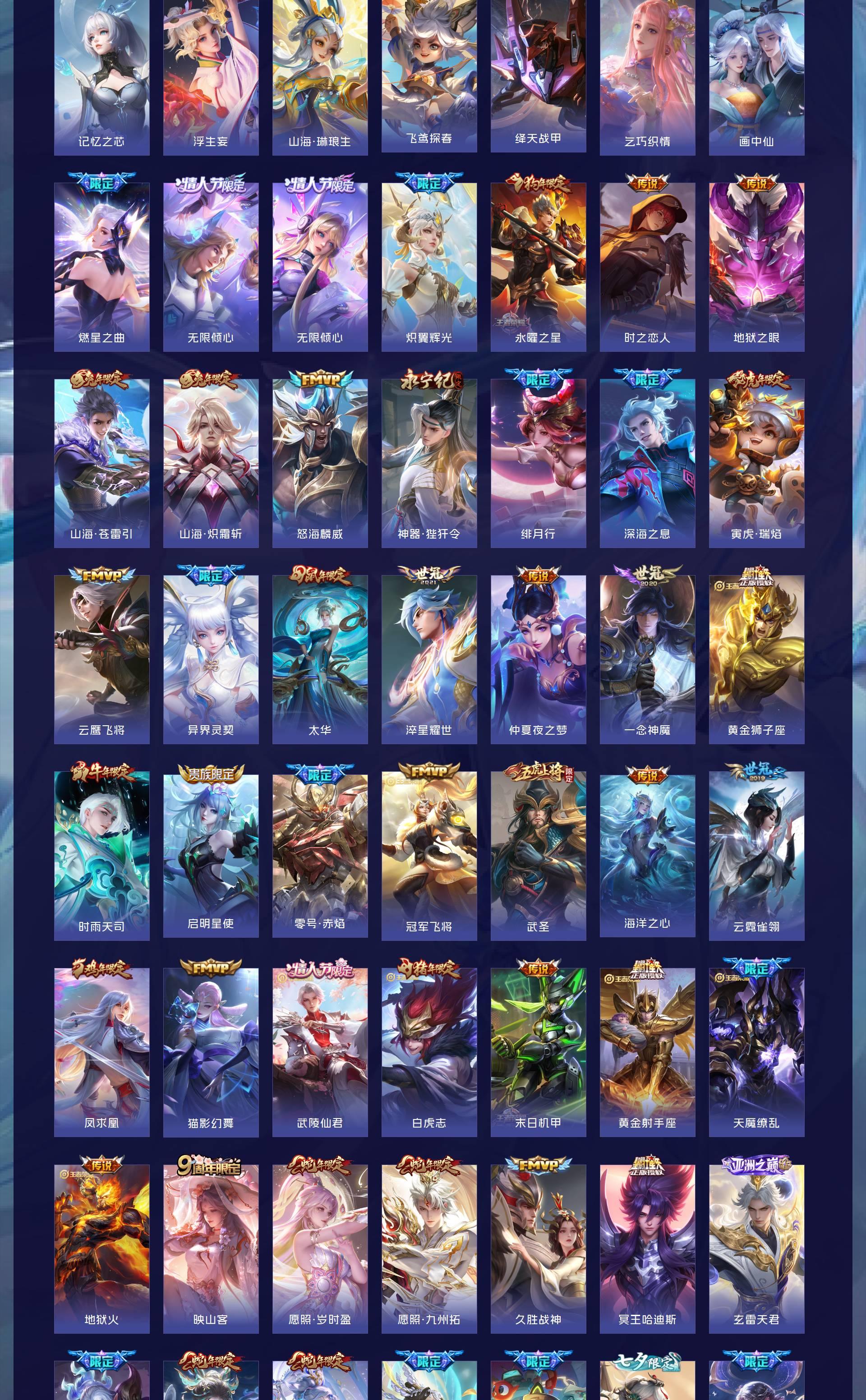 V10 皮肤552 英雄128 荣耀王者 荣耀典藏6 无双皮肤2 珍品传说5 传说77 其他皮肤467