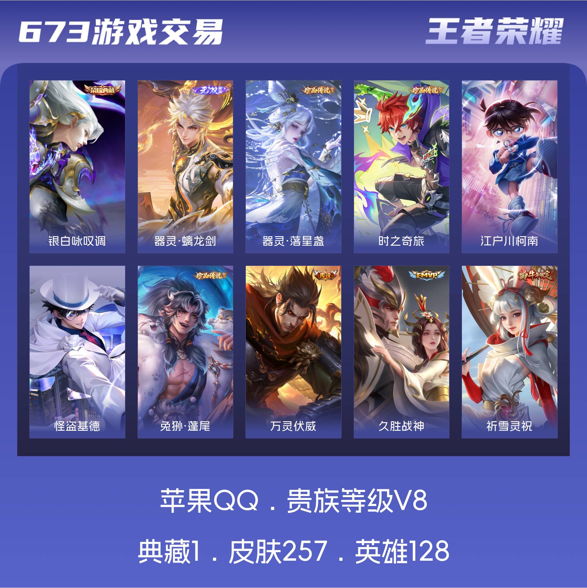 苹果QQ/最强王者/257皮肤/128英雄/1典藏/0珍品无双/1无双/5珍品传说/24传说/69史