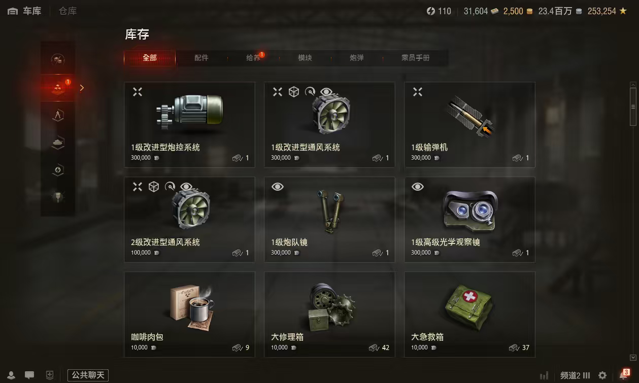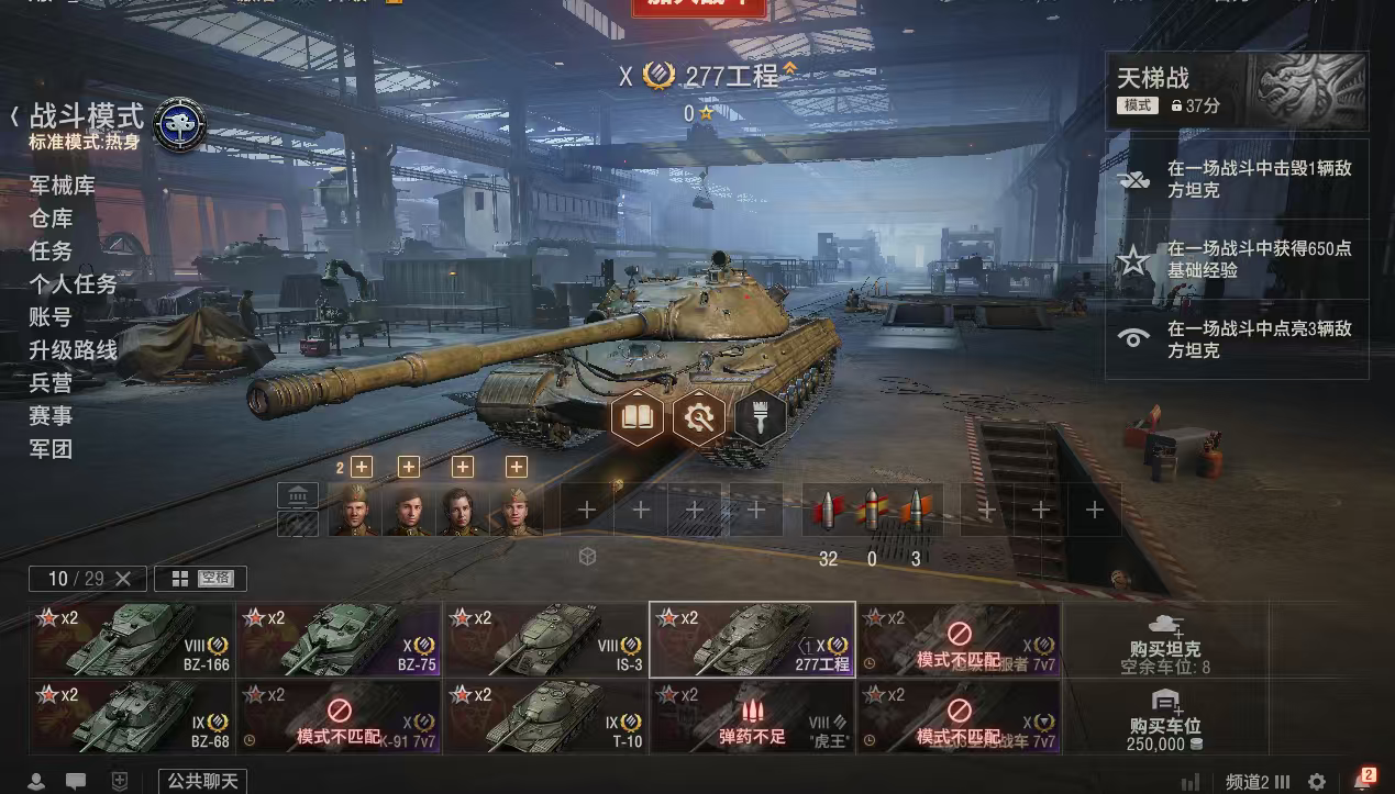 银币2300万、债券31600、金币2500、全局25万2辆10级车:BZ75、277工程