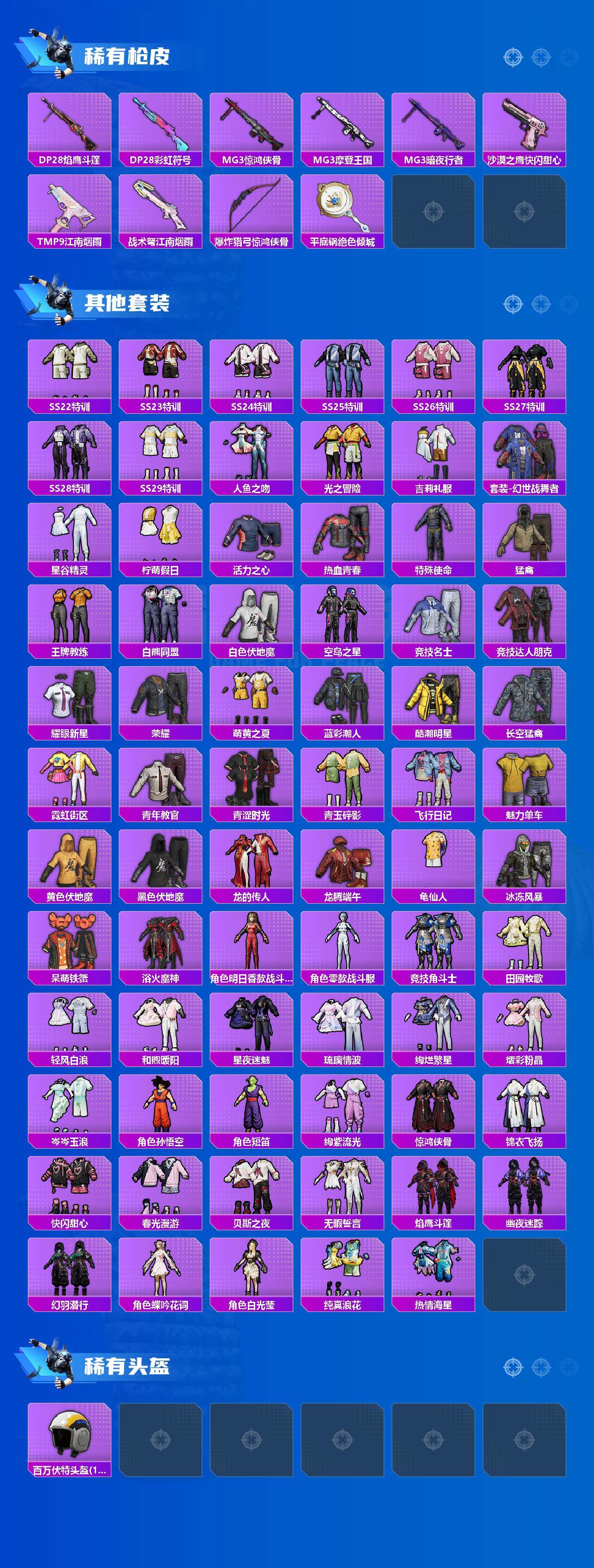 94套装/枪械4/装备177/战备108/王牌印记8/热力值42305/五级AKM-梦之光华/五级SCAR-L-桃夭倾城/六级M416-风花雪月/五级SPAS-12-蜜语绒猫/套装-龟仙人/花间之火/冰霜白皇/炙焰红王/香水柠檬/初号机款机体服/歌者泠鸢/暗夜鎏金/圣堂之誓/AKM-梦之光华/SCAR-L-桃夭倾城/M416-风花雪月/SPAS-12-蜜语绒猫/歌者泠鸢飞行器/鎏金朋克飞行器/童