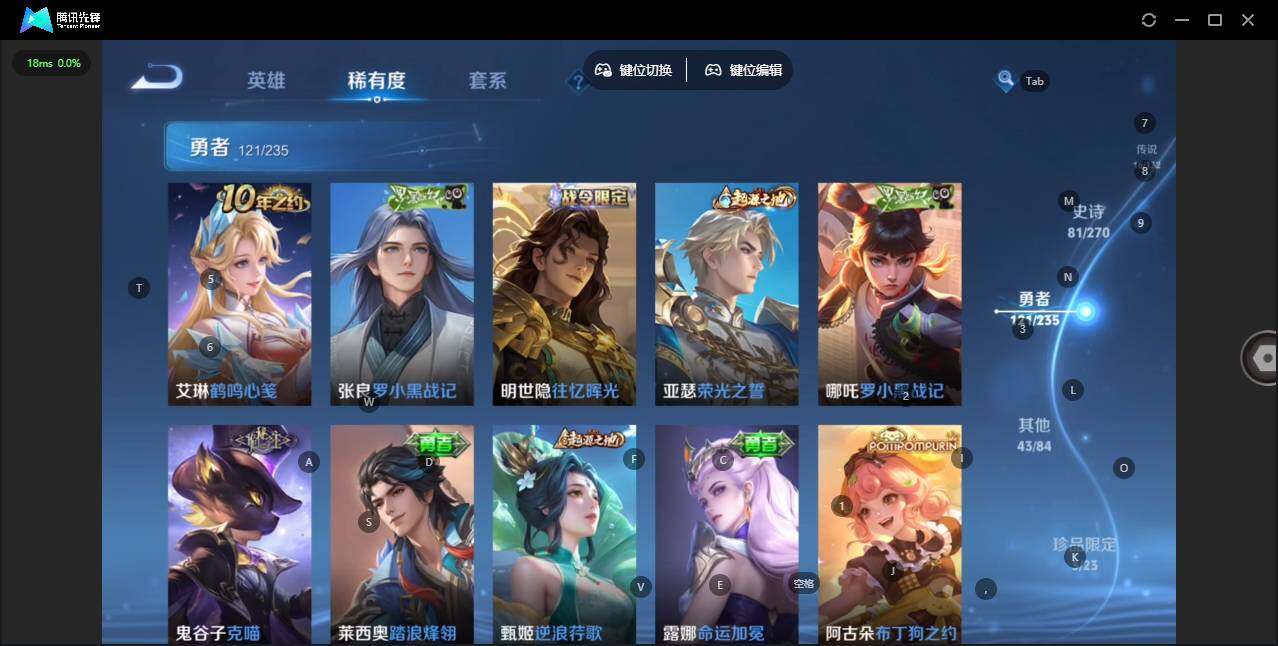 实名: 可修改 贵族等级: V7 英雄数: 127 皮肤数: 265 荣耀水晶