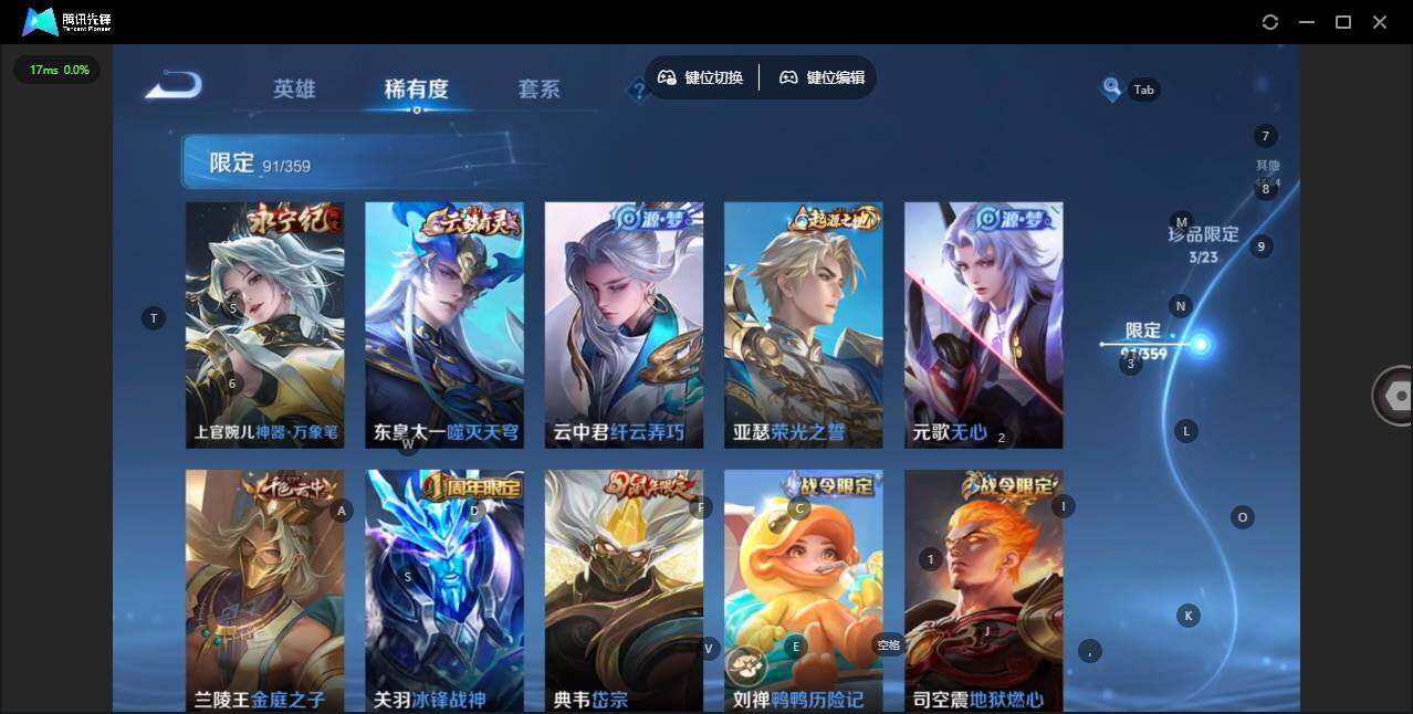 实名: 可修改 贵族等级: V7 英雄数: 127 皮肤数: 265 荣耀水晶: 神鉴启示录 珍品传说: 江户川柯南,怪盗基德,时之奇旅-孙策 星传说: 幽冥之眼 传说皮: 黄金射手座,绛天战甲,黄金白羊座,一念神魔,地狱之眼,时之恋人-刘备,末日机甲-孙策,无双飞将,浮生妄,幻光神枪,神树通天 限定皮: 冰锋战神,遇见飞天,李小龙,御风骁将,龙胆,岱宗,白虎志,至