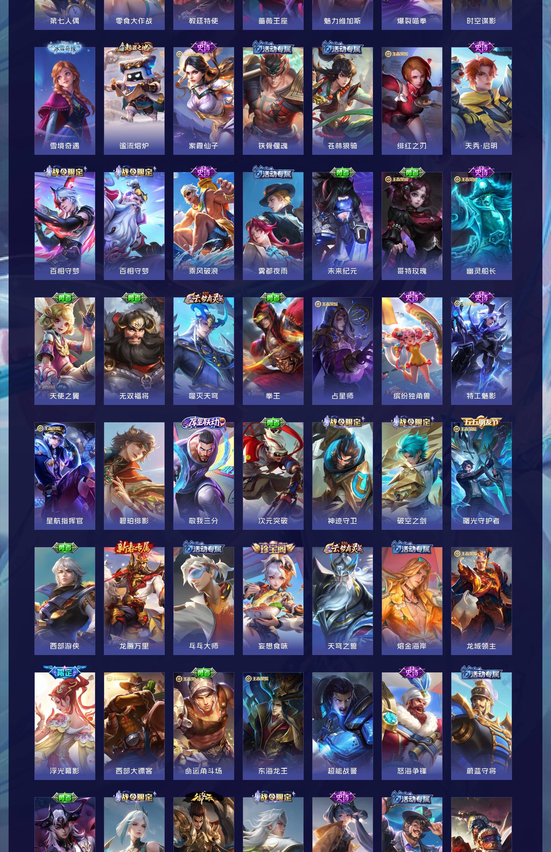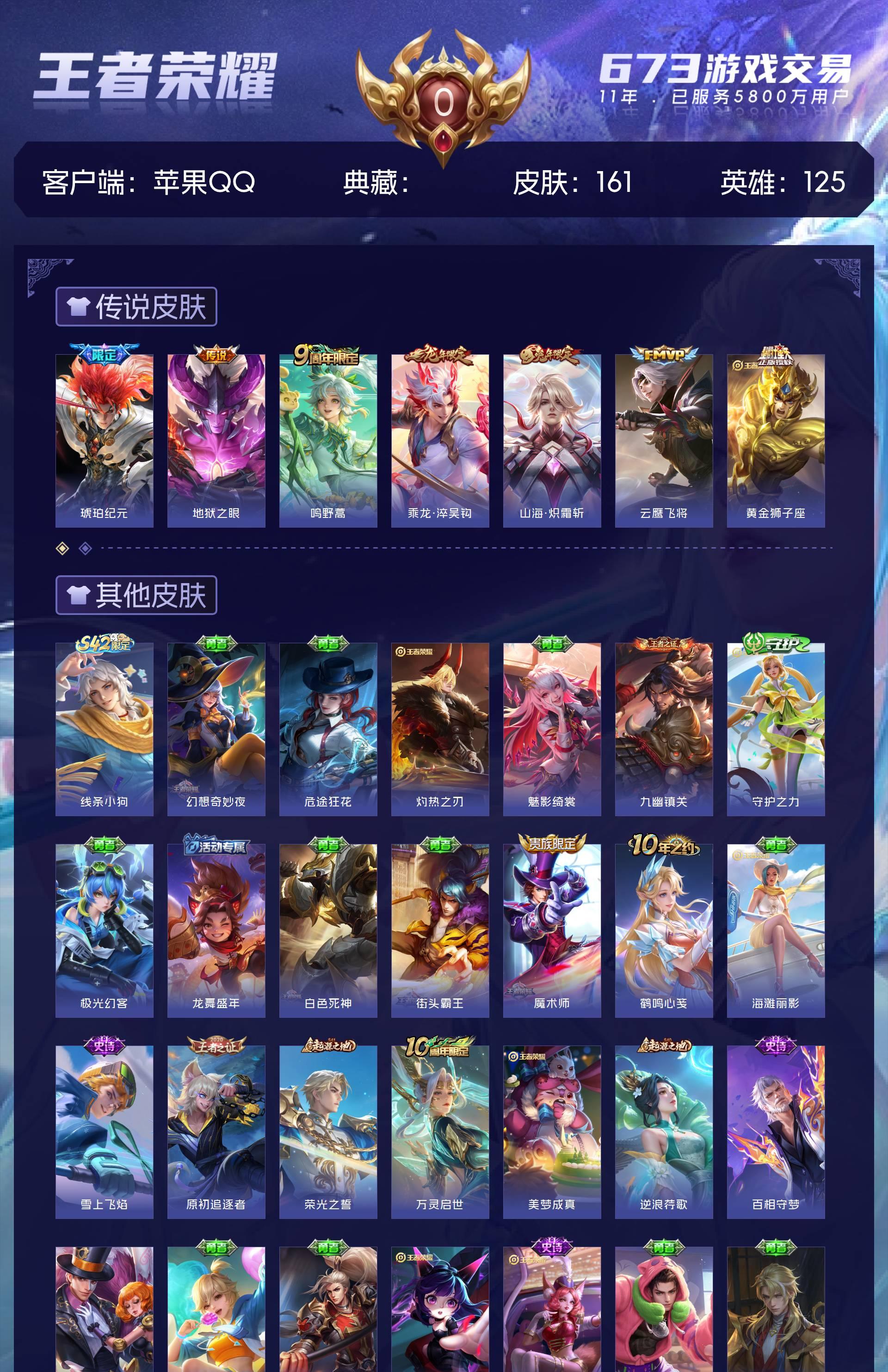 皮肤161 英雄125 最强王者 星传说1 传说7 其他皮肤159