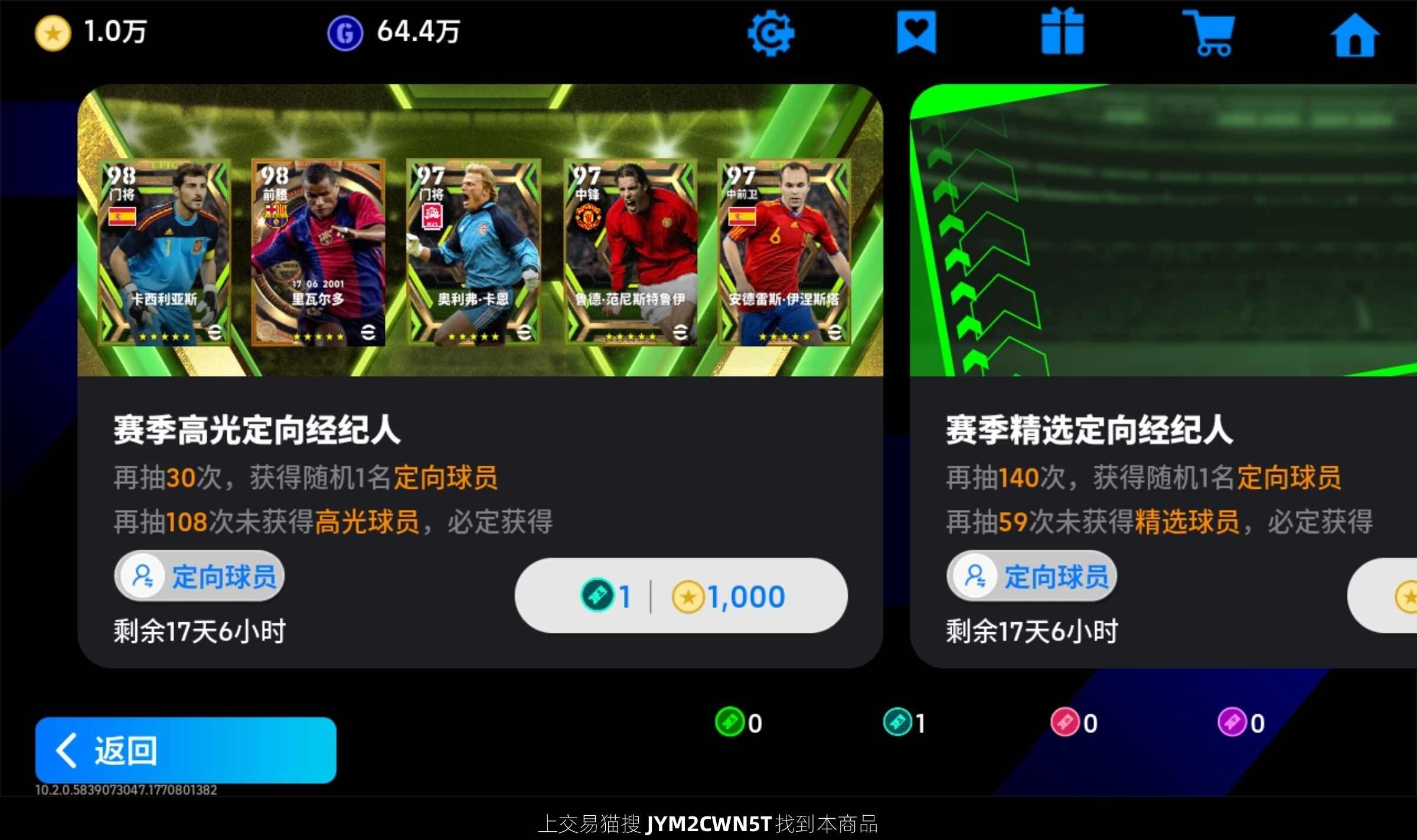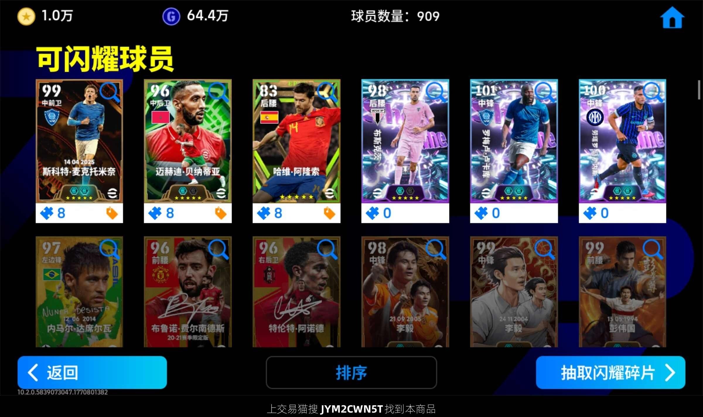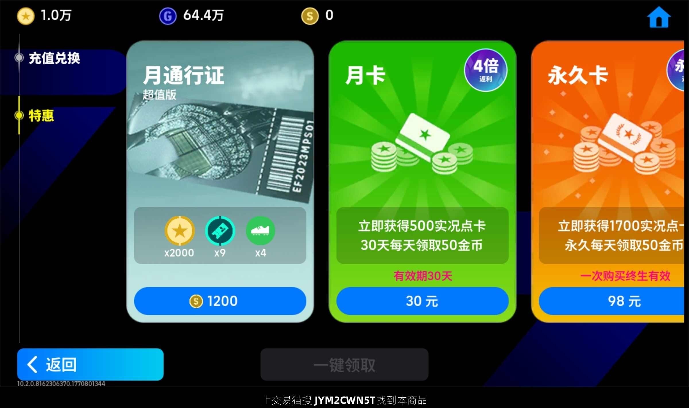 1w金币,bt麦克托米奈,梦幻精选卢卡库劳塔罗,精选姆巴佩,登贝莱等,可换绑