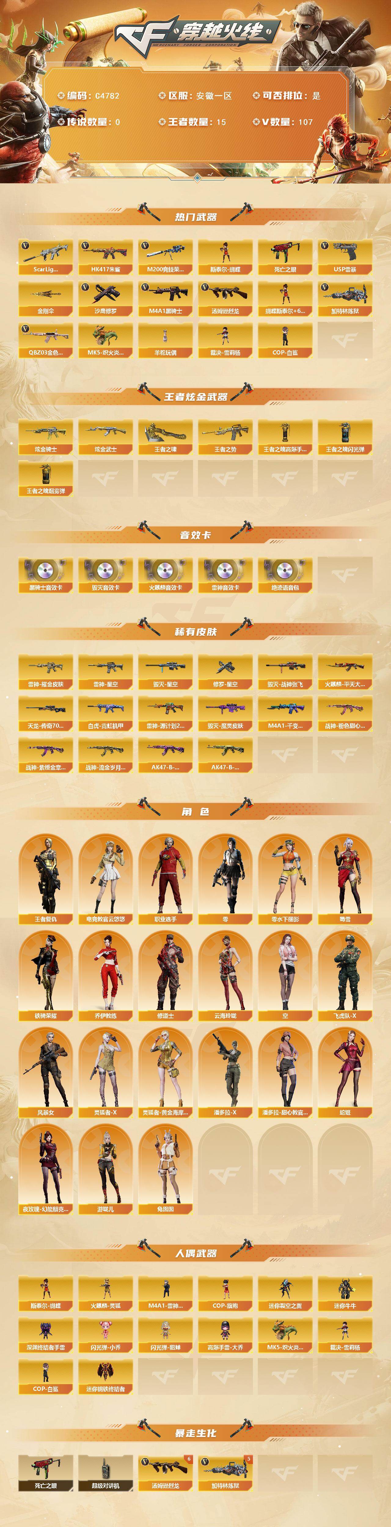 【C4782】安徽一区-120V-15王者武器数-2炫金武器数