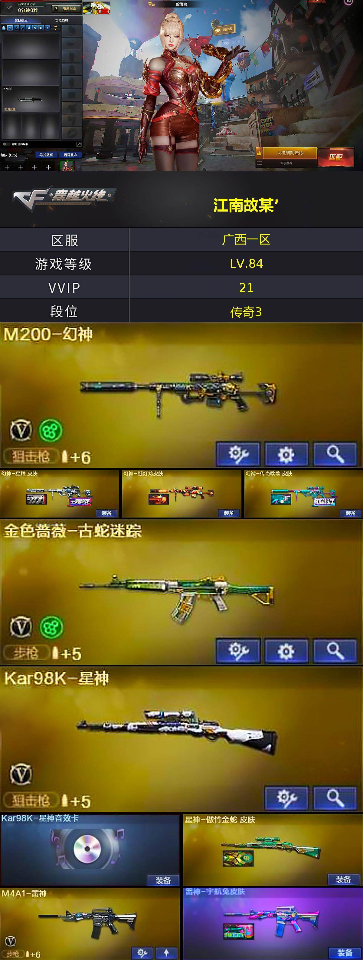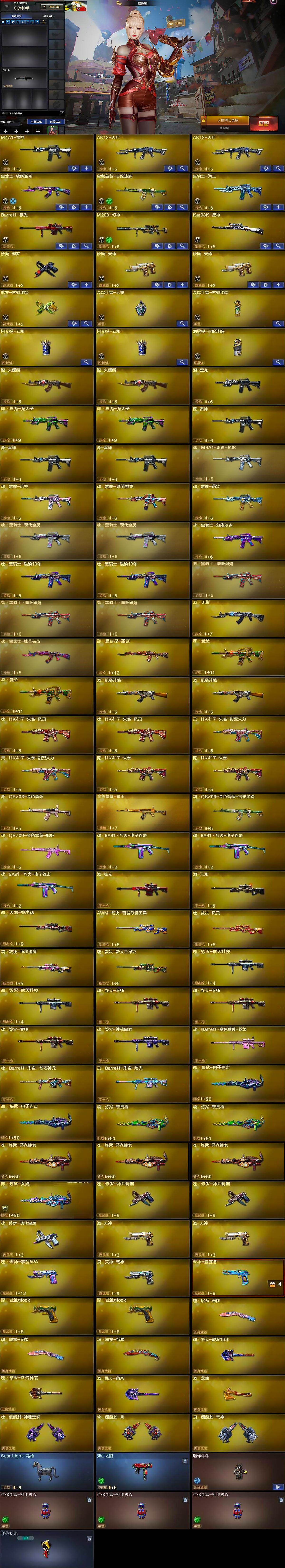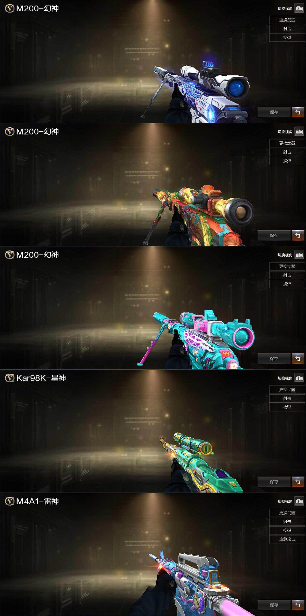 【热门武器】:M200-幻神,金色蔷薇-古蛇迷踪,修罗-古蛇迷踪,死亡之眼,Kar98K-星神,沙鹰-修罗,黄金猫猫手套-白鲨