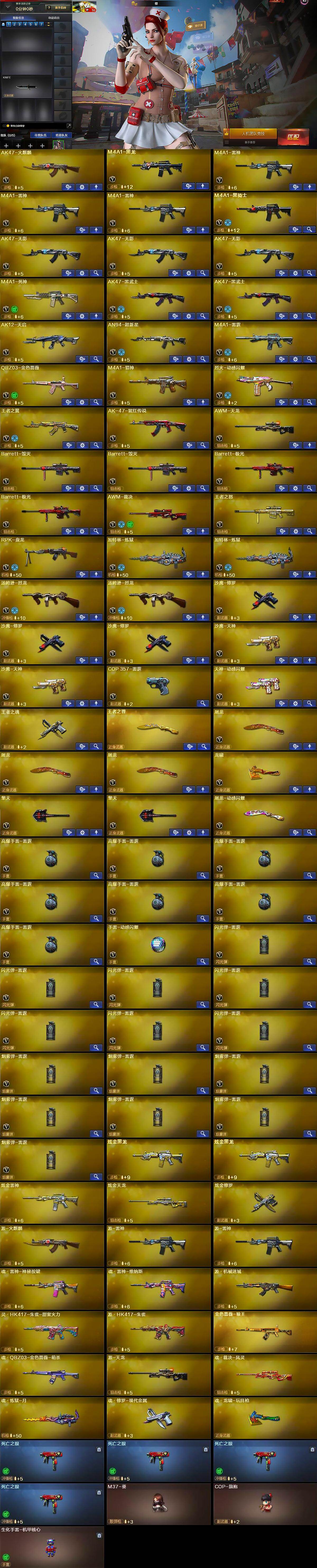 【热门武器】:QBZ03-金色蔷薇,死亡之眼*4,M4A1-黑骑士,汤姆逊-烈龙*2,RPK-盘龙,加特林-炼狱*2,沙鹰-修罗*3