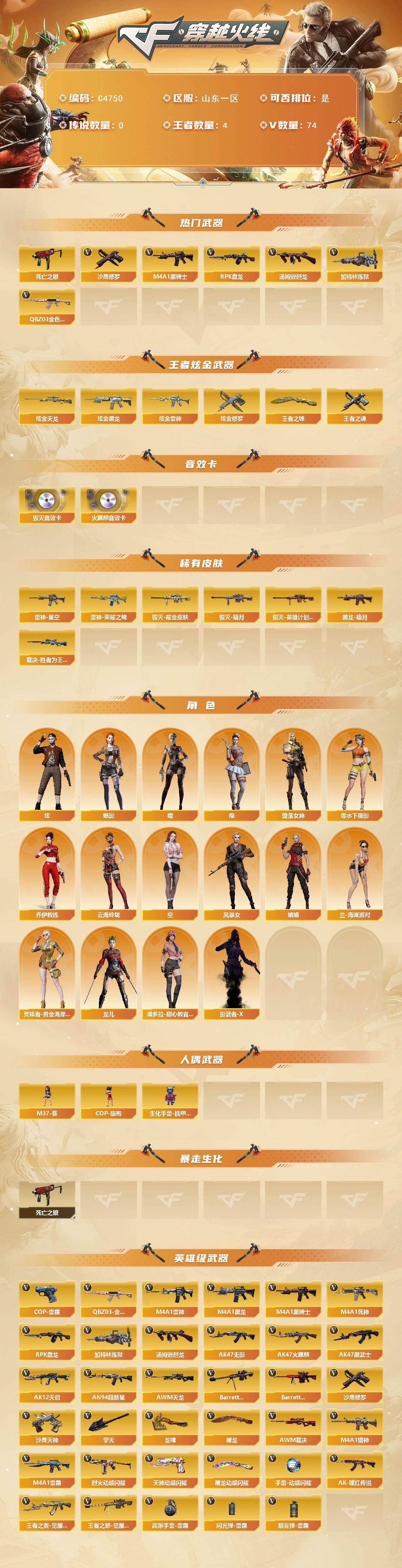 【C4750】山东一区-77V-4王者武器数-5炫金武器数