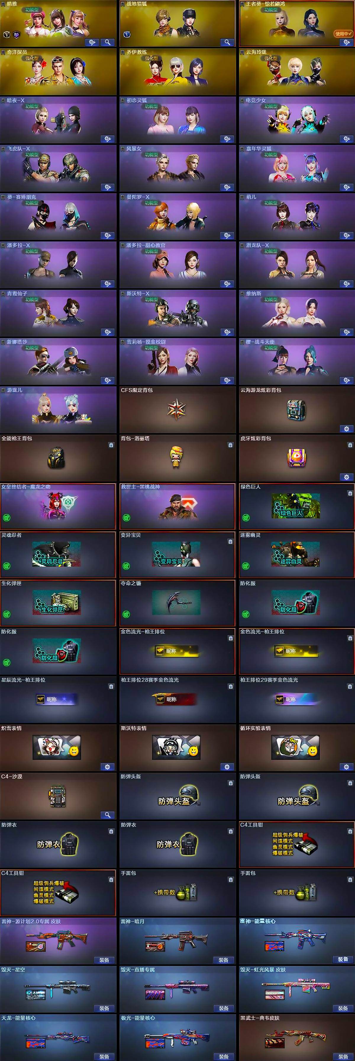 【角色】:晴雅,战地猎狐,王者葵-惊若翩鸿,奇洋探员,乔伊教练,云海玲珑,暗夜-X,初恋灵狐,电竞少女,飞虎