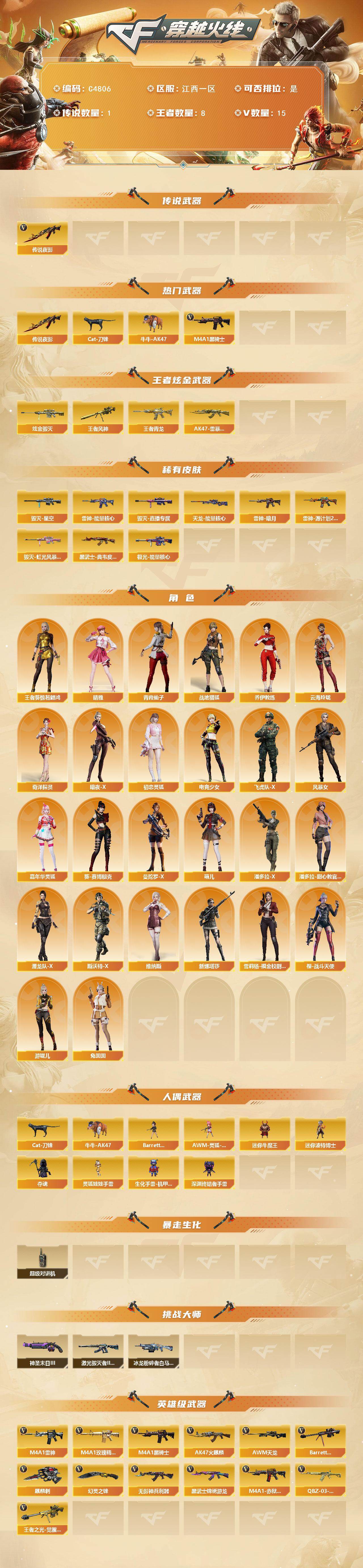 【C4806】江西一区-17V-8王者武器数-1炫金武器数