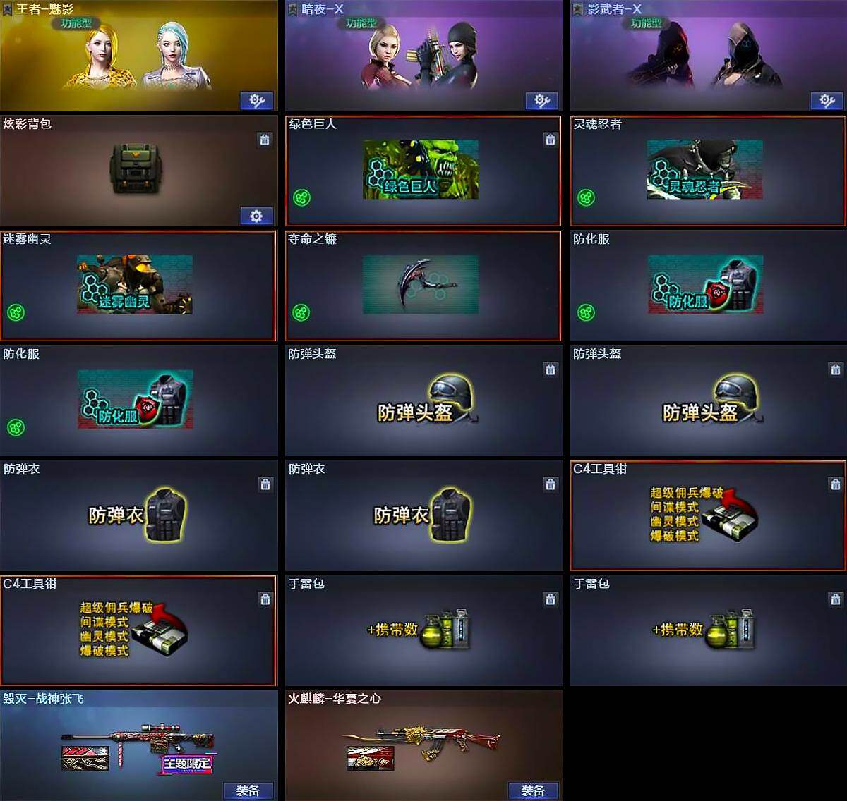 【道具】:炫彩背包,绿色巨人,灵魂忍者,迷雾幽灵,夺命之镰,防