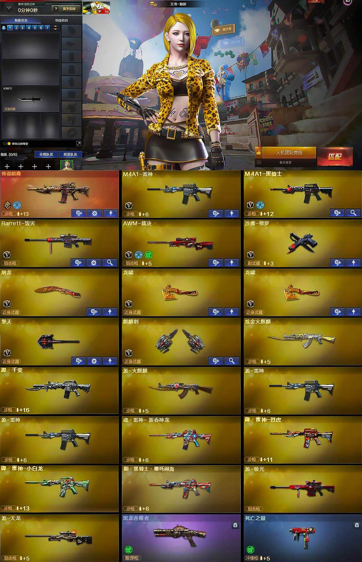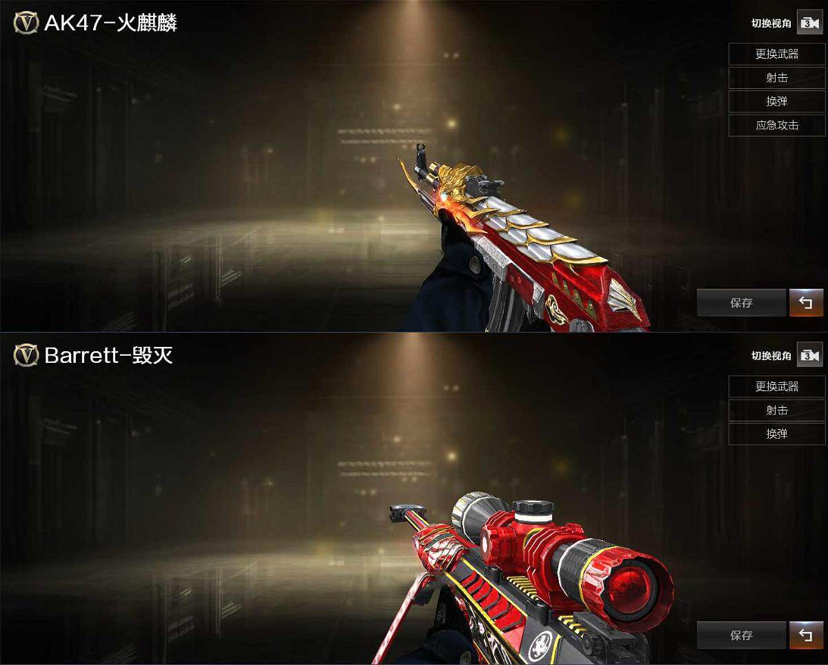 【英雄级武器】:M4A1-雷神,M4A1-黑骑士,Barrett-毁灭,AWM-裁决,沙鹰-修罗,屠龙,龙啸*2,擎天,麒麟刺