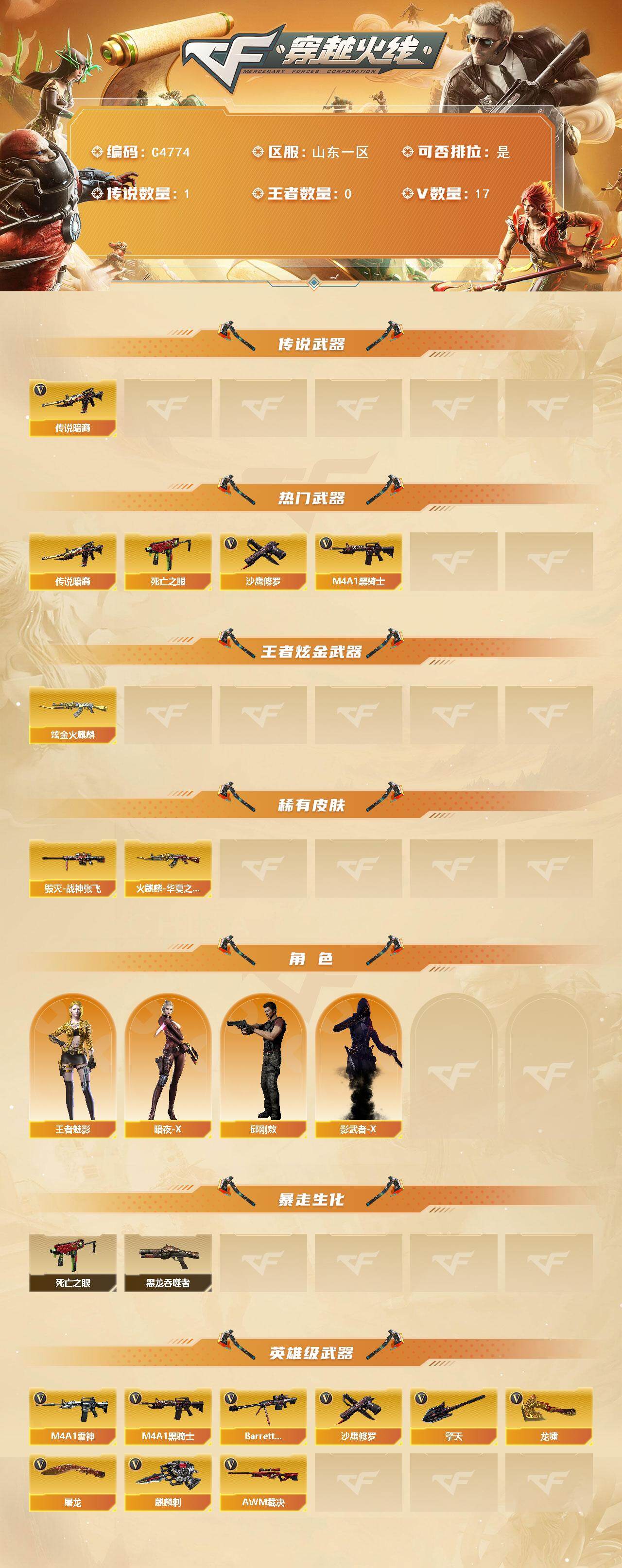 【C4774】山东一区-17V-0王者武器数-1炫金武器数