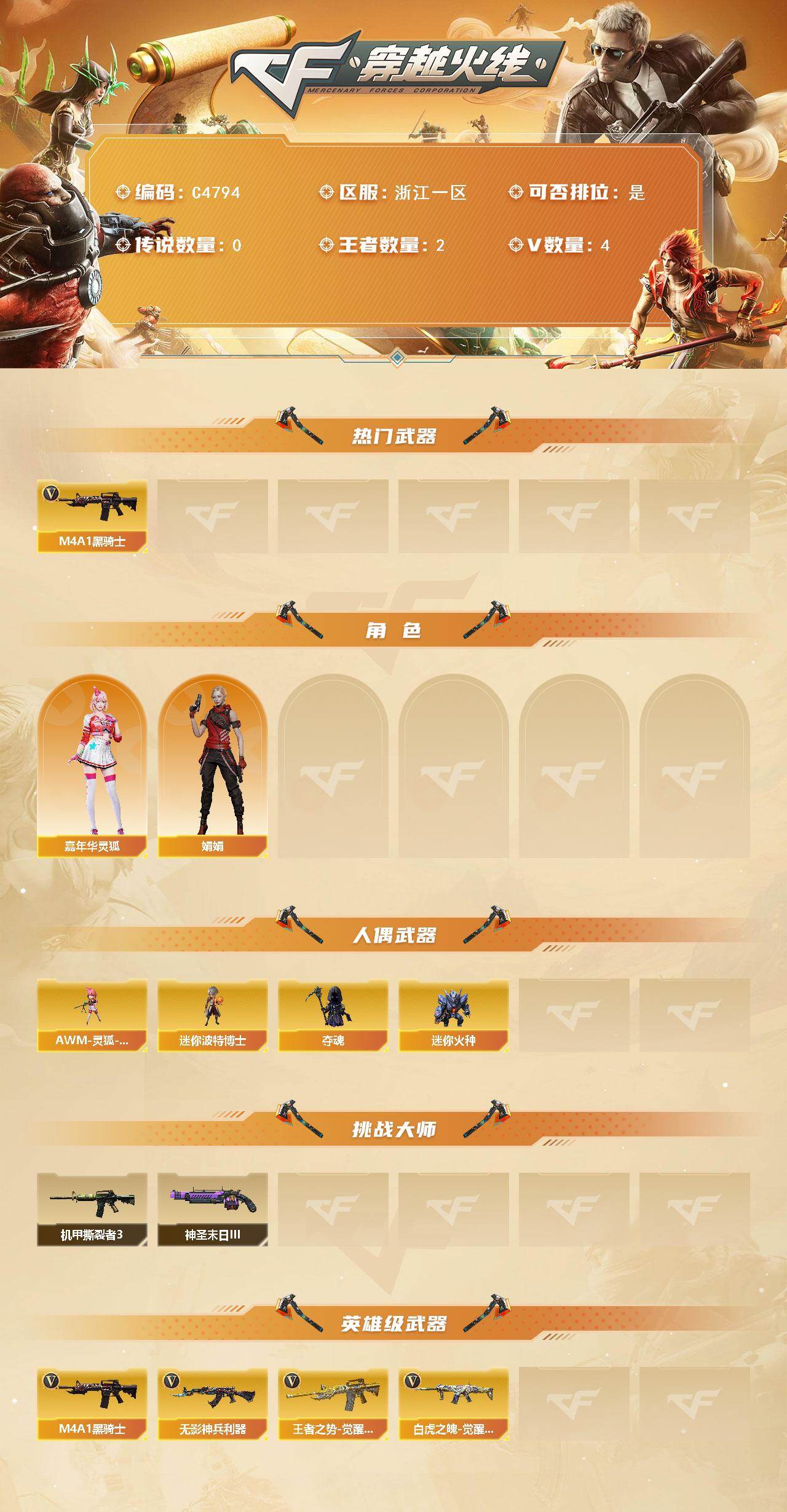 【C4794】浙江一区-6V-2王者武器数-0炫金武器数