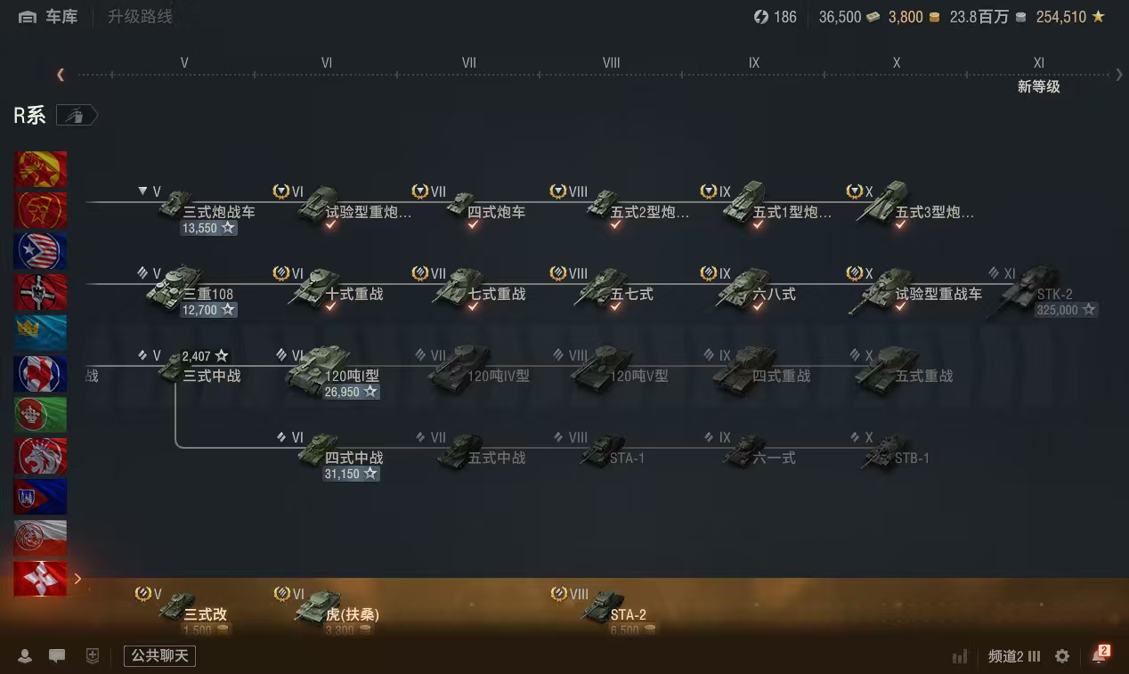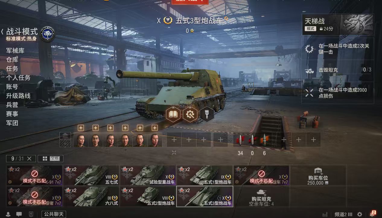 银币2400万、债券36500、金币2500、全局25万、个人储备120个2辆10级车:试验型重战