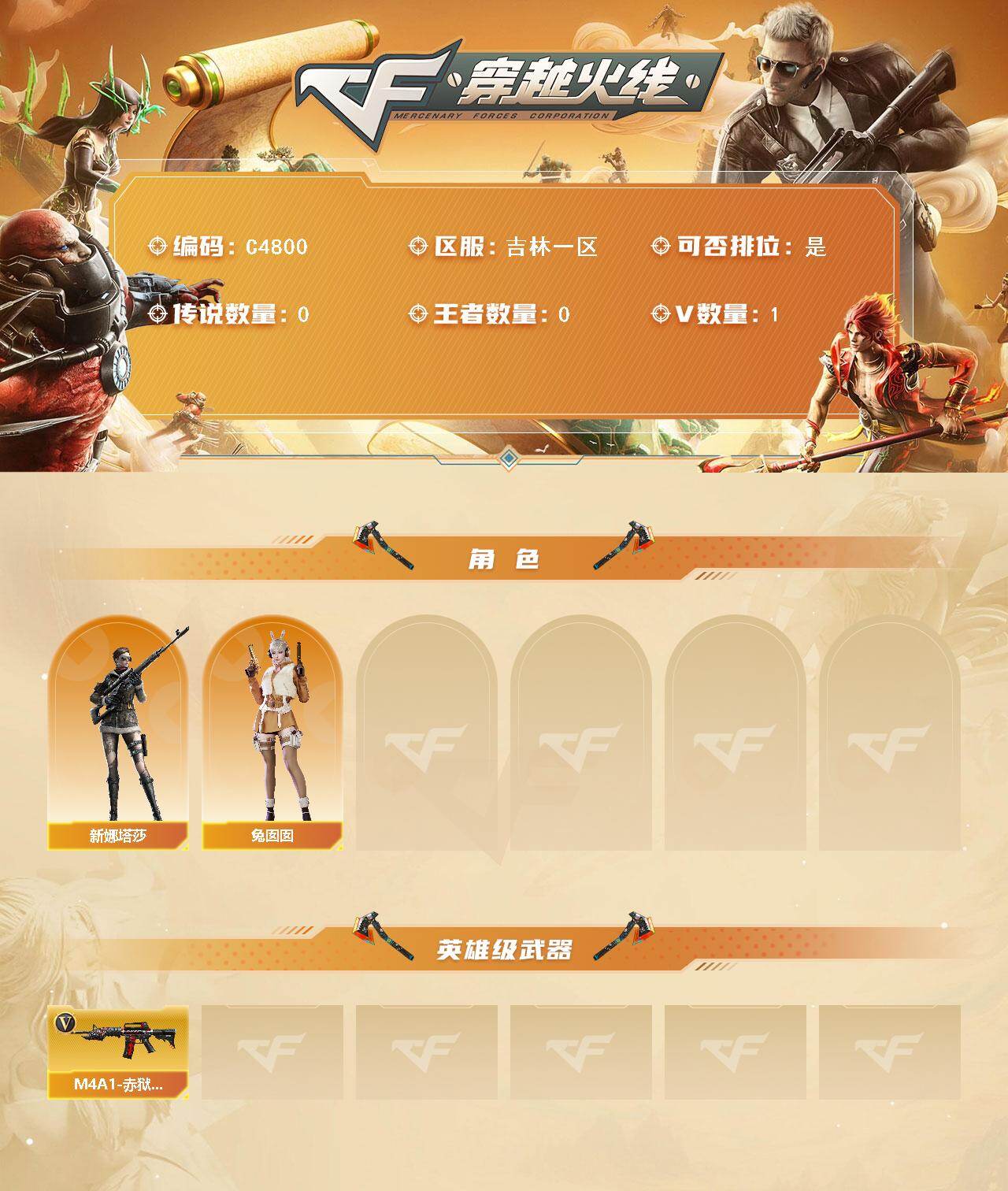 【C4800】吉林一区-1V-0王者武器数-0炫金武器数