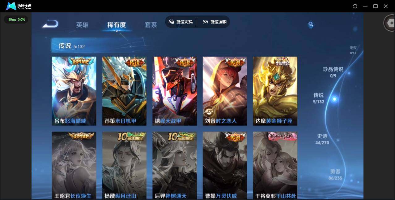 实名: 可修改 贵族等级: V6 英雄数: 123 皮肤数: 168 传说皮: