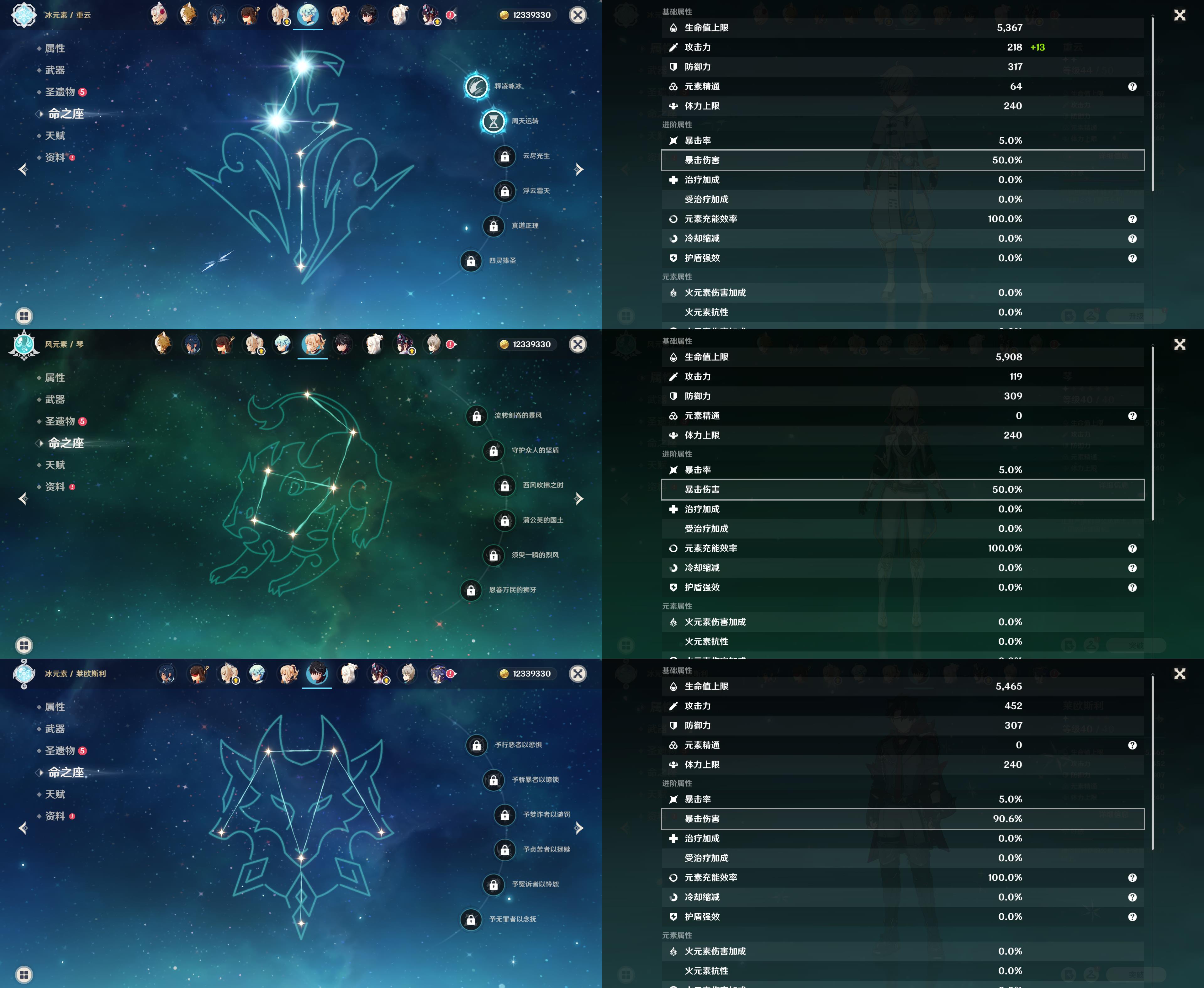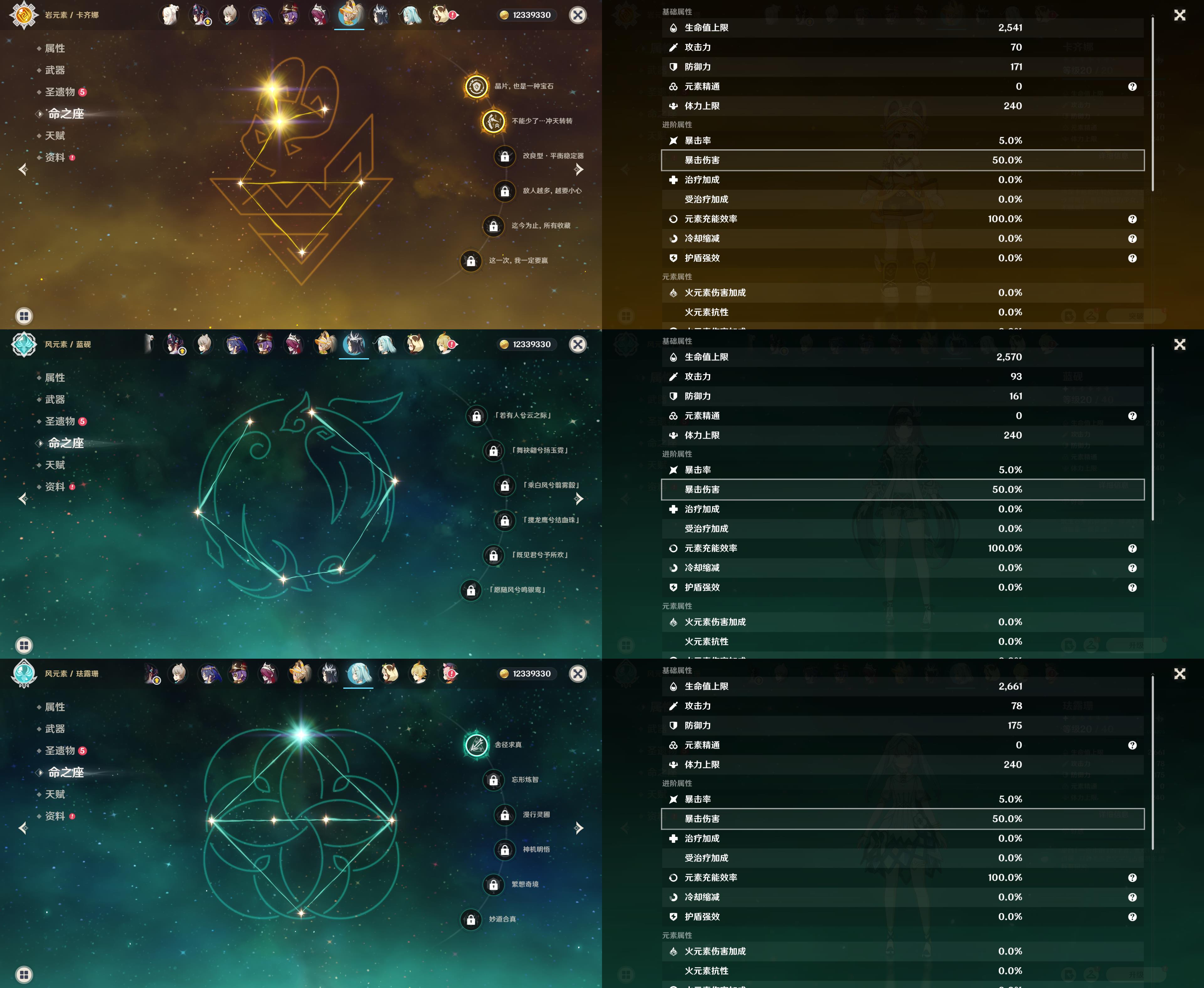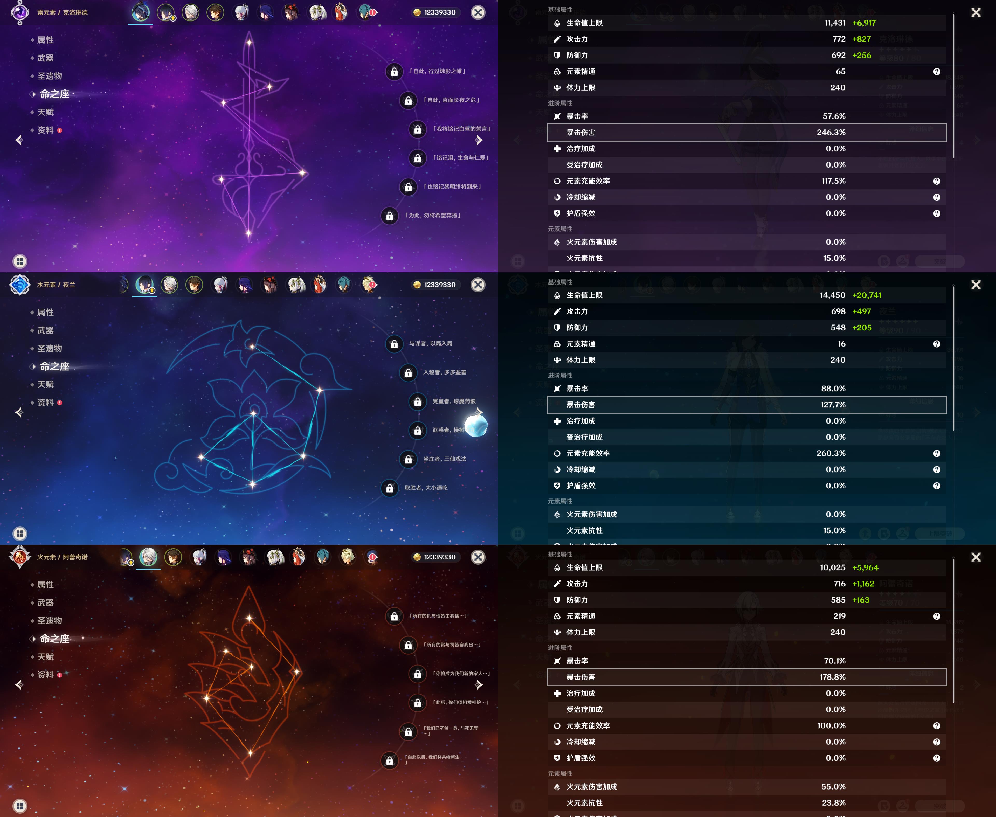 57级/25黄/女主/17个五星角色/3个五星武器/克洛琳德