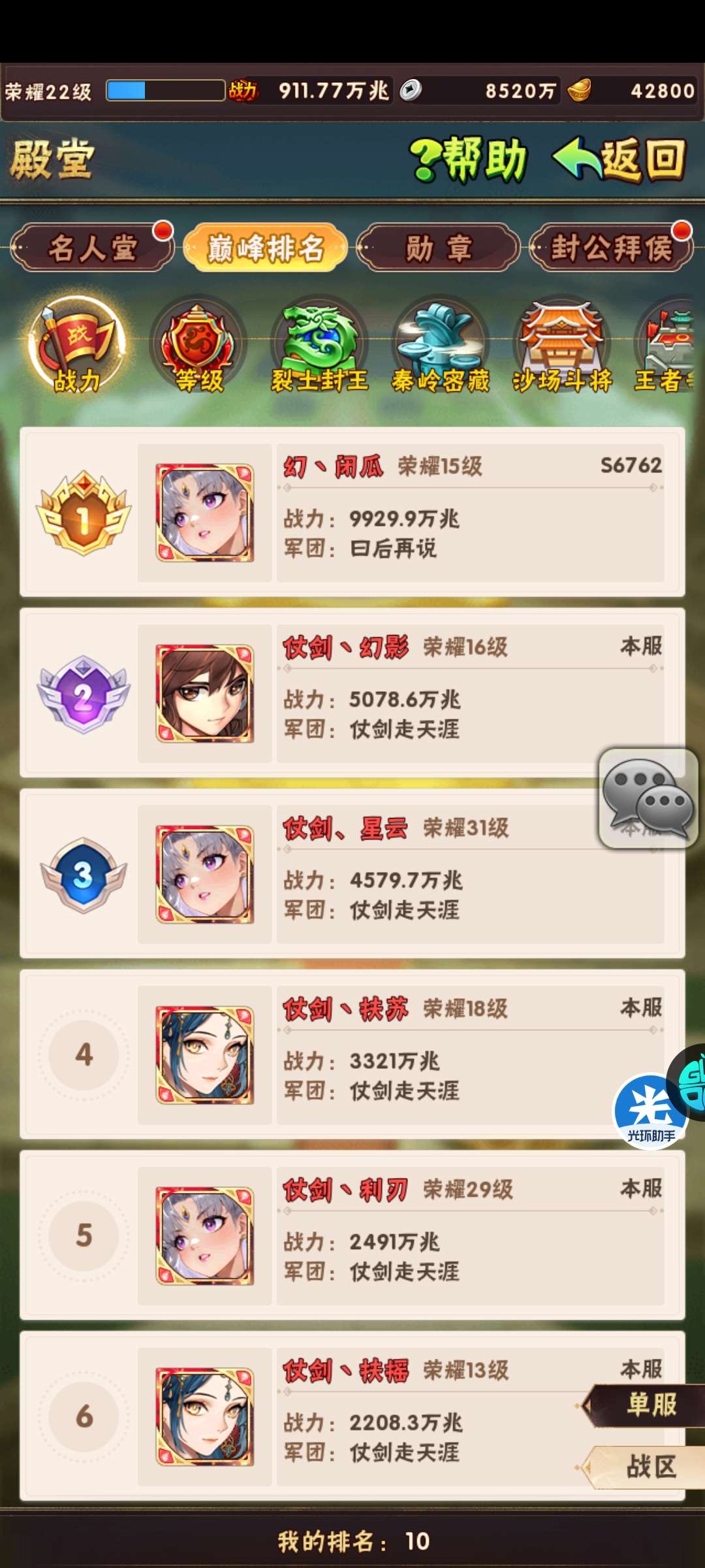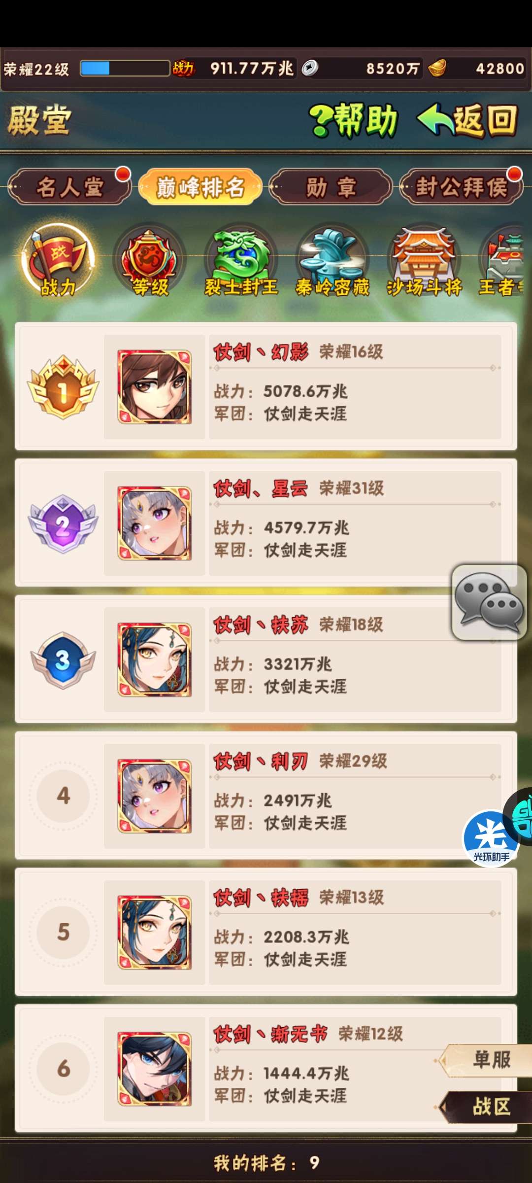 竞技场排名: