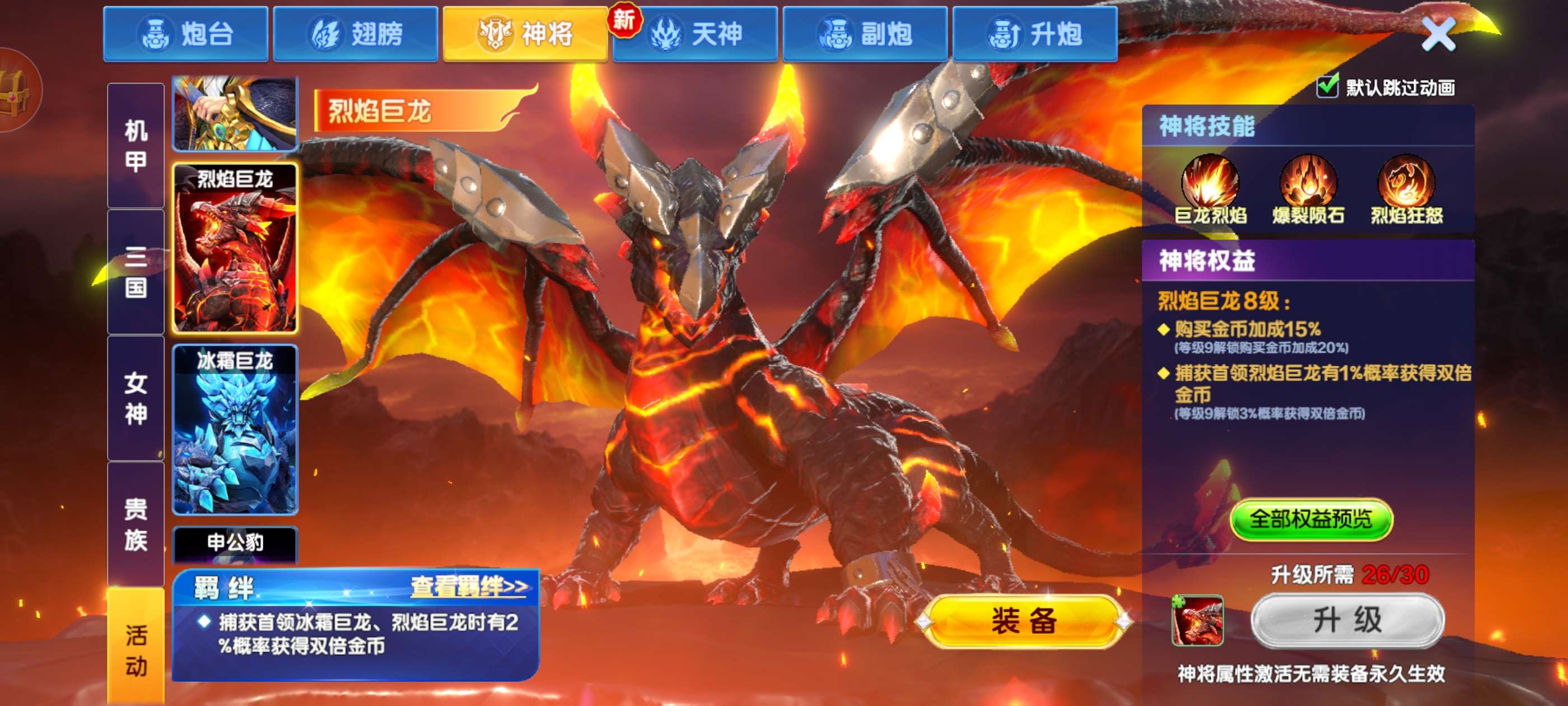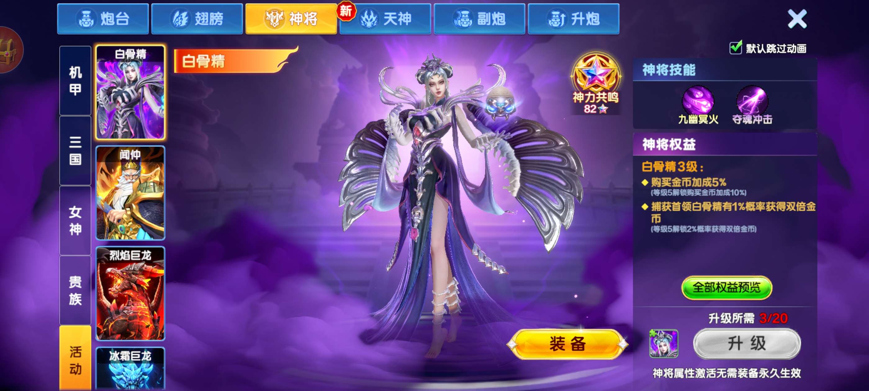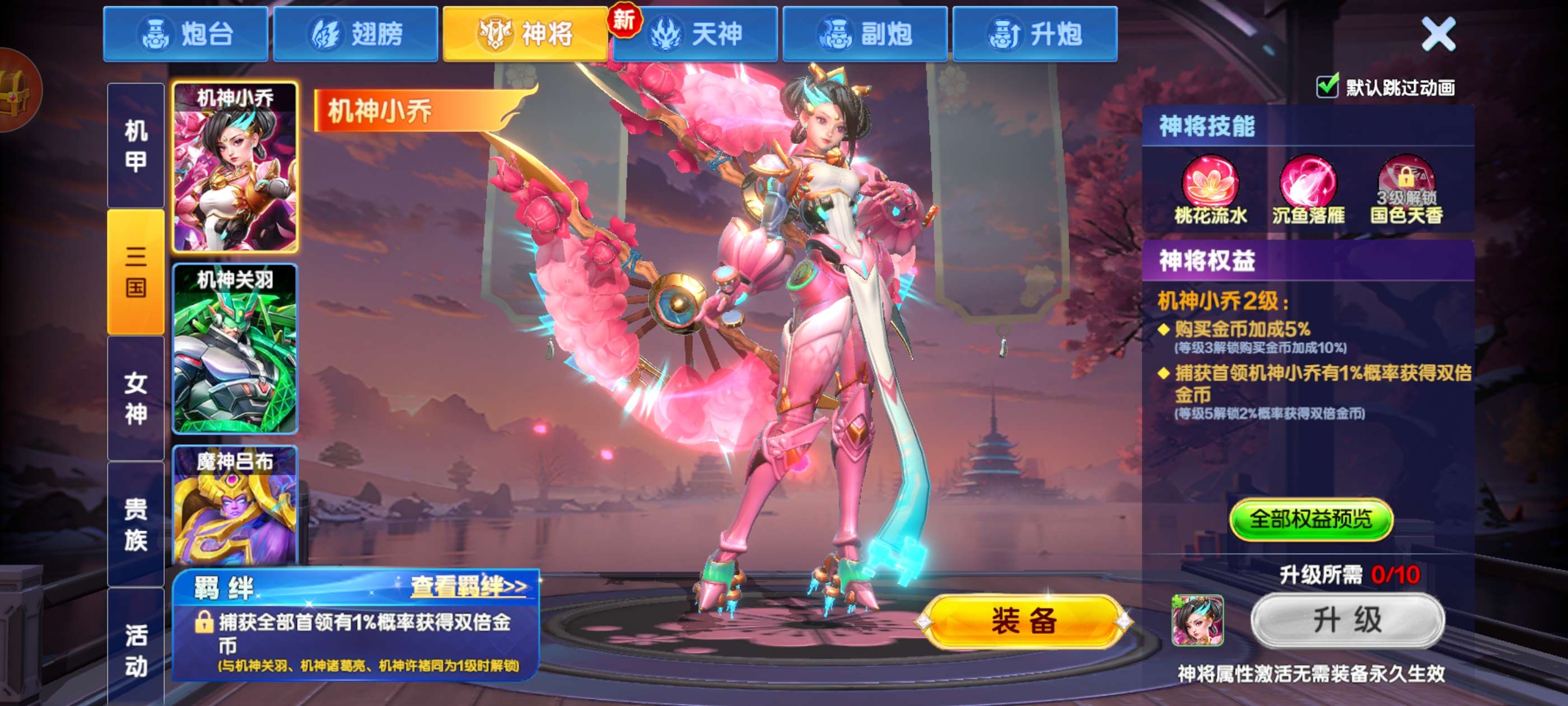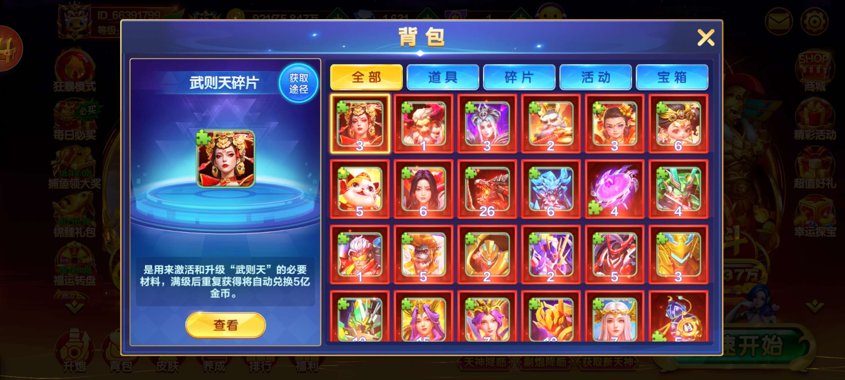 破产号v10三个天神,武则天,秦始皇,嫦娥,巅峰13级,加成高,多套羁绊翻倍,19个神将,带永久副婆