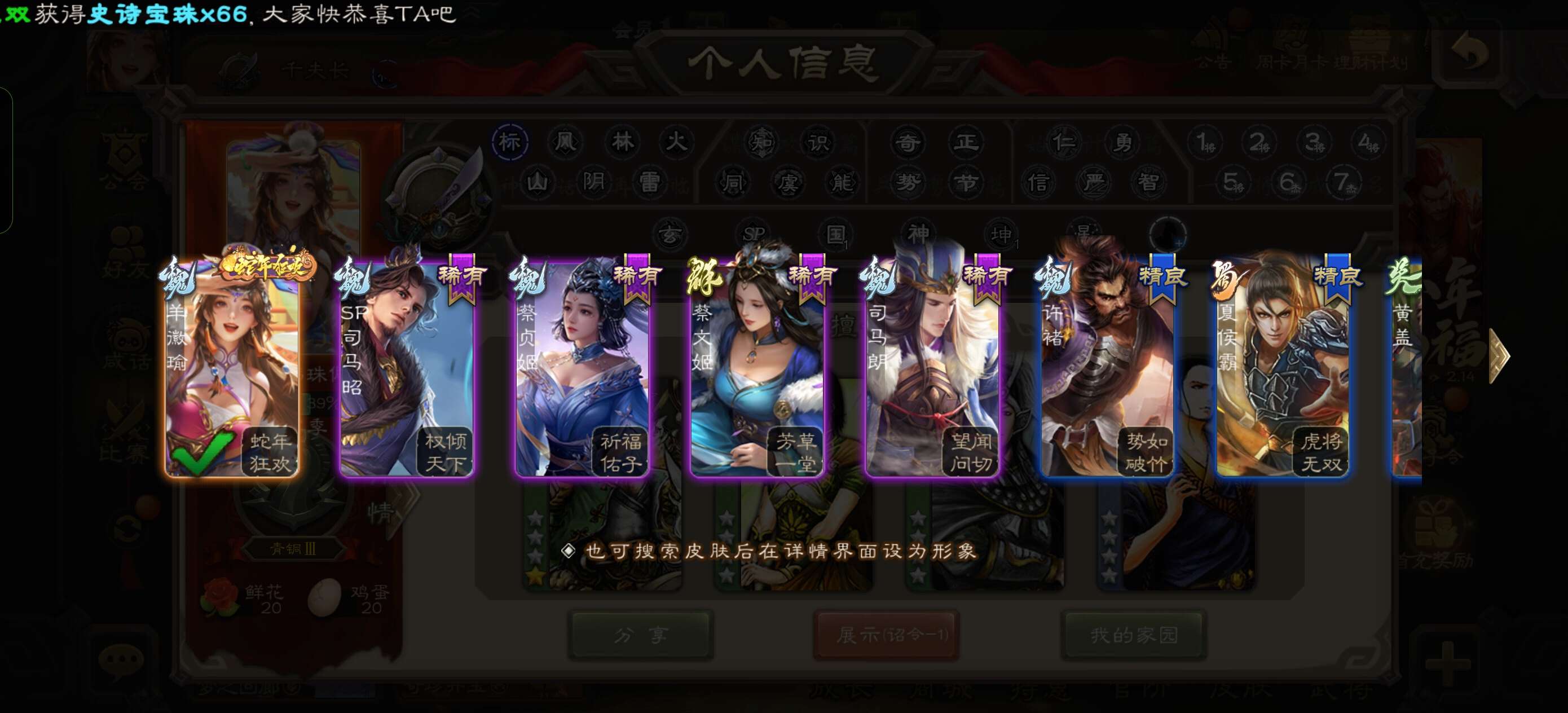 66宝珠,可兑换喜欢的史诗武将