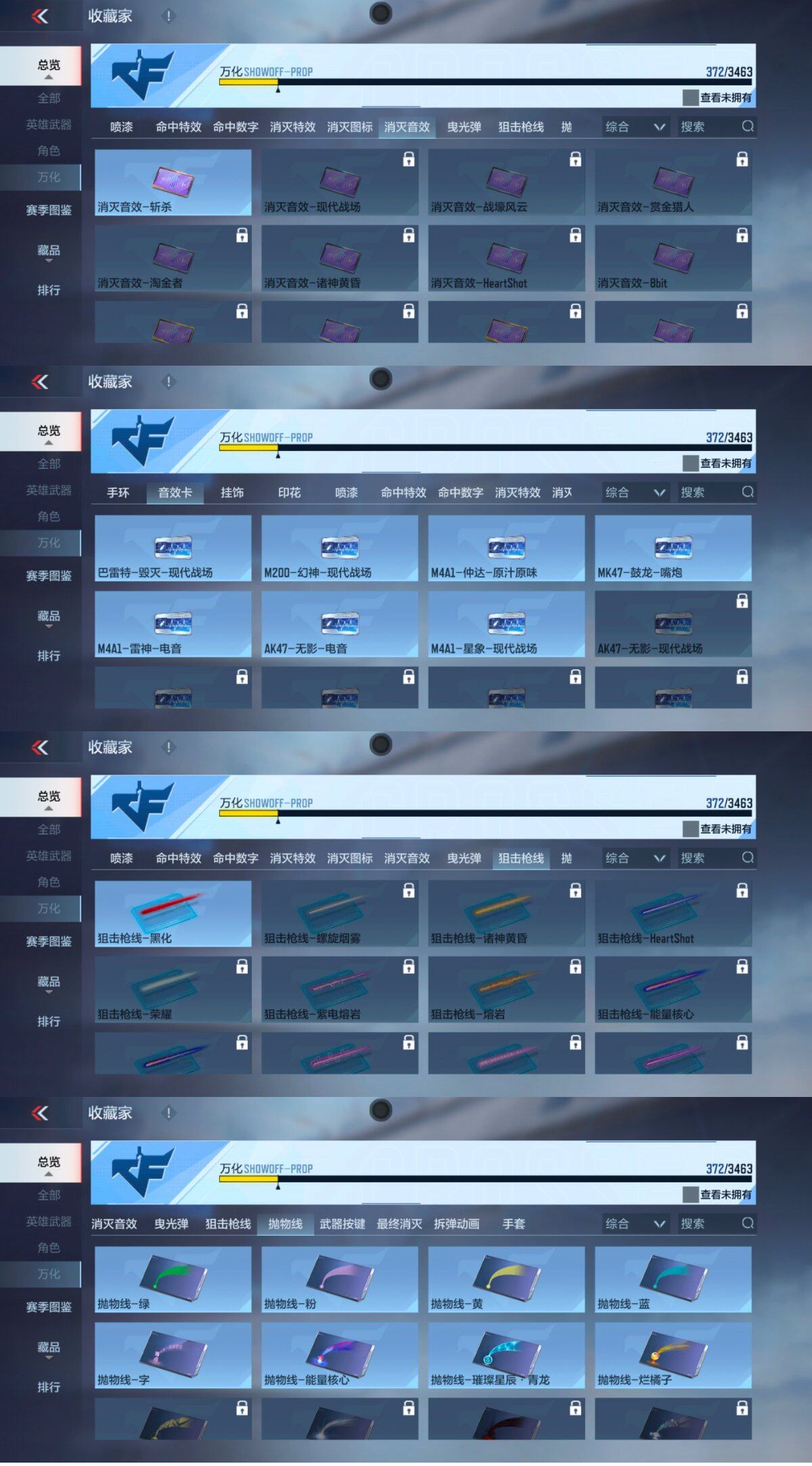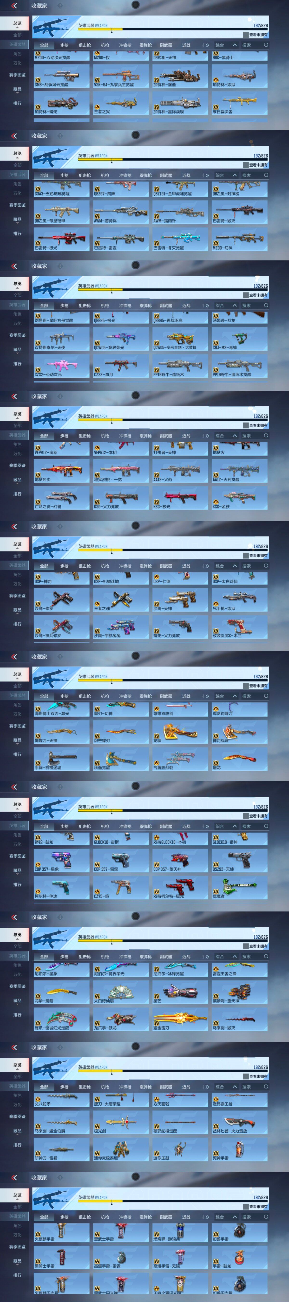 V7/9王者/242英雄/王者之影/王者之心/王者之狱/王者之魂/雷霆王者之锋/王翼闪光弹/王兽闪光烟雾/王势烟雾弹/AK奉先+无双/AK元让/47仁德套装/M4星象套装+四象皮/M4九尾狐/M4游骑兵+紫魇/M200权/AWM游骑兵/M200幻神/VEPR12本初/VEPR12宙斯/雷霆COP/堕天神COP/黑铁COP/3屠龙/炽芒蝶刃/方天画戟/角色/晴雅/消灭音效/斩杀/狙击枪线/黑化/