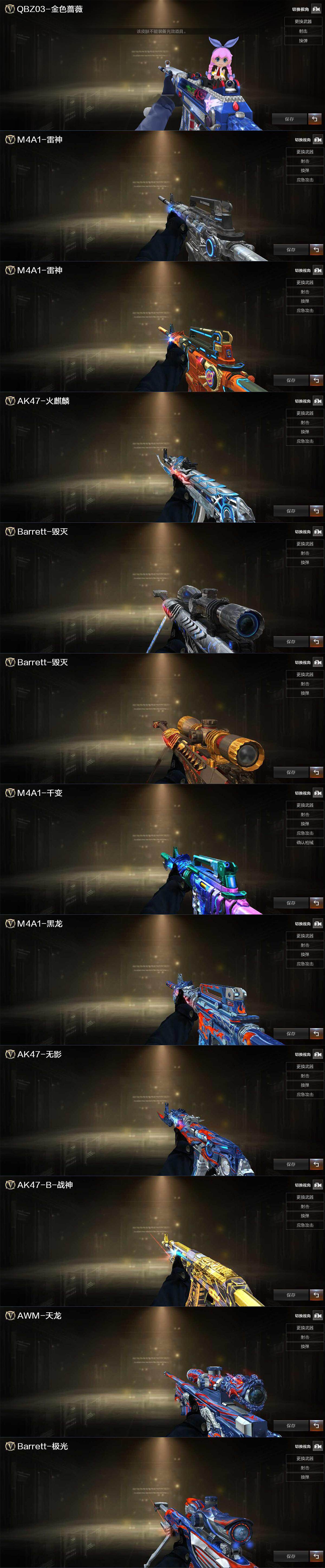 【音效卡】:AK47-火麒麟音效卡*2,M4A1-雷神音效卡,Barrett-毁灭音效卡
