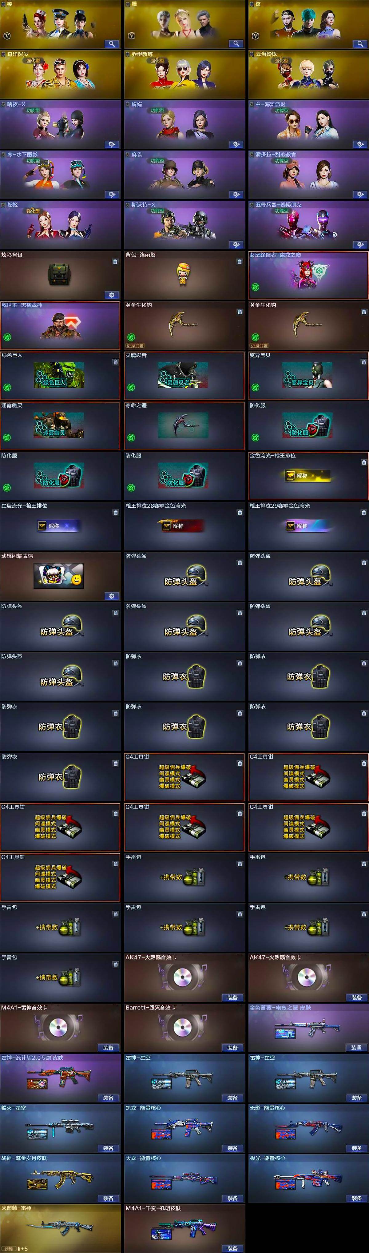 【皮肤】:金色蔷薇-电竞之星 皮肤,雷神-星空*2,雷神-源计划2.0专属 皮肤,火麒麟-雷神,毁灭-星空,毁灭-英雄计划 皮肤,M4A1-千变-孔明皮肤,黑龙-能量核心,无影-能量核心,战神-流金岁月皮肤