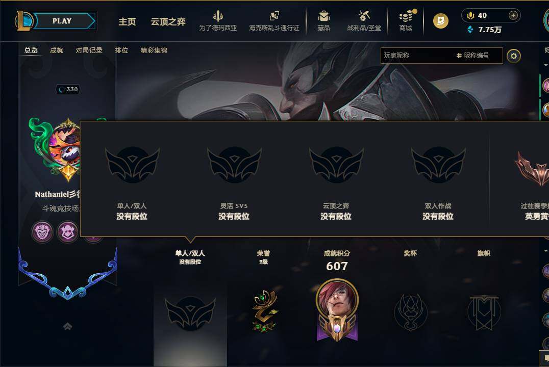 单双排段位选择: