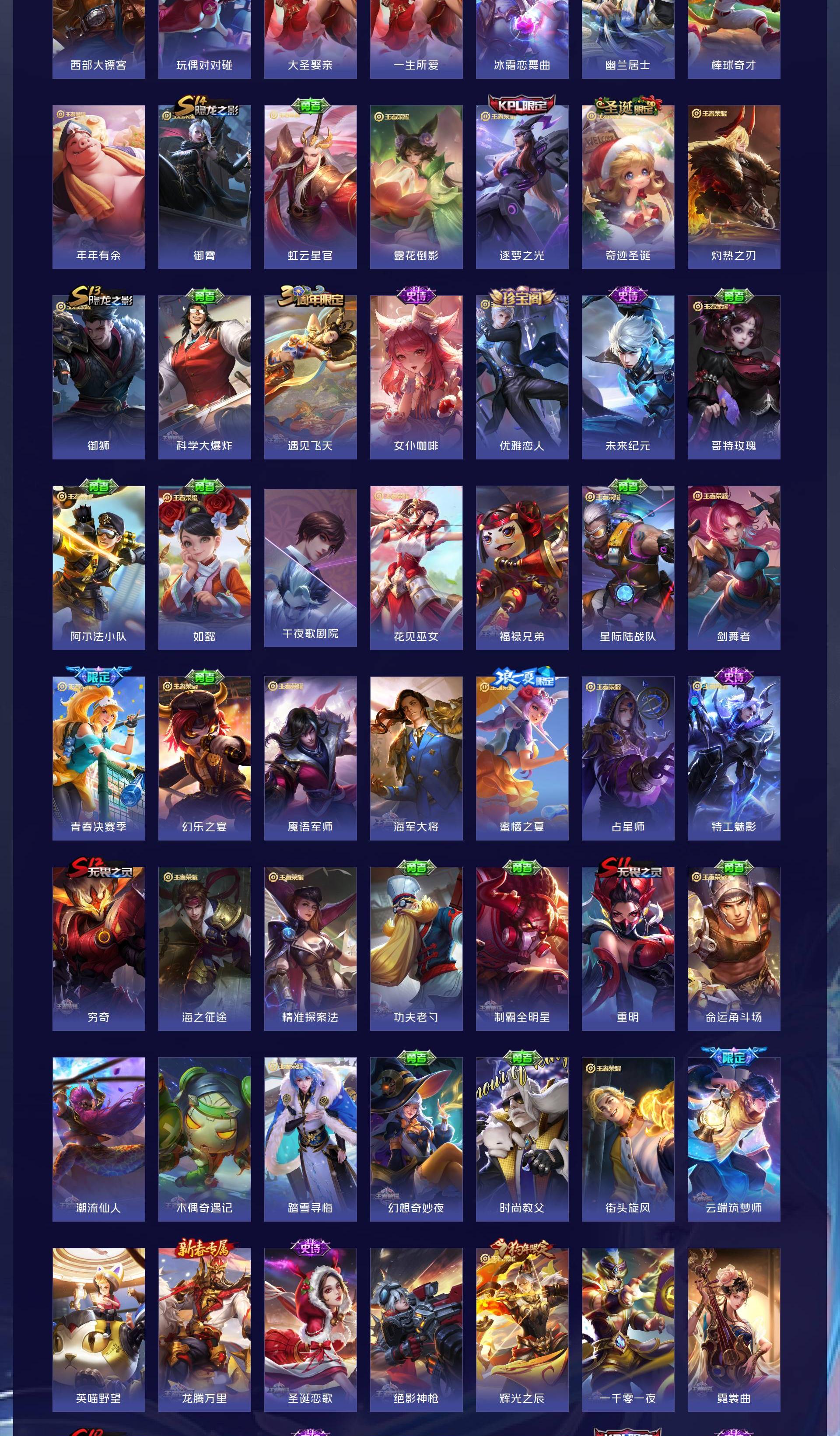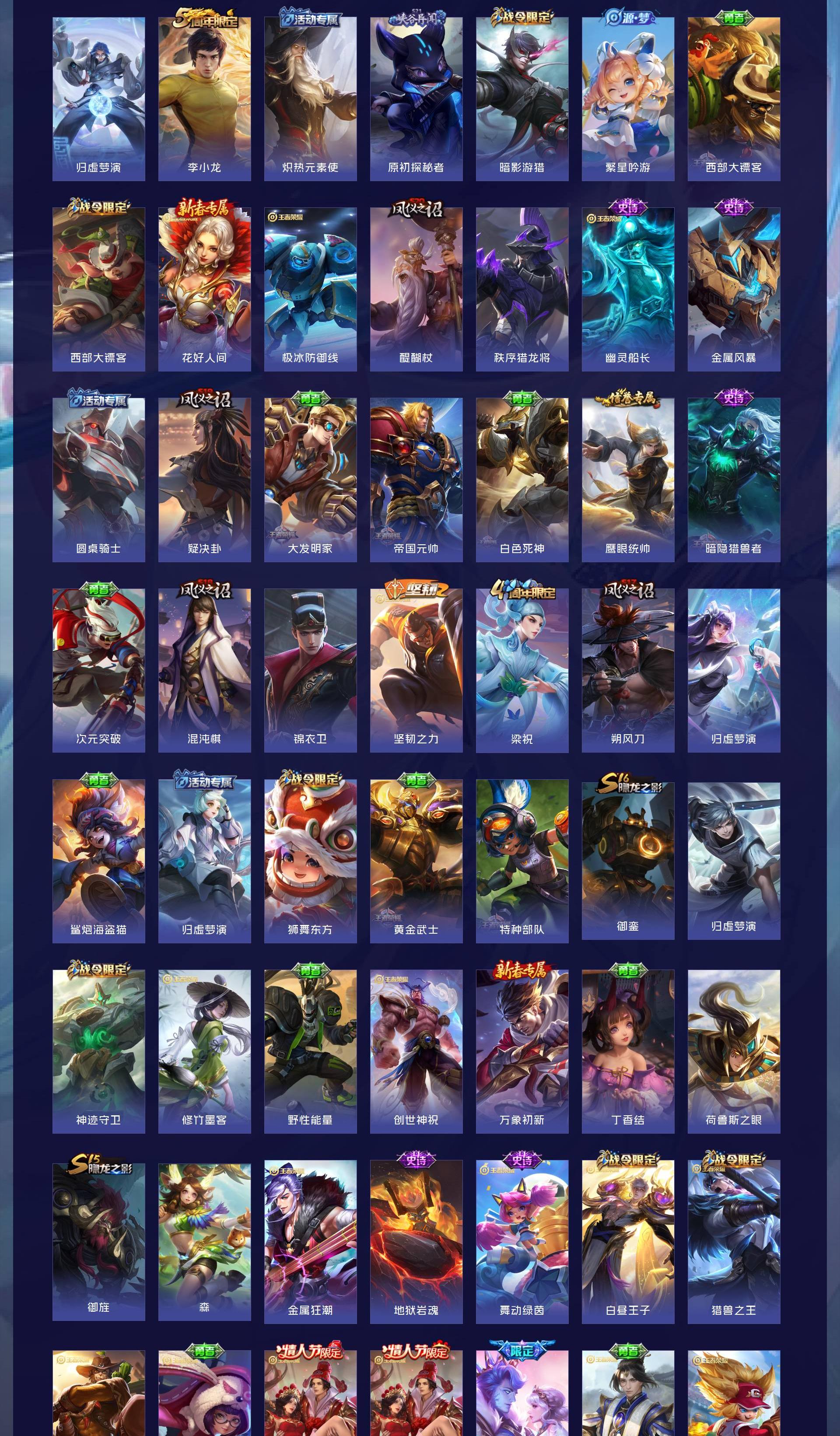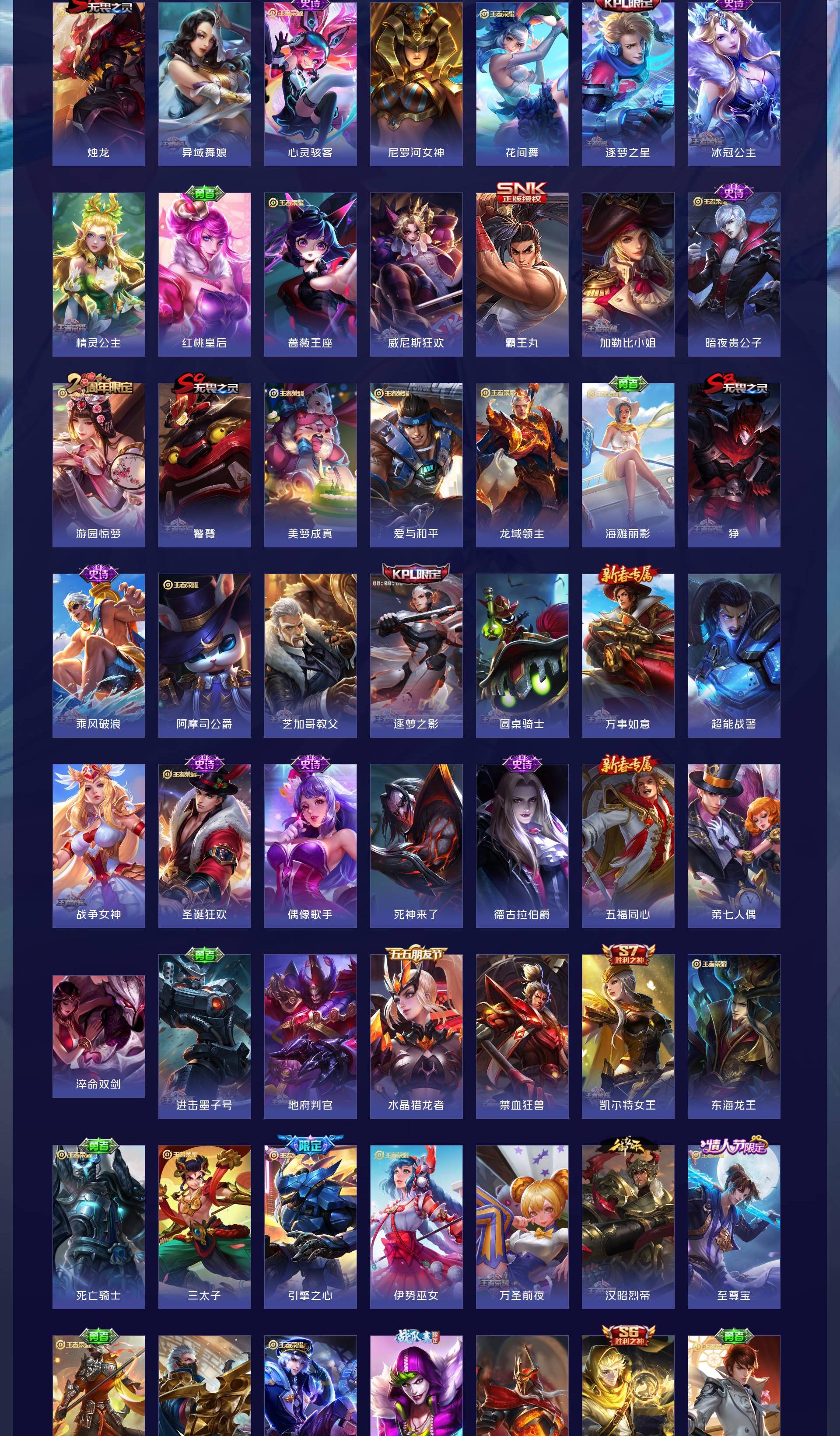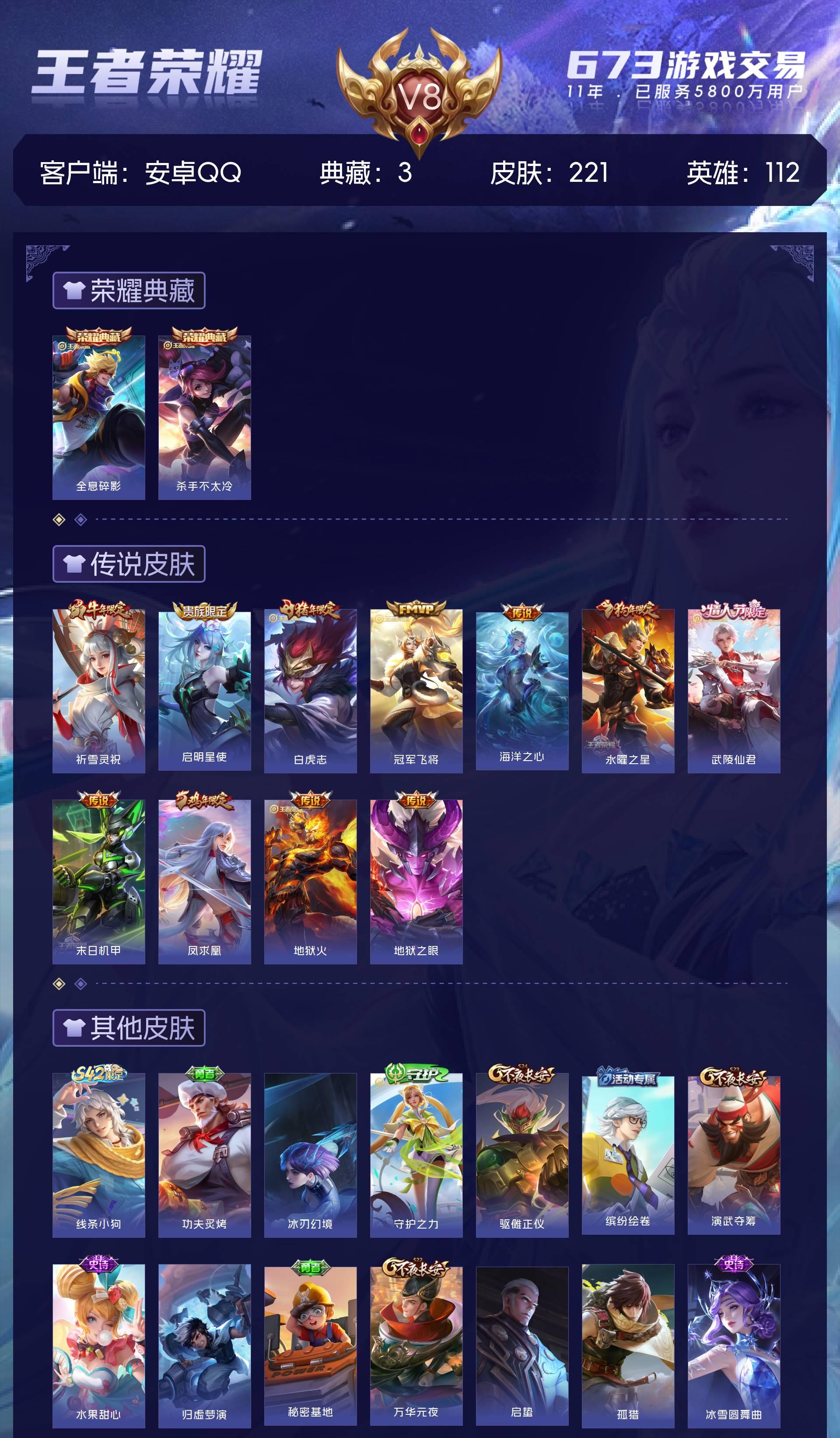 V8 皮肤221 英雄112 尊贵铂金 荣耀典藏3 传说11 其他皮肤213