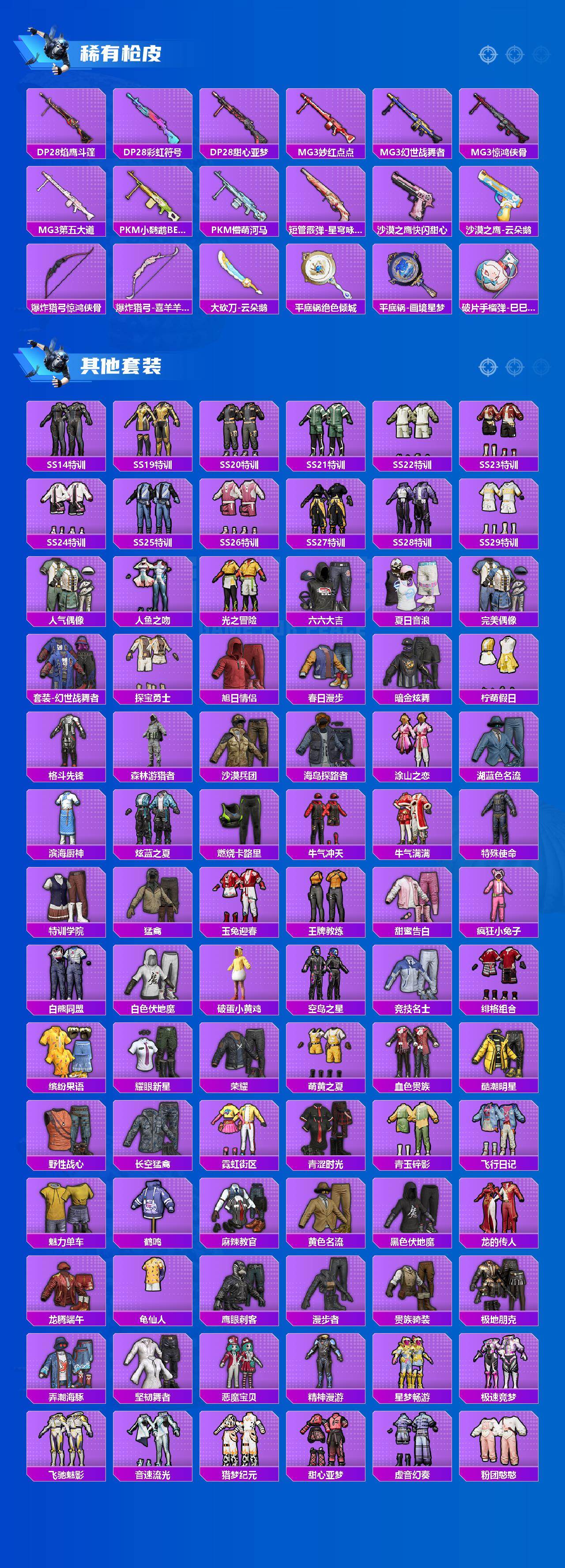 【粉色套装】:粉装-炙焰红王,粉装-暗夜鎏金,角色-阿尔茜,粉装-炫光之旅,角色-千金淑猫,粉装-星穹咏叹调