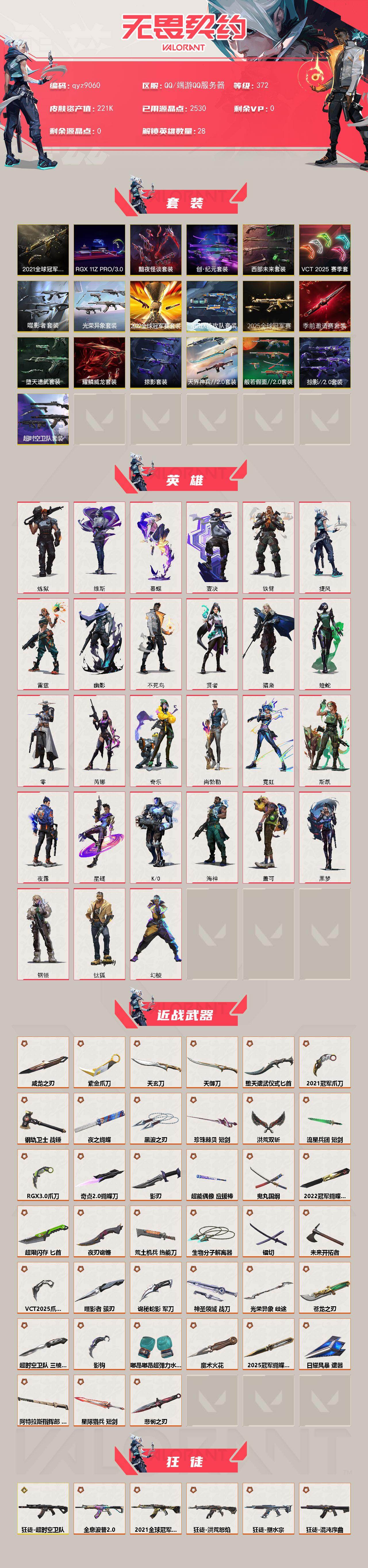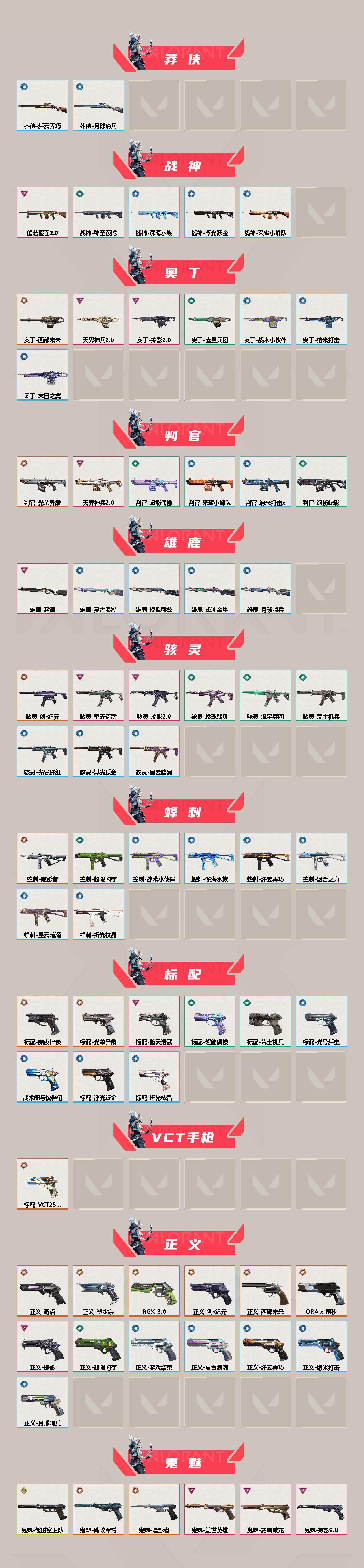 【近战武器】:近战武器-2025全球冠军赛 蝴蝶刀,近战武器-2022全球冠军赛 蝴蝶刀,近战武器-2021全球冠军赛 爪刀,近战武器-无畏契约季前邀请赛 悲悯之刃,近战武器-魔术火花,近战武器-嘟昂嘟昂超弹力水球拳套,近战武器-影钩,近战武器-超时空卫队 三棱军刺,近战武器-5周年//公测重制版 苍龙之刃,近战武器-光荣异象 歧途,近战武器-奇点//2.0 蝴蝶刀,近战武器-VCT 2025 爪刀,近战武器-紫金爪刀,近战武器-R