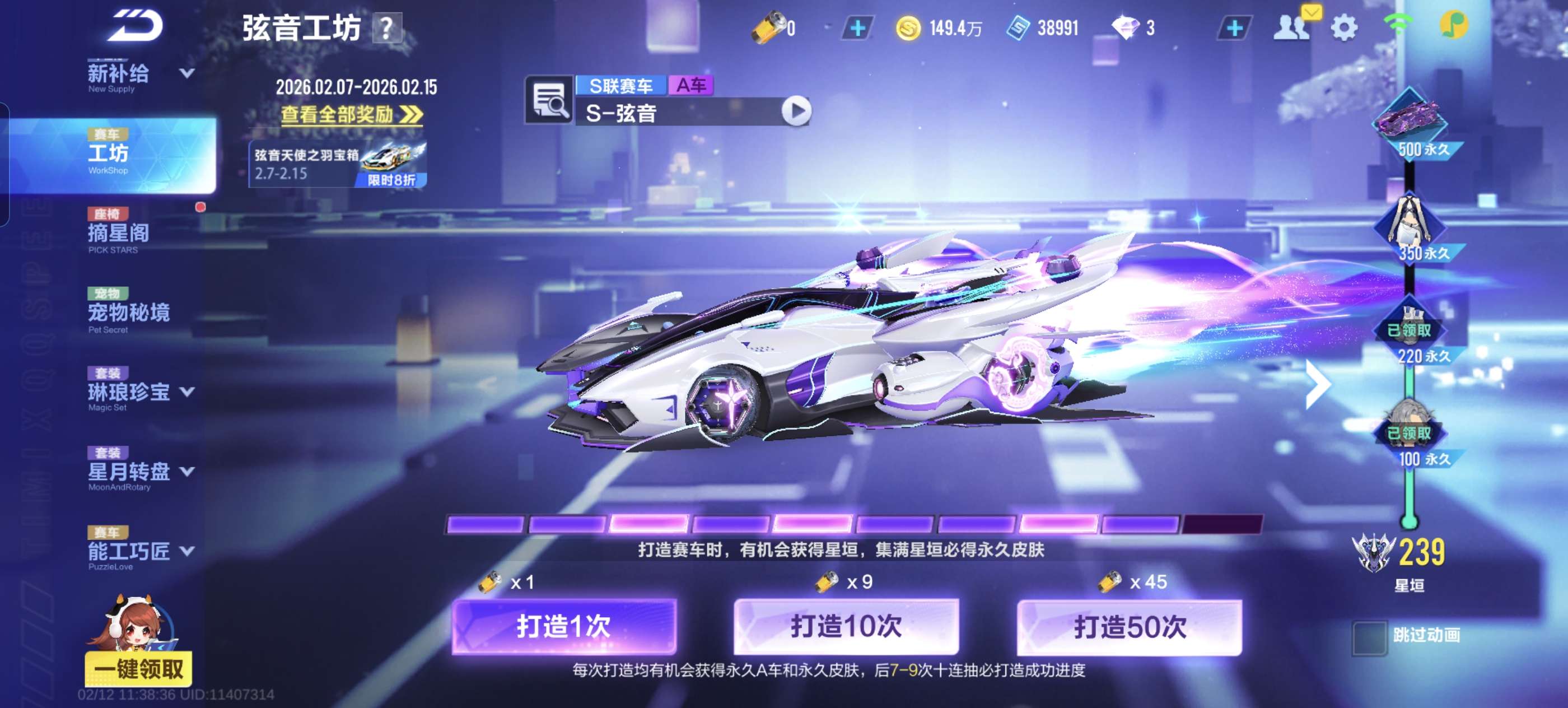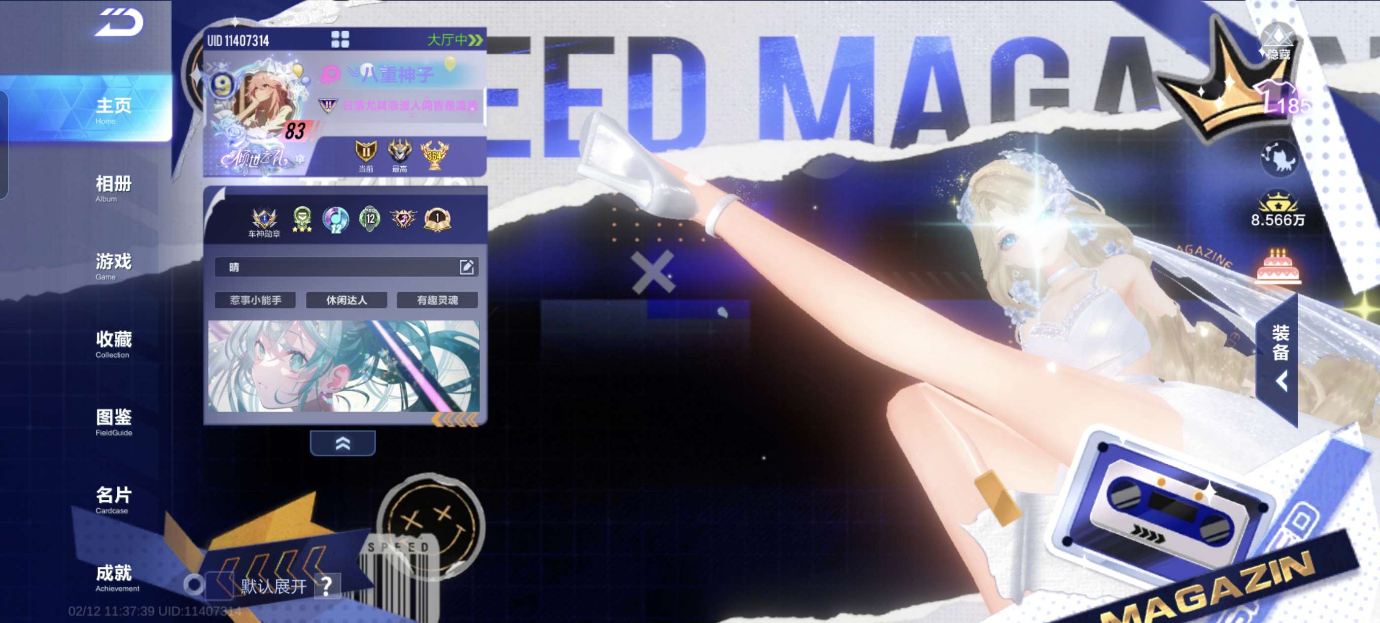 V9号便宜出,有全套转盘+变色名,月影很多皮肤,弦音还差一格,宠物有女王,可以小砍