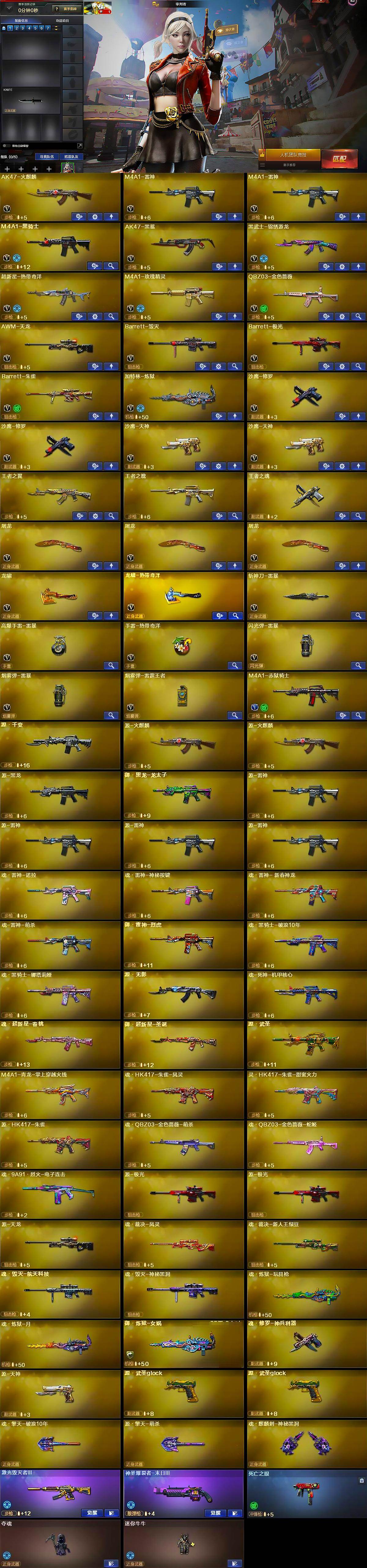 【热门武器】:QBZ03-金色蔷薇,死亡之眼,M4A1-黑骑士,加特林-炼狱,沙鹰-修罗*2