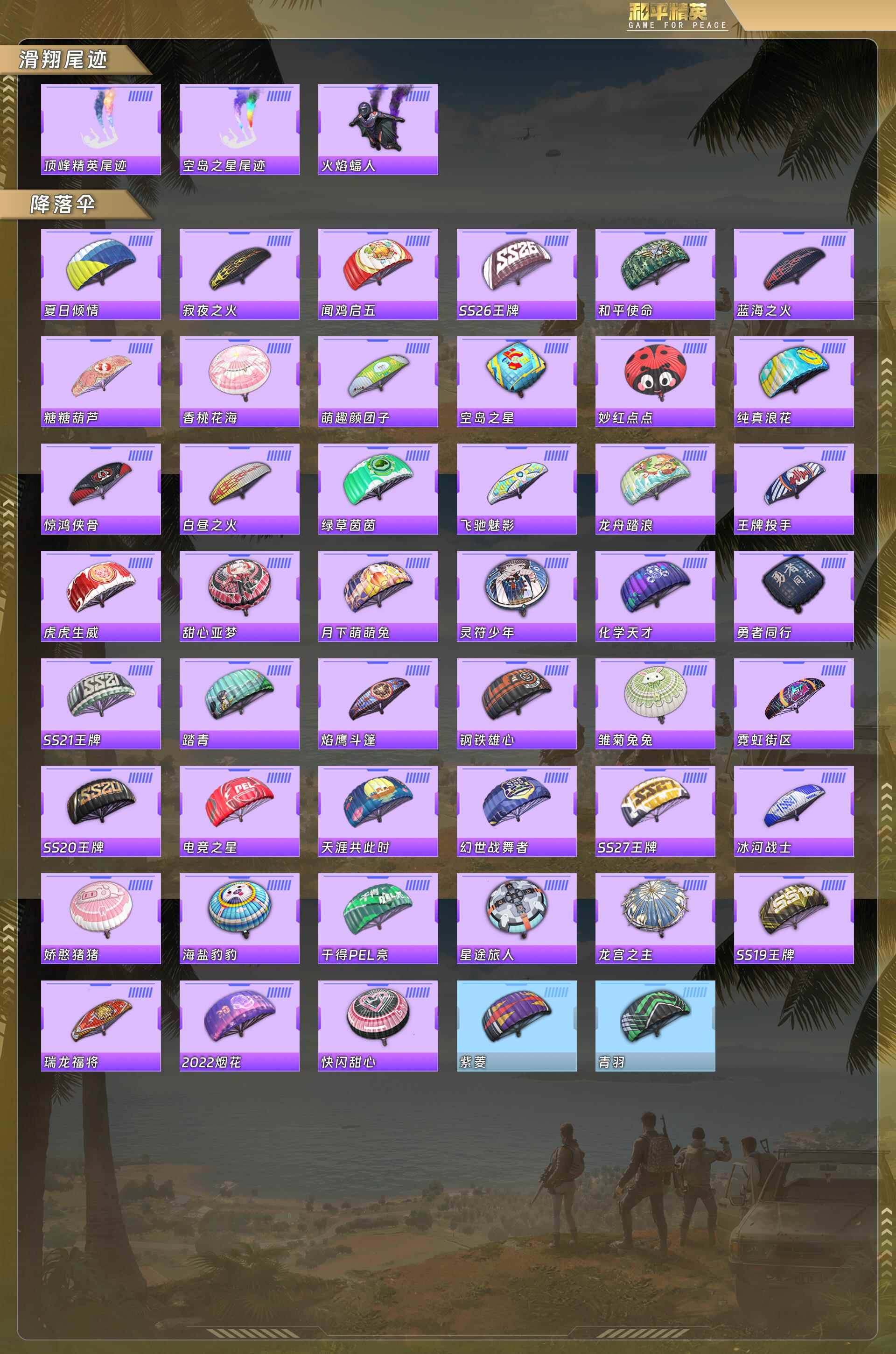 【粉色降落伞】:心之恋语降落伞,蓝莓炮弹降落伞,炙焰牛王降落伞,环太平洋降落伞
